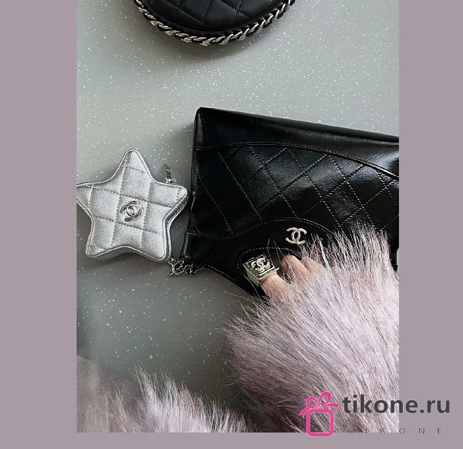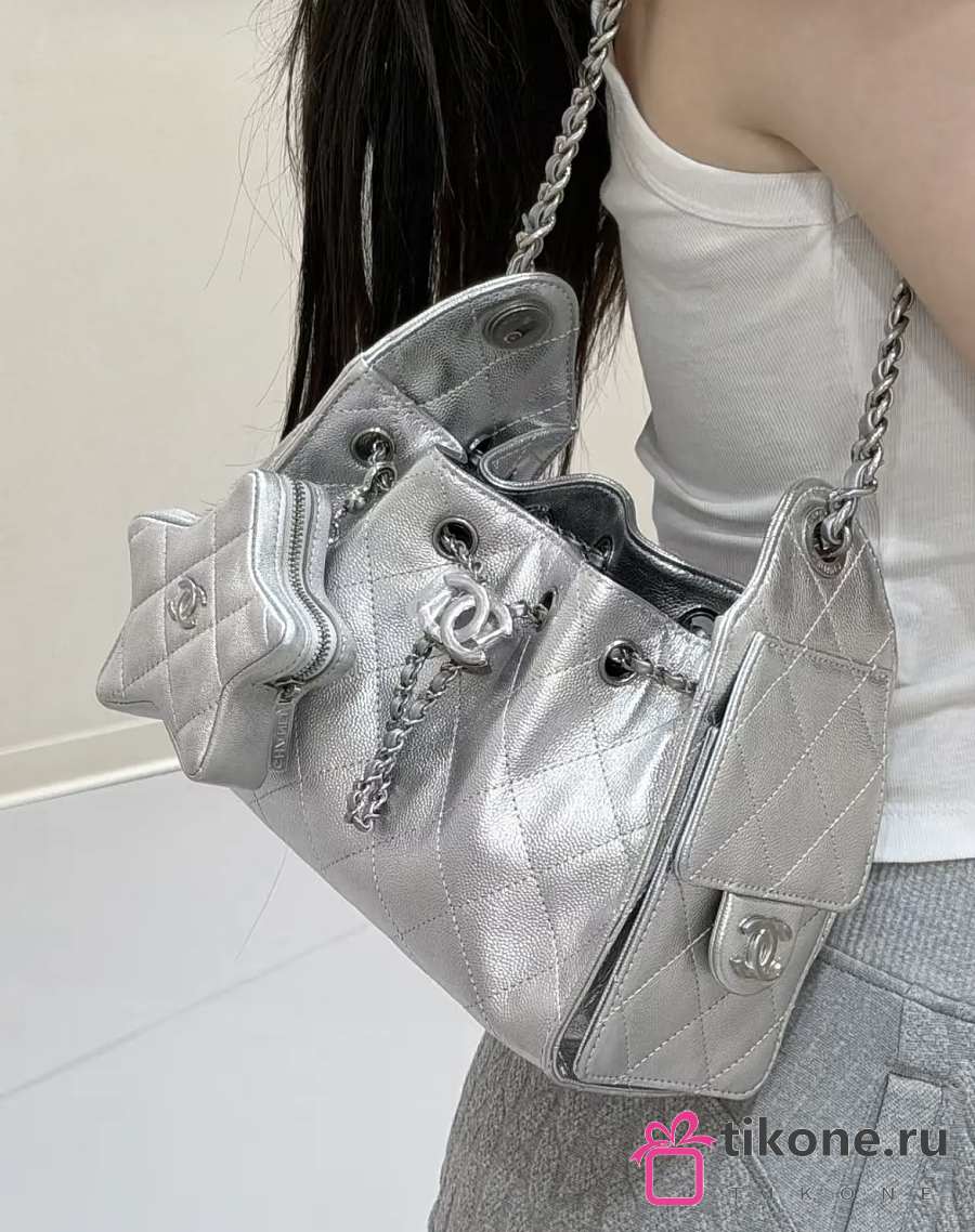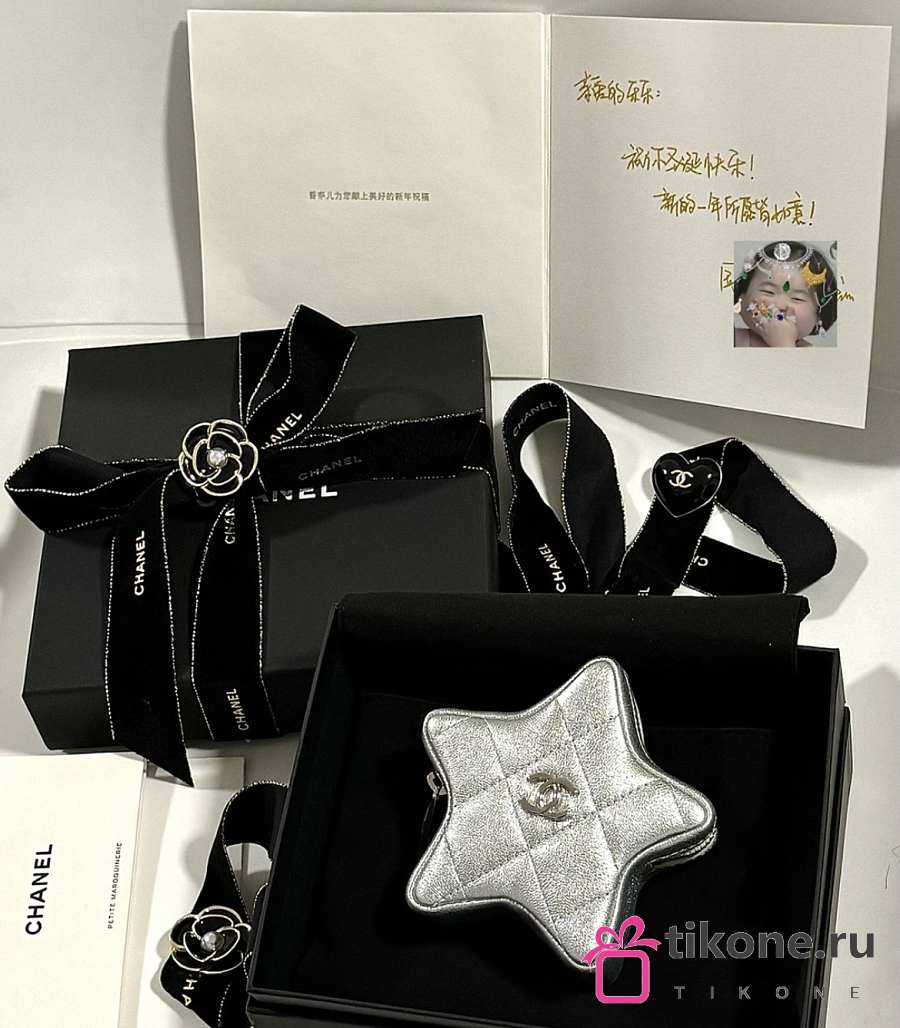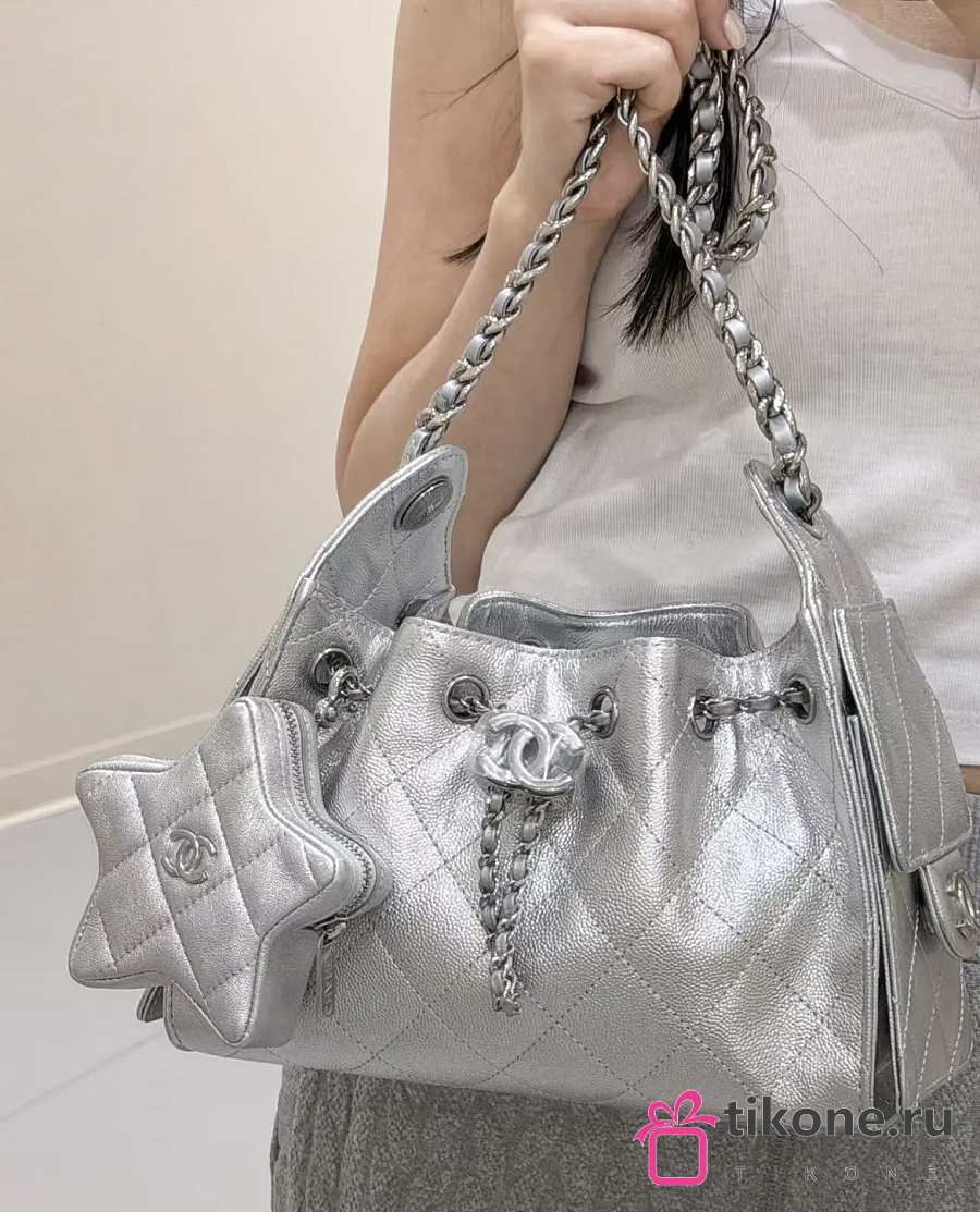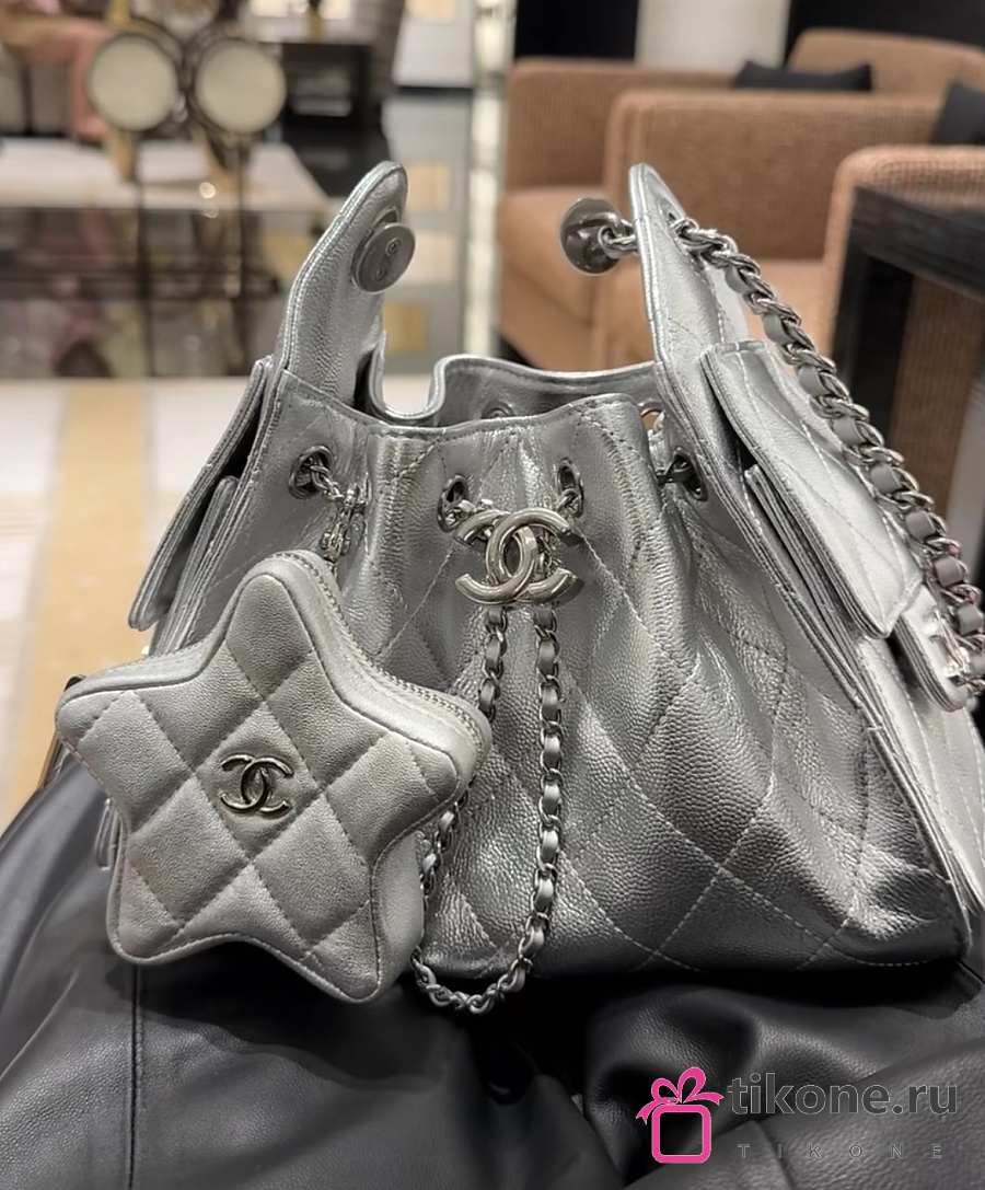 Chanel Star Coin Purse Metallic Lambskin & Silver Tone Metal Silver