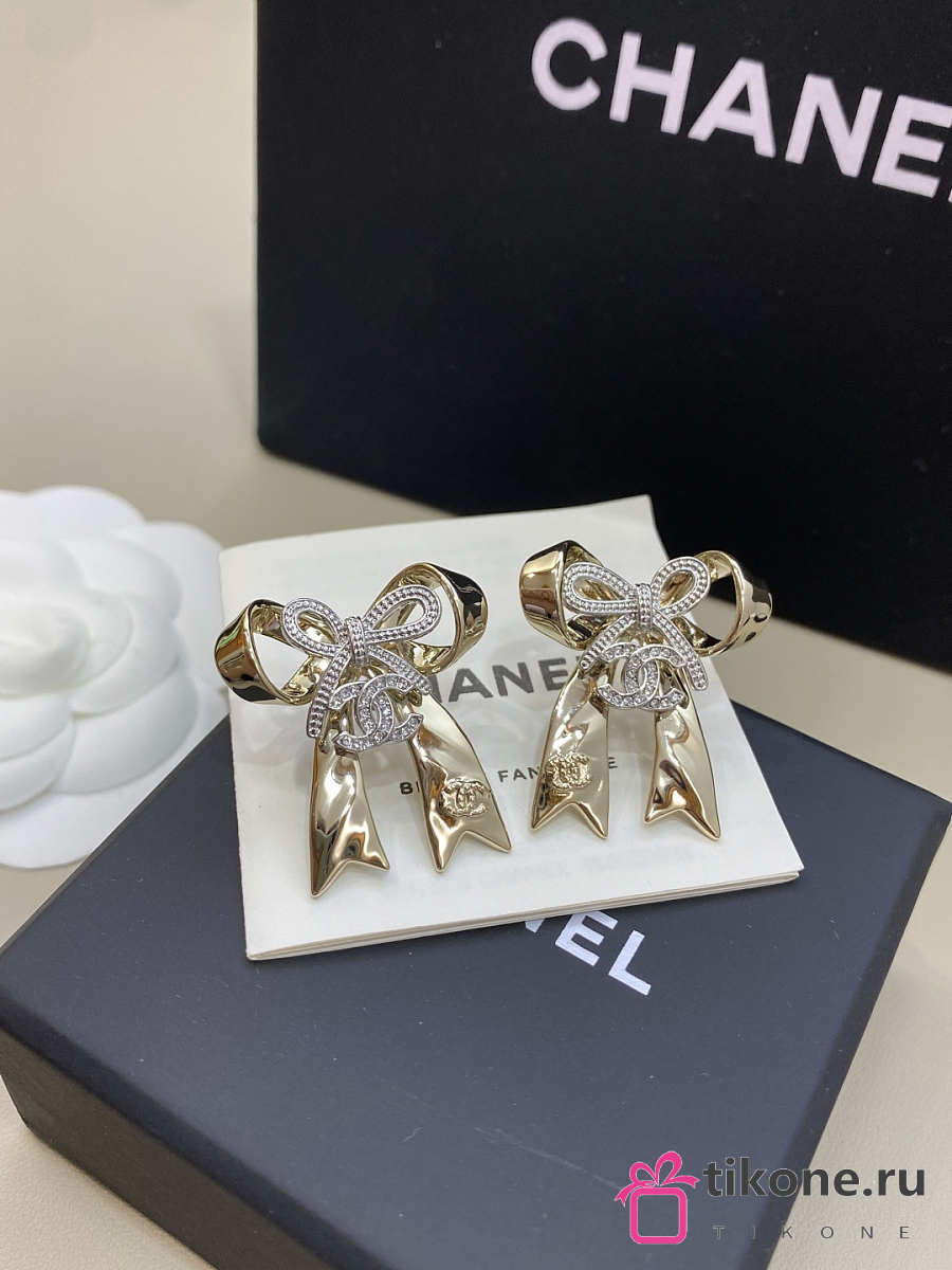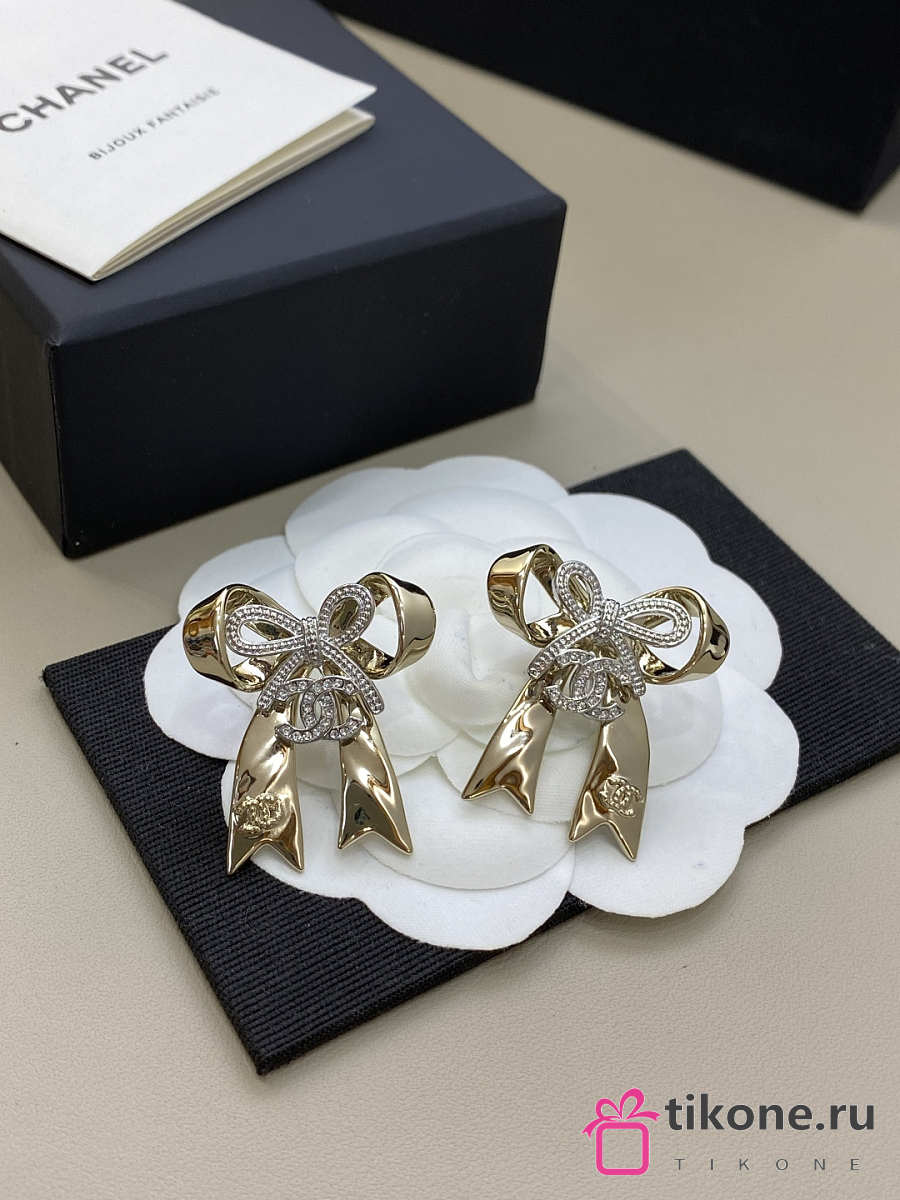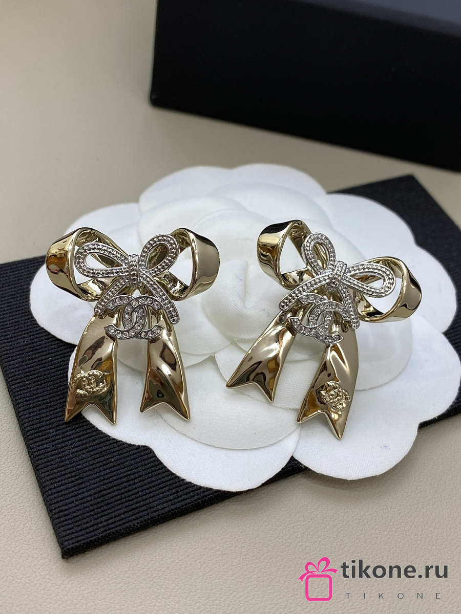 Chanel Stud Earrings Metal & Strass Silver Gold & Crystal
