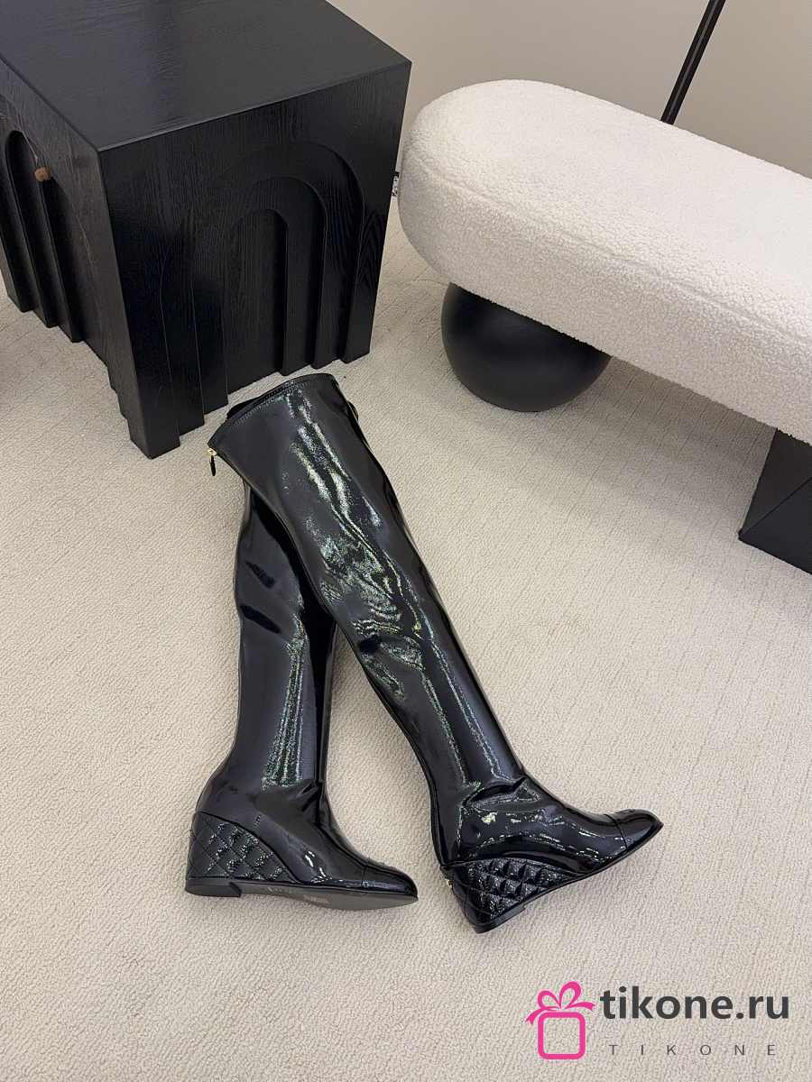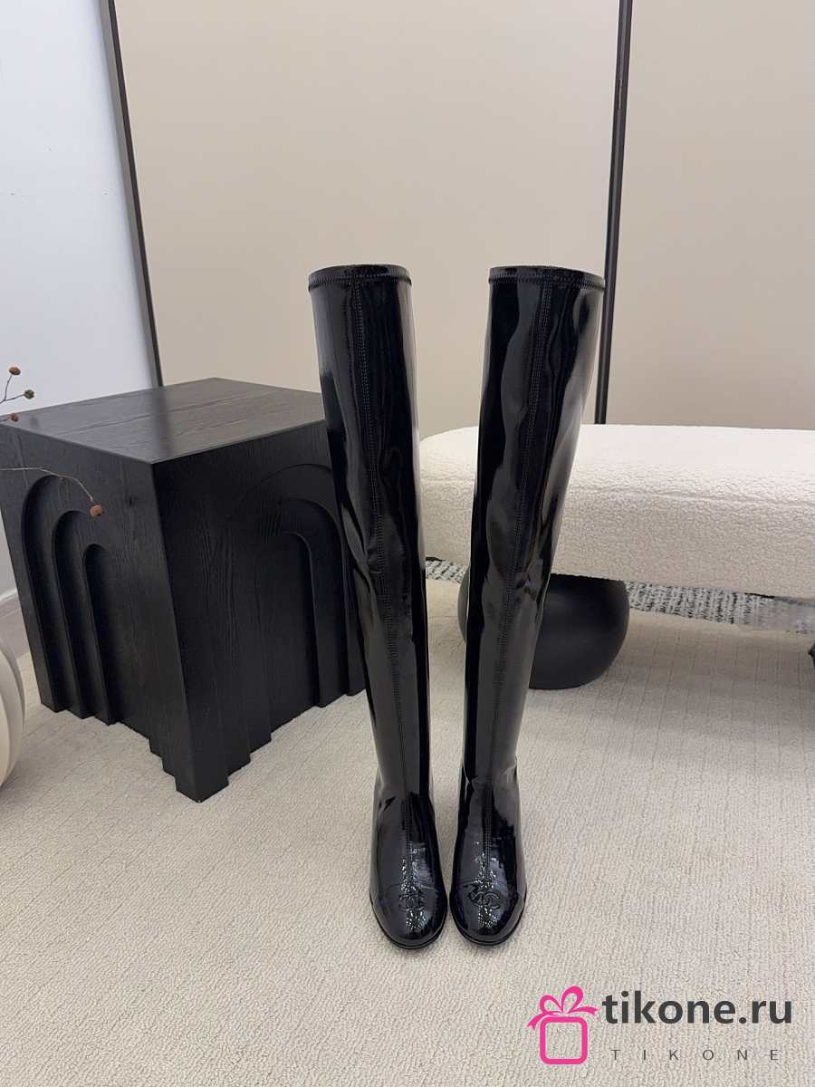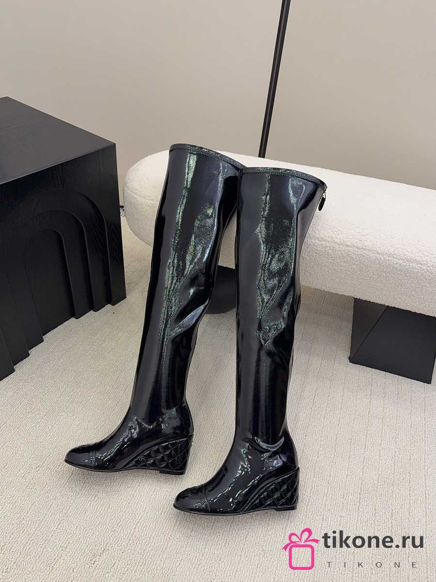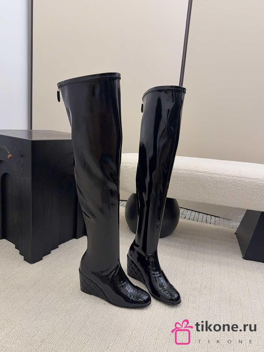 Chanel Thigh Boots Suede & Calfskin Brown Black 6.5cm