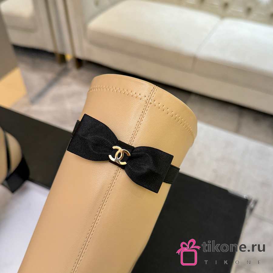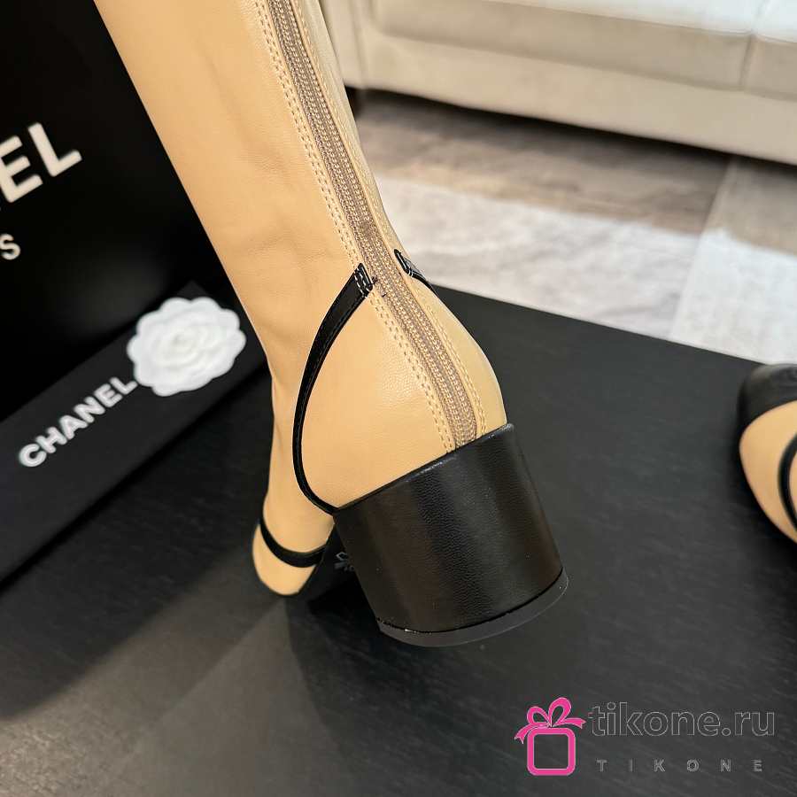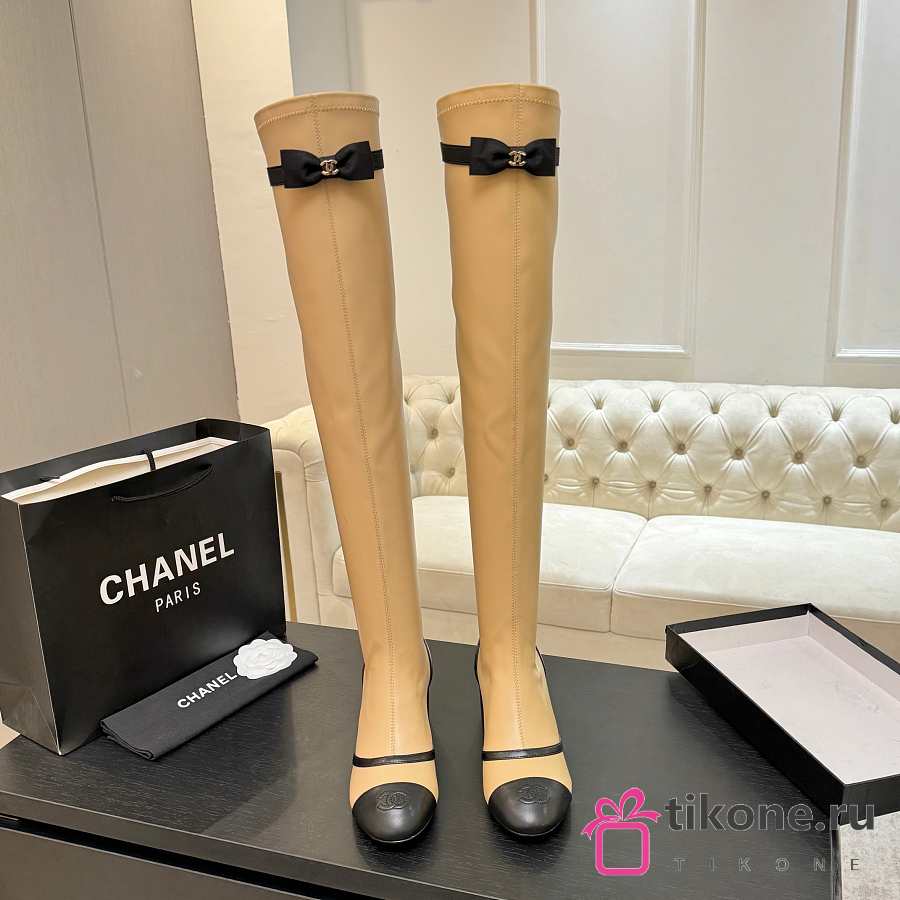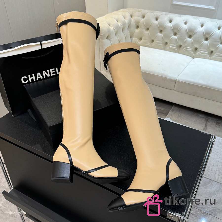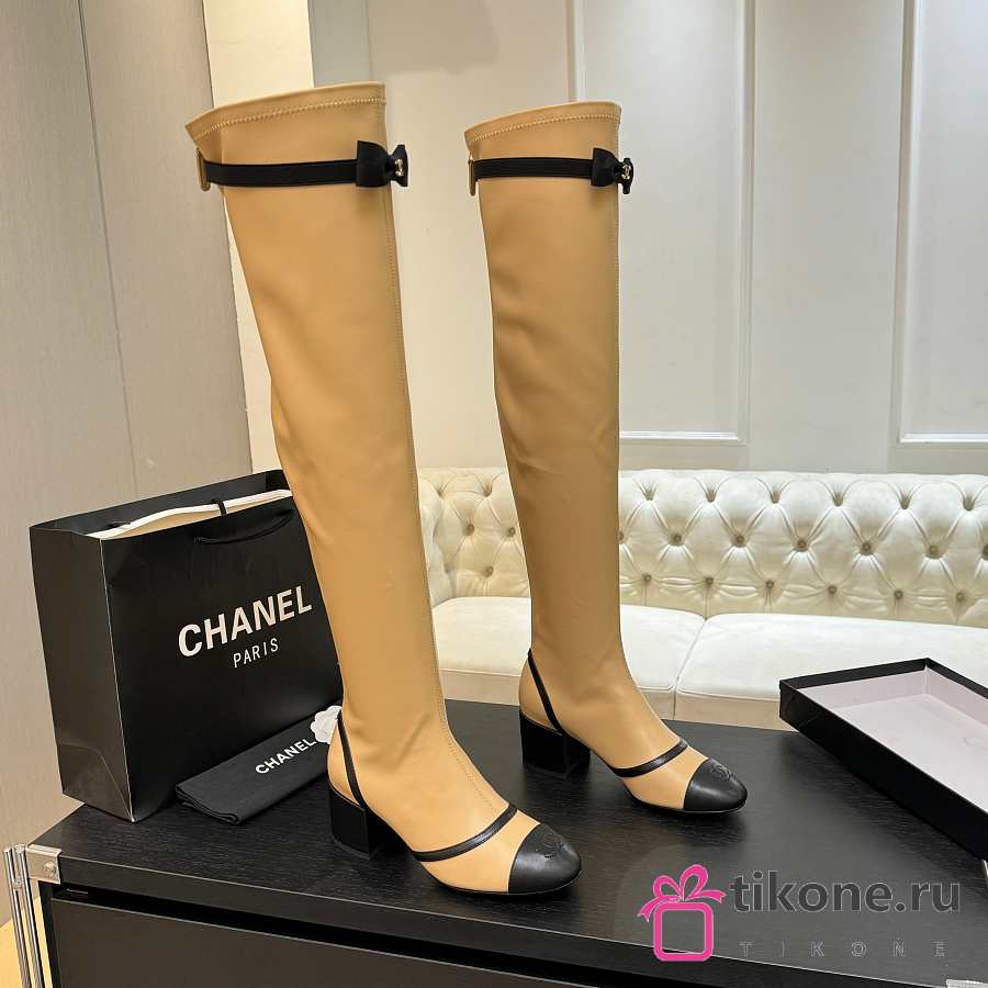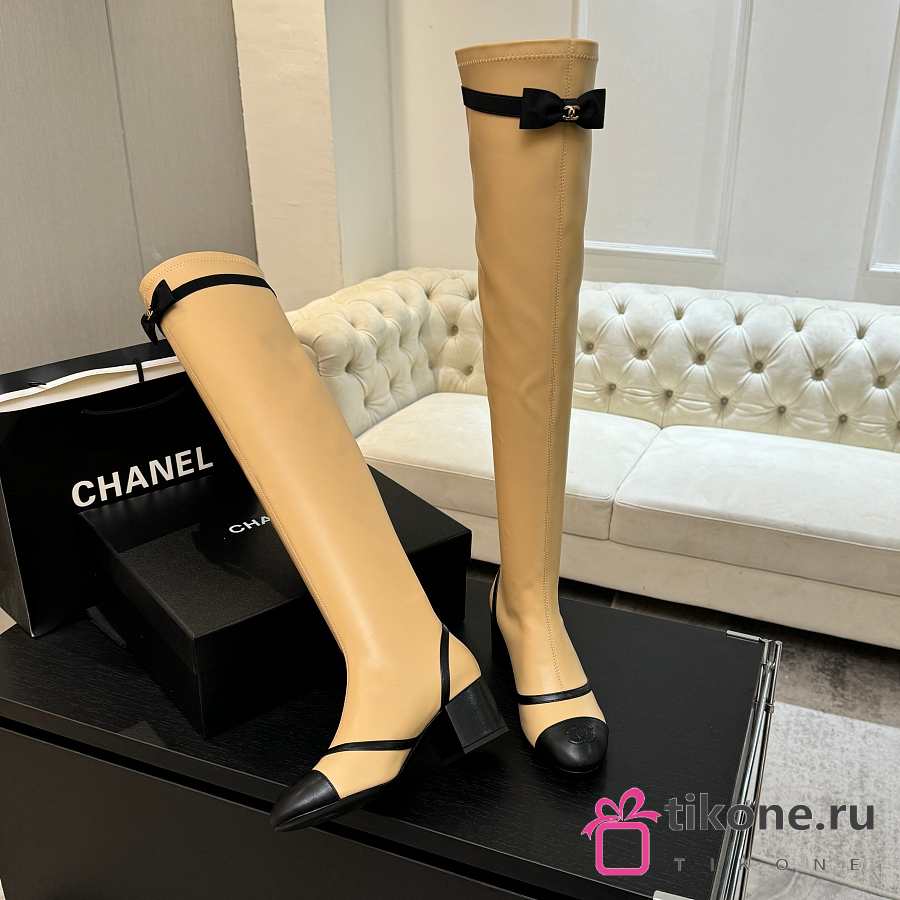Chanel Thigh Boots Stretch Lambskin & Lambskin Beige Black 5cm