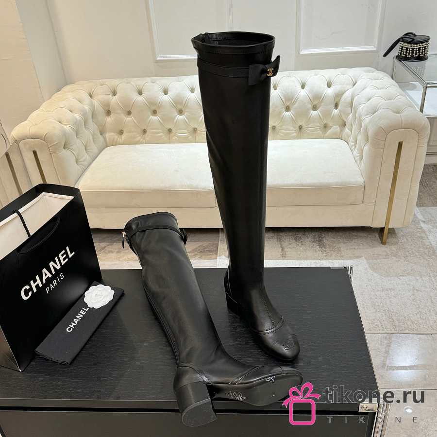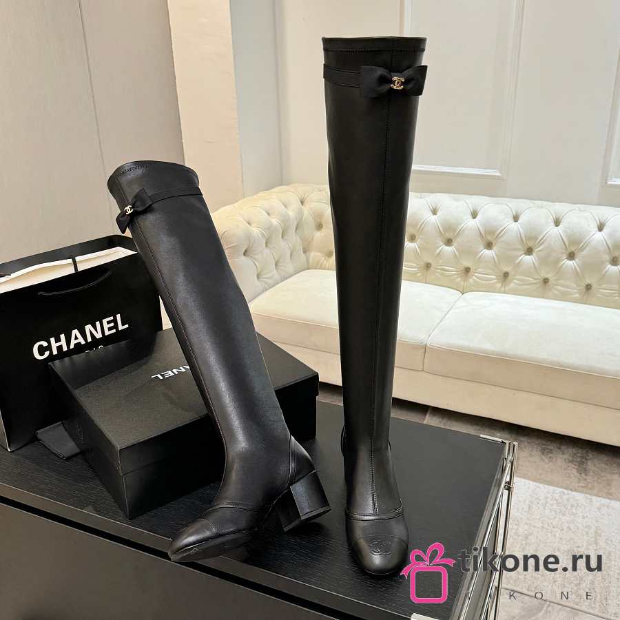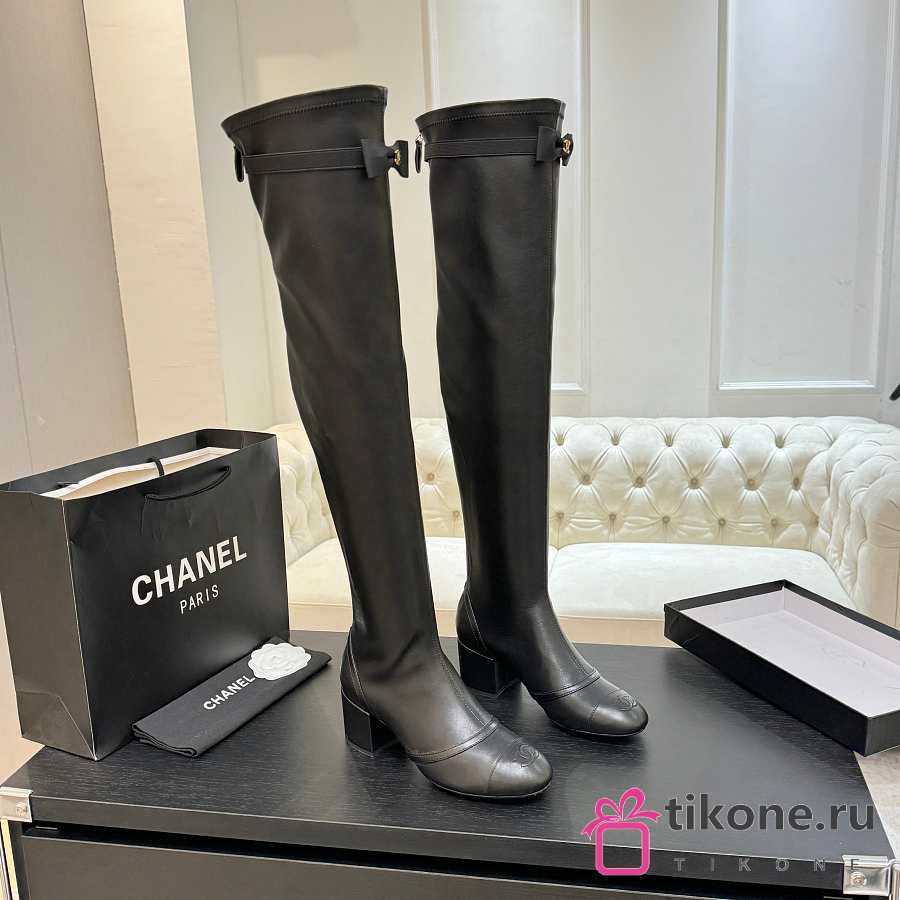 Chanel Thigh Boots Stretch Lambskin & Lambskin Black 5cm