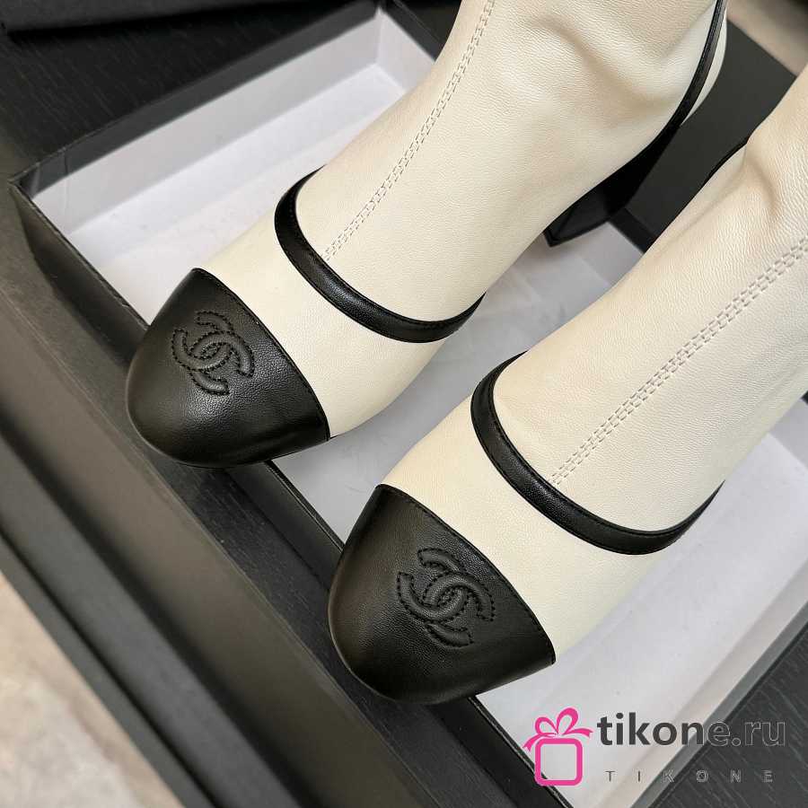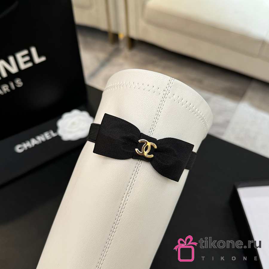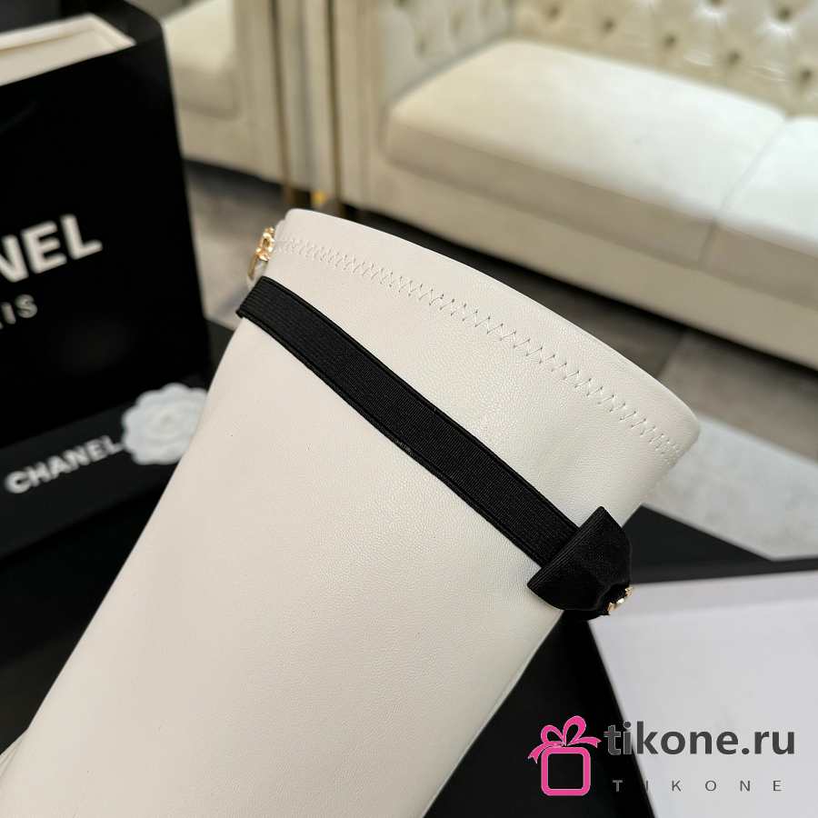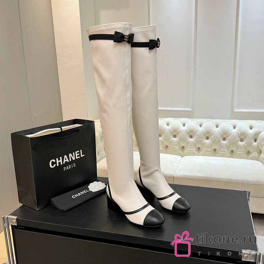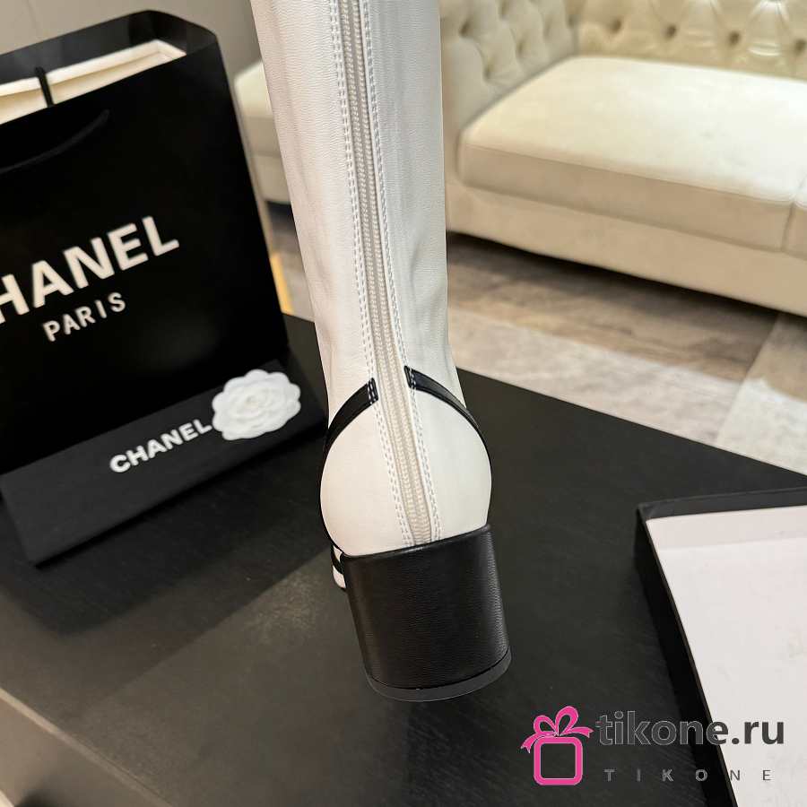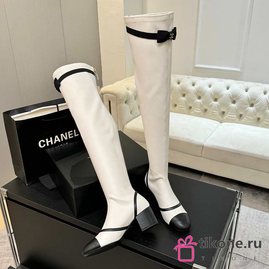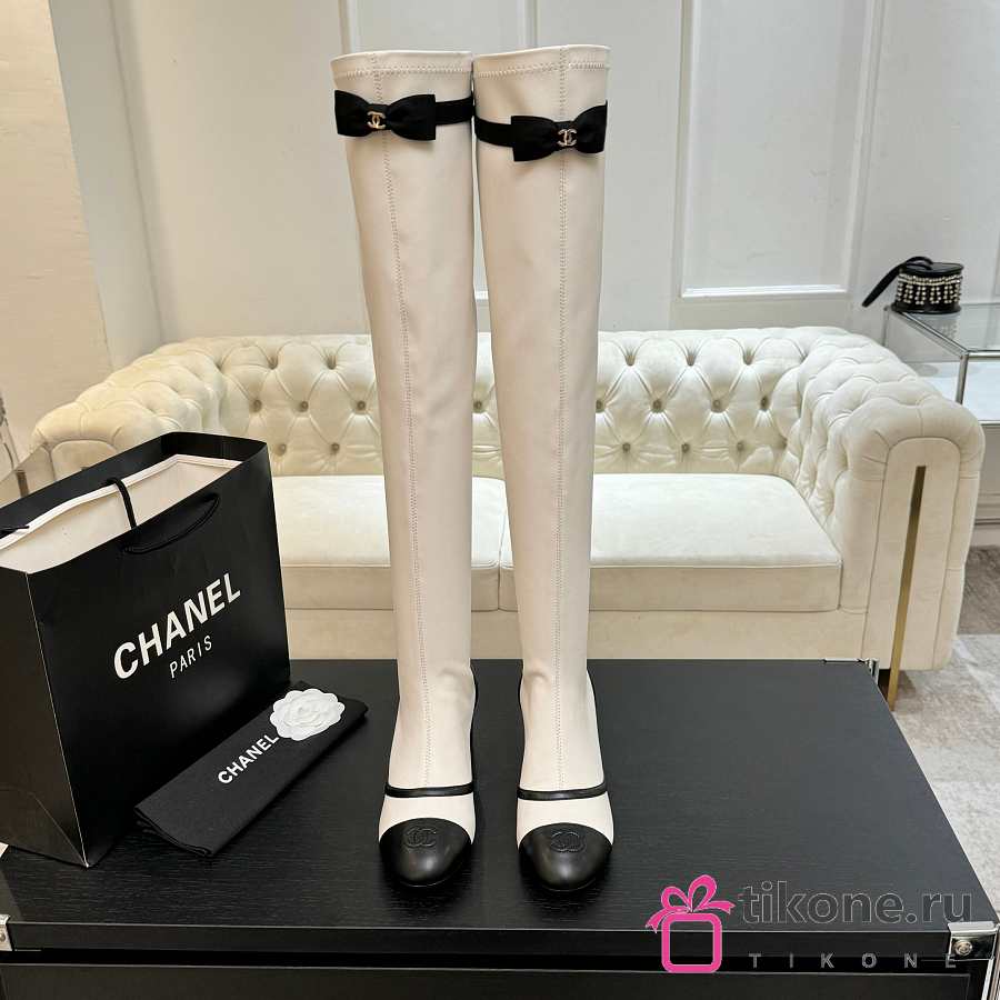 Chanel Thigh Boots Stretch Lambskin & Lambskin White Black 5cm