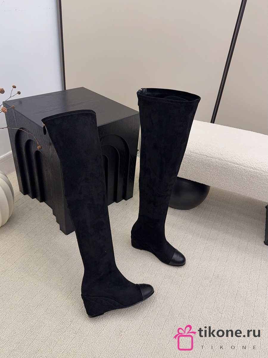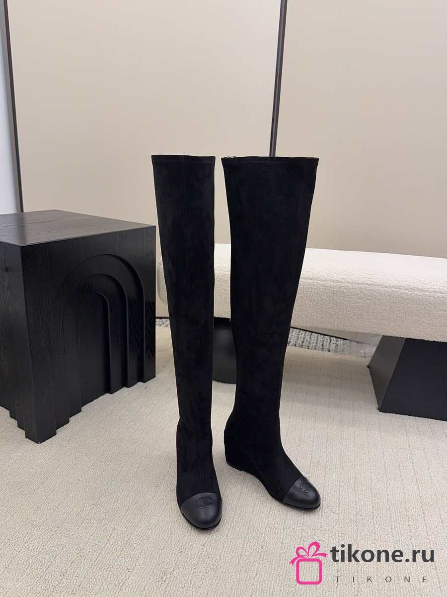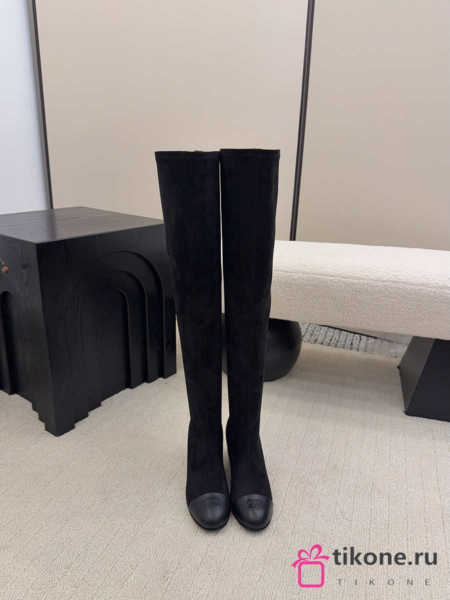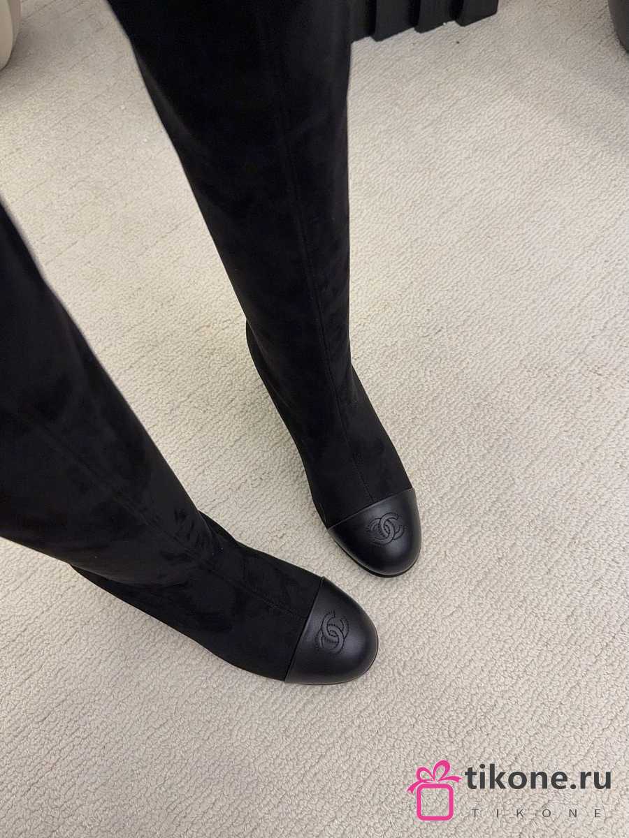 Chanel Thigh Boots Suede & Calfskin Black 6.5cm