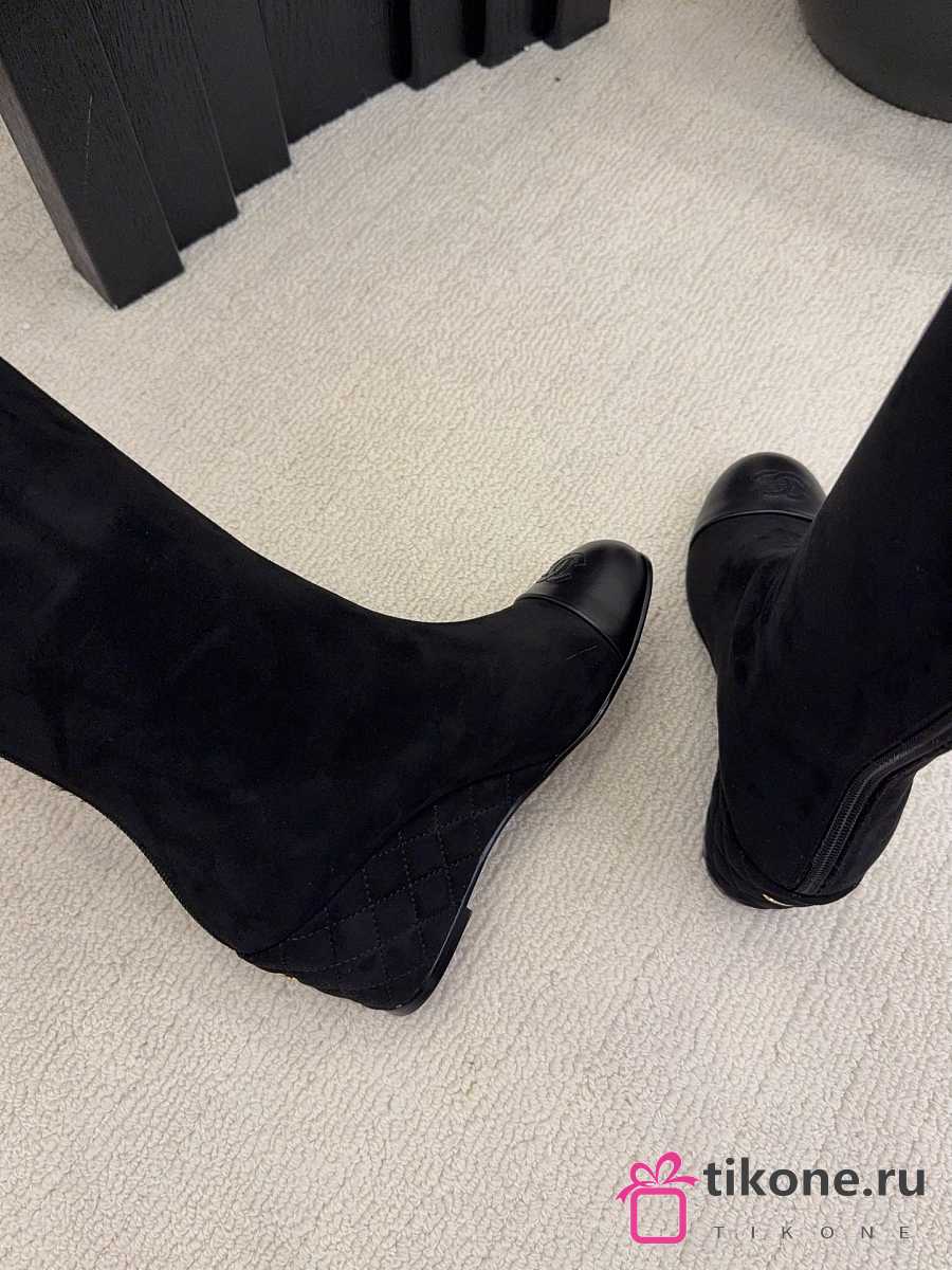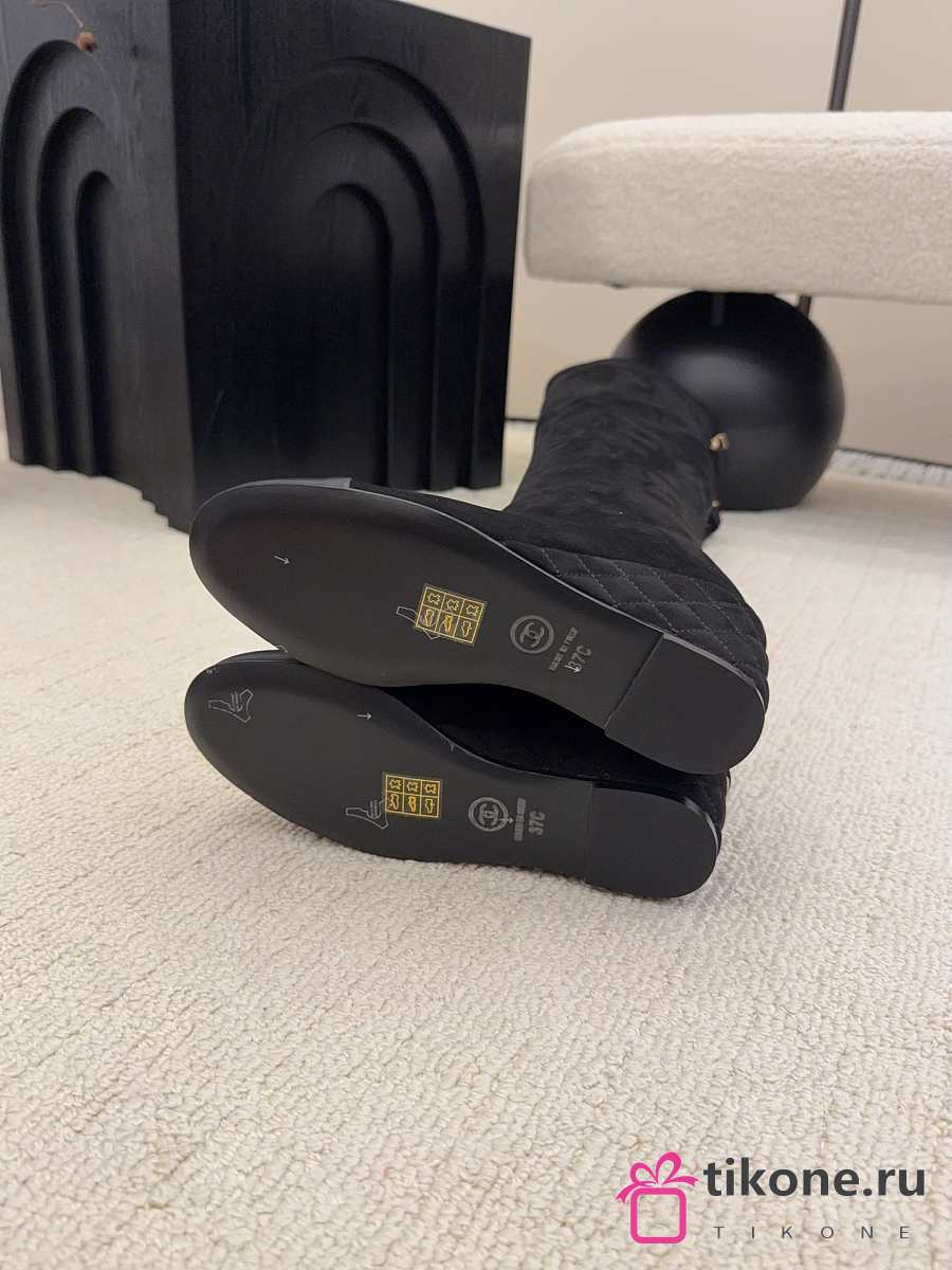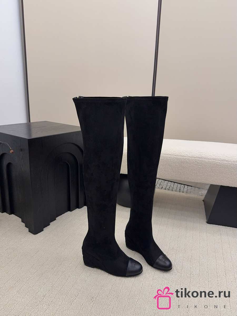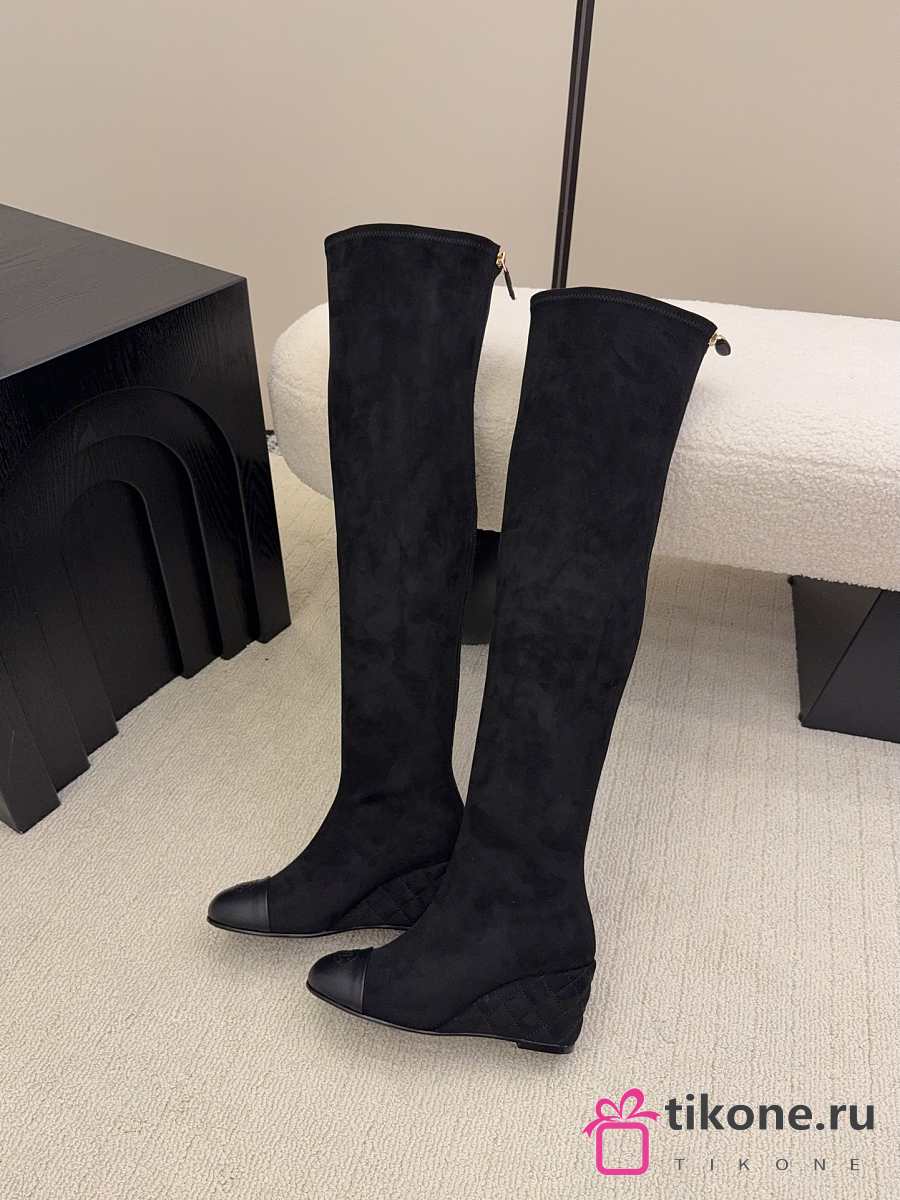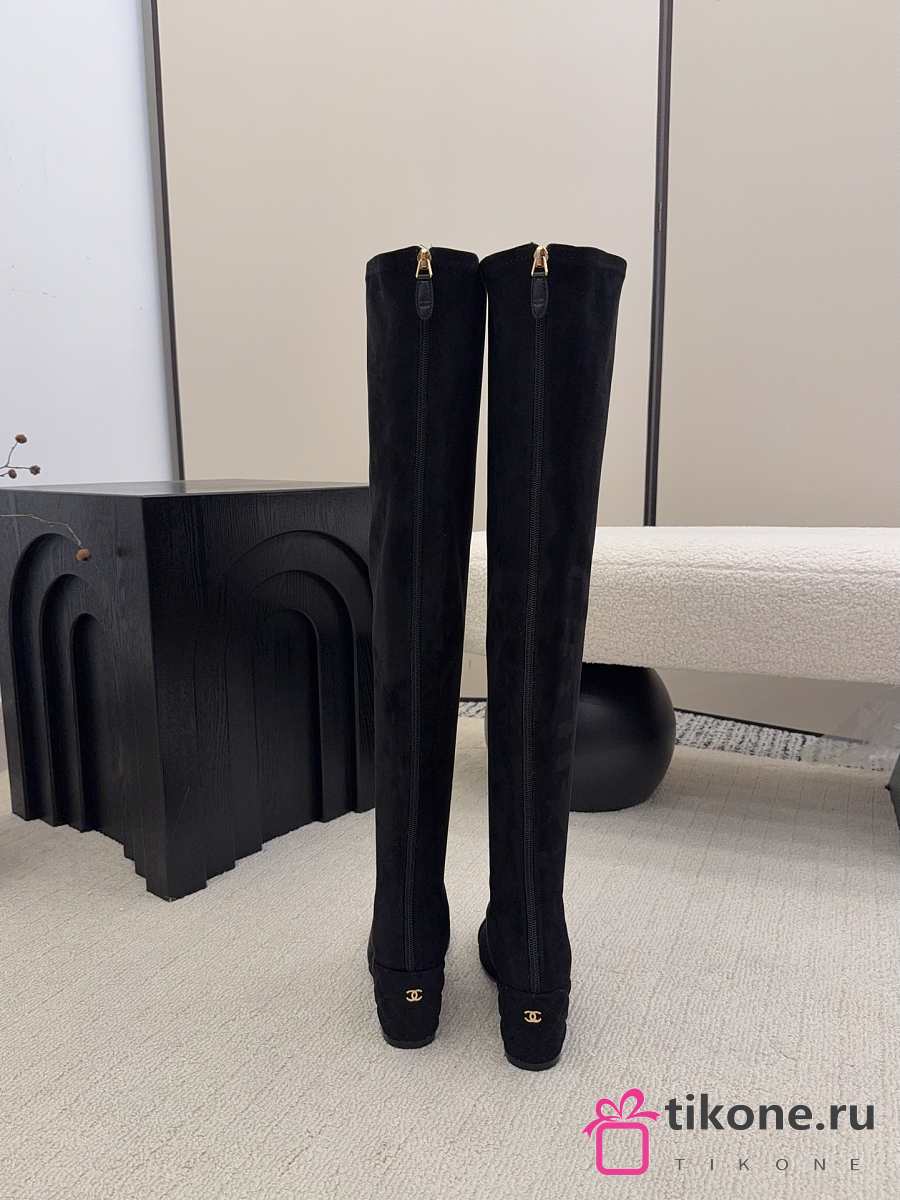 Chanel Thigh Boots Suede & Calfskin Black 6.5cm