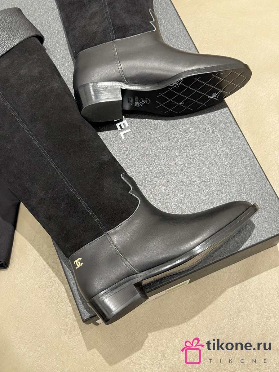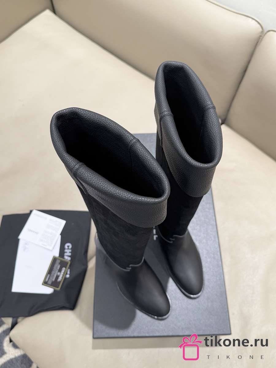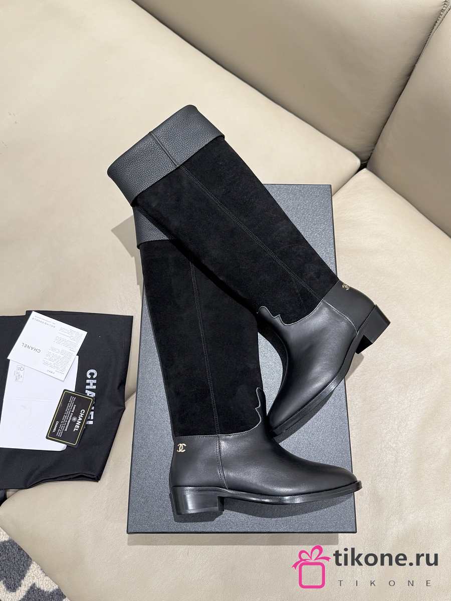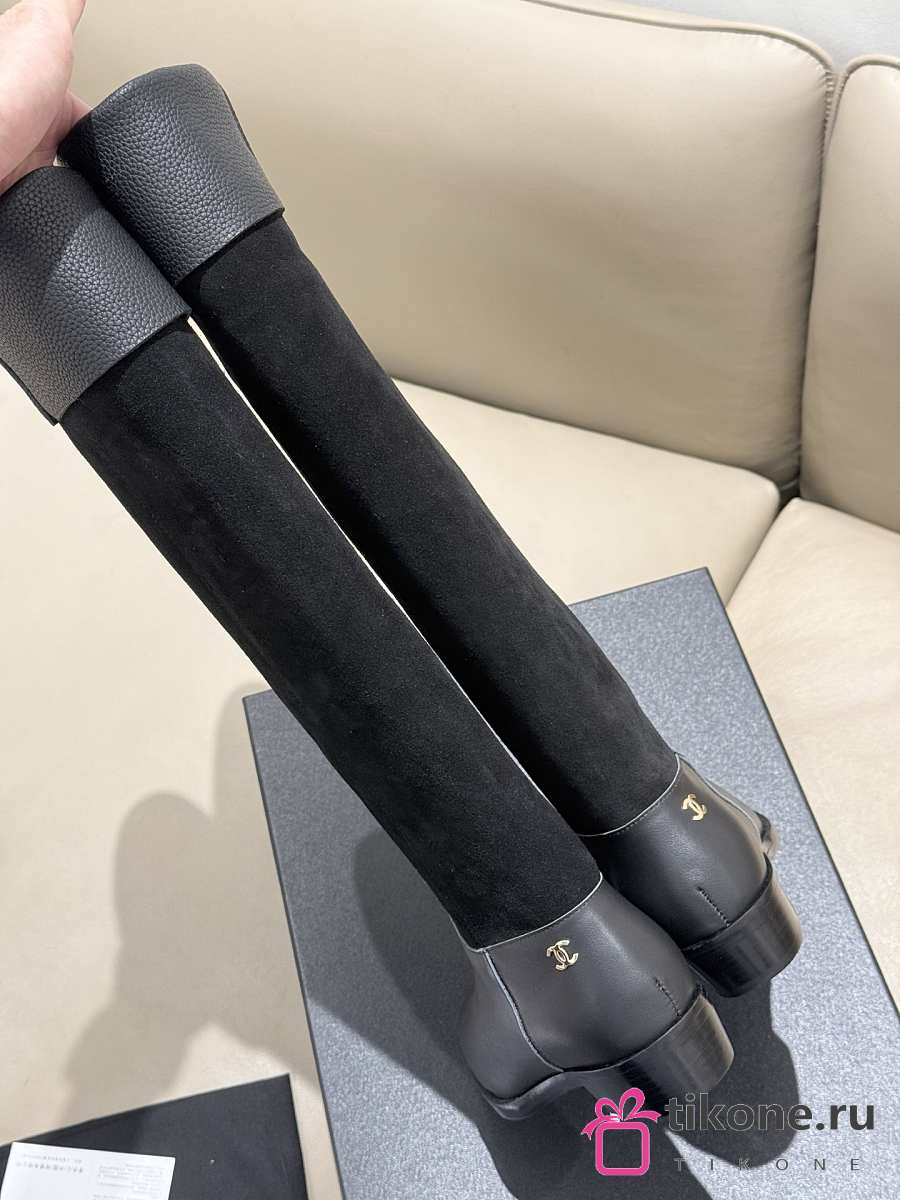 Chanel Thigh Boots Suede Calfskin & Calfskin Black 3.5cm