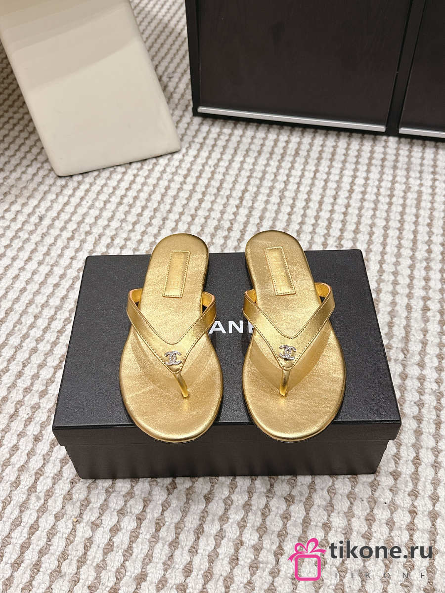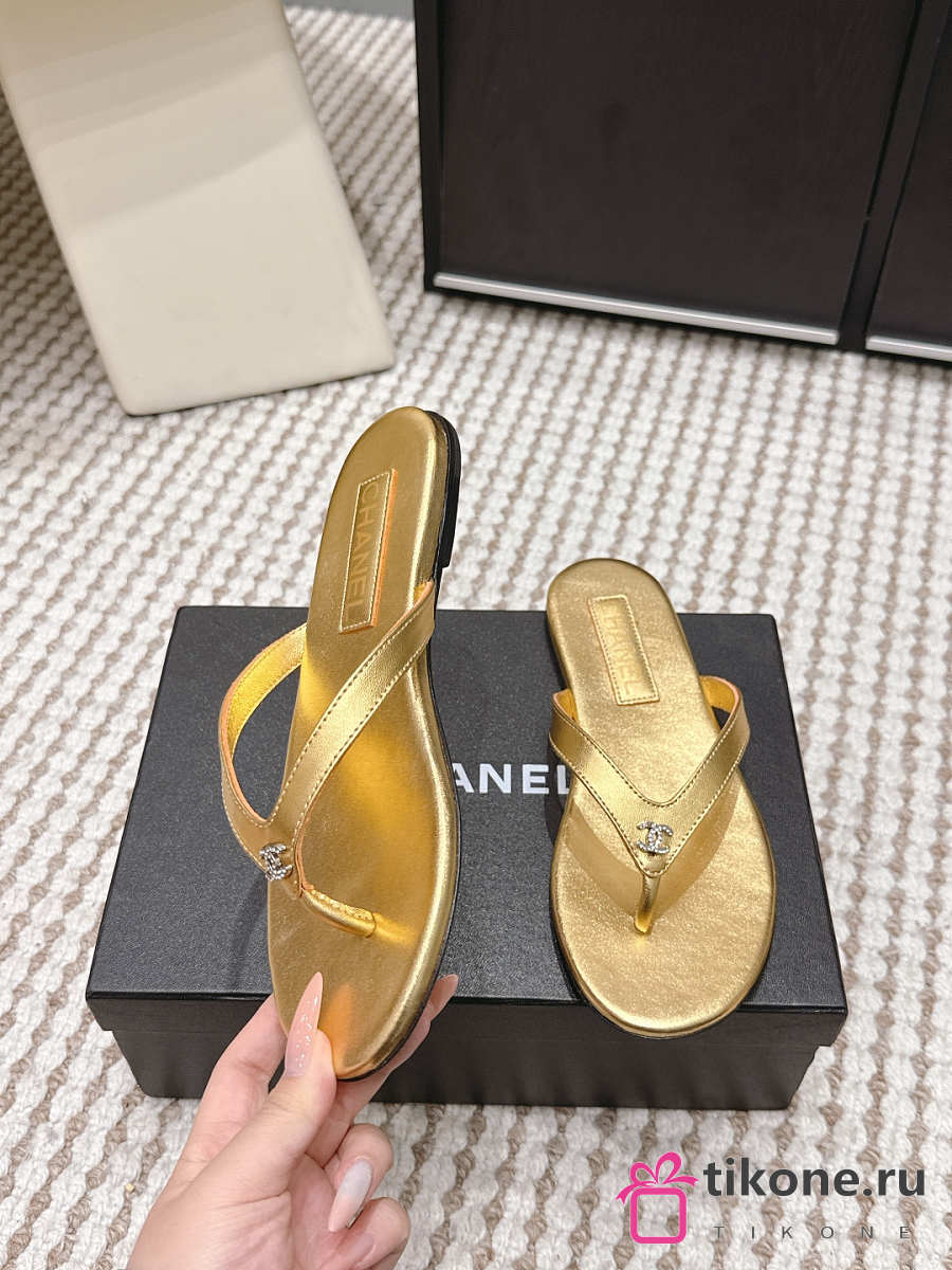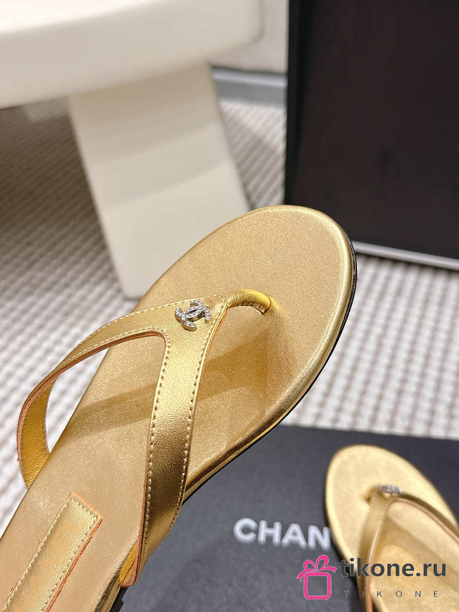 Chanel Thongs Laminated Calfskin Gold