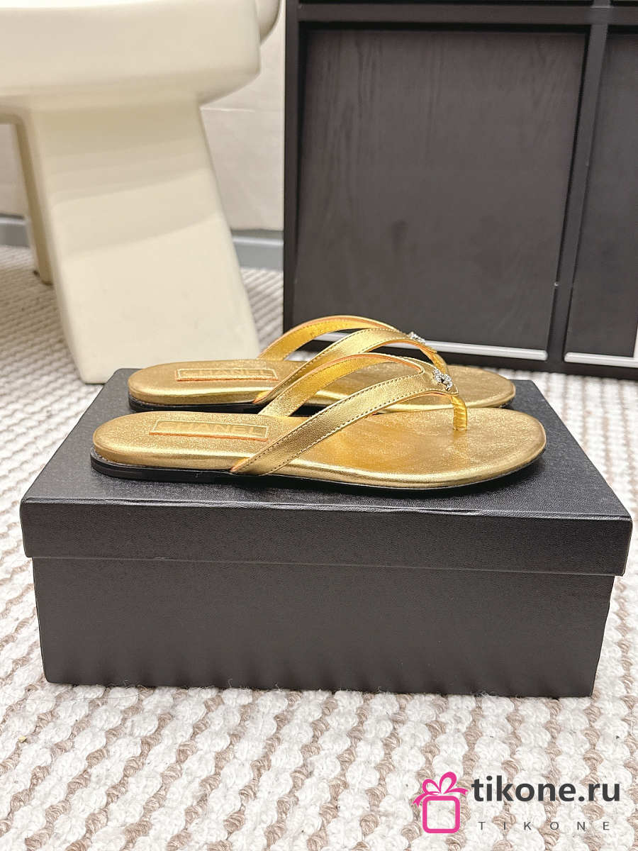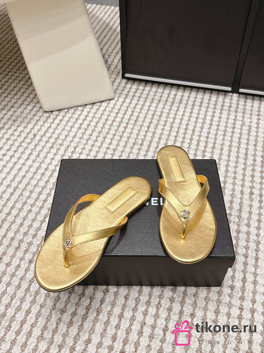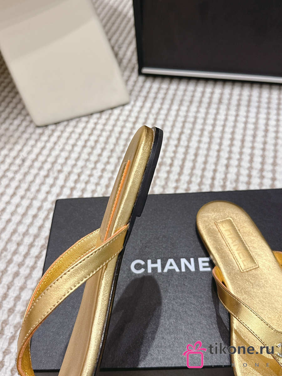 Chanel Thongs Laminated Calfskin Gold