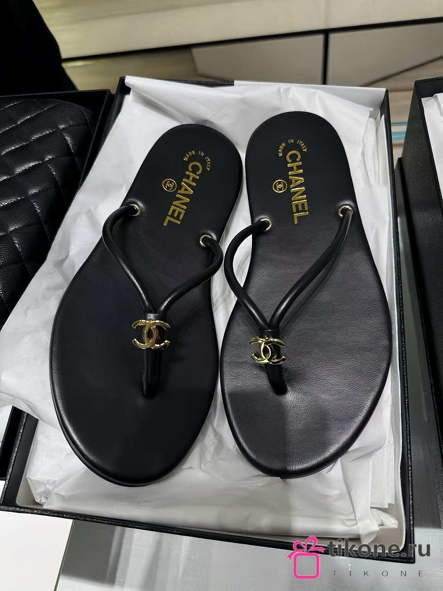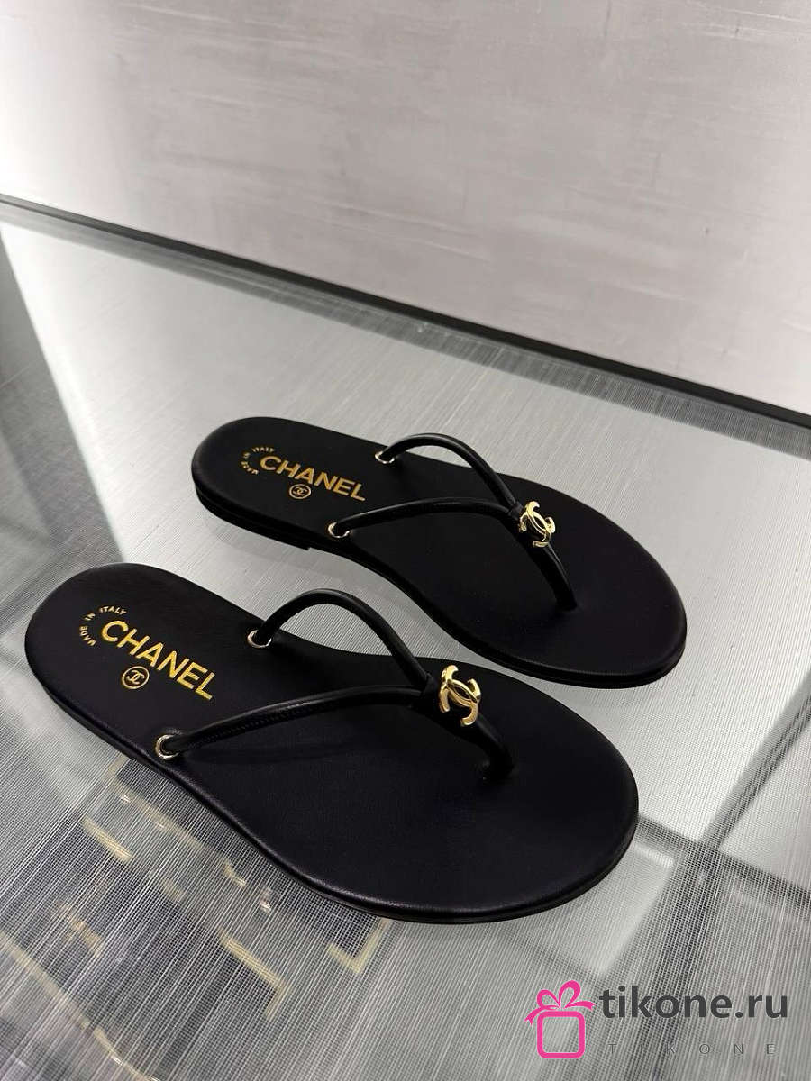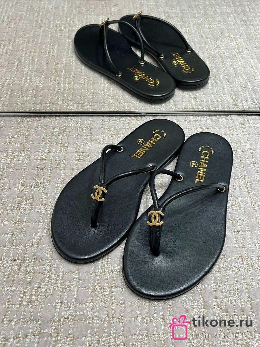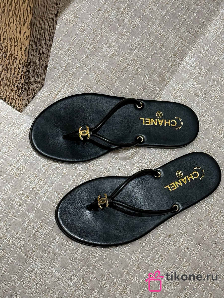 Chanel Thongs Lamskin Black