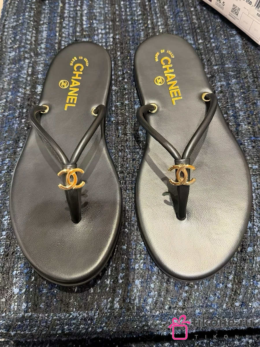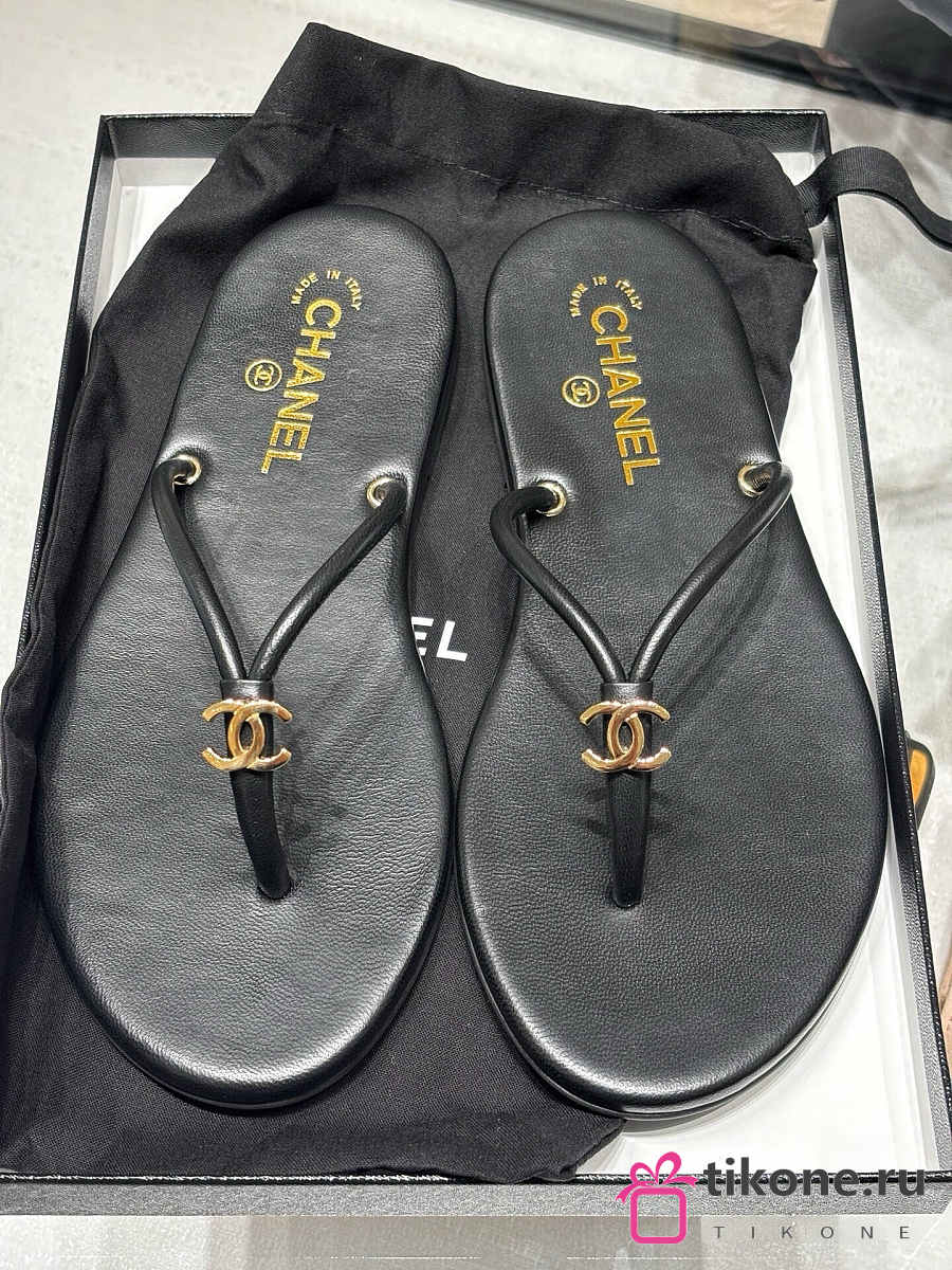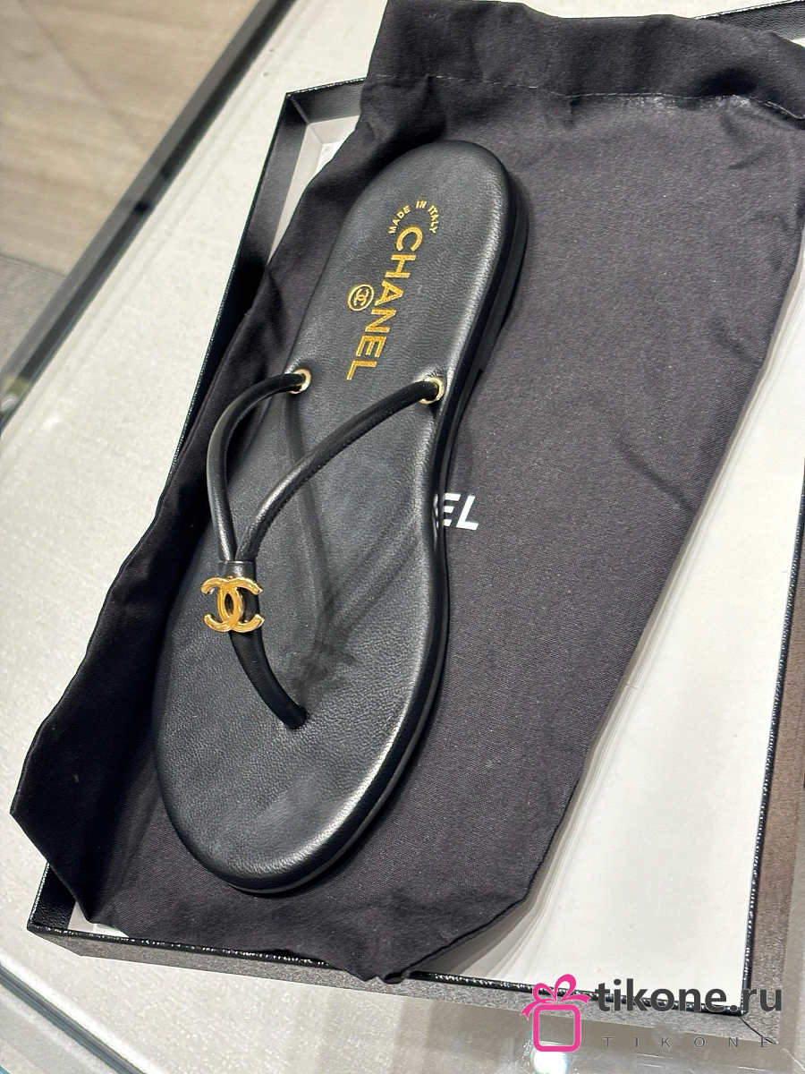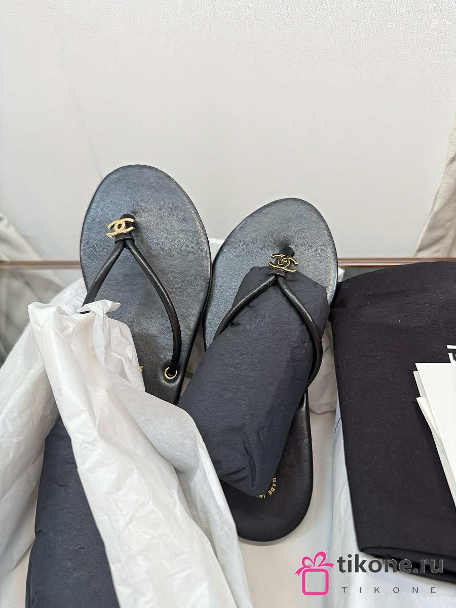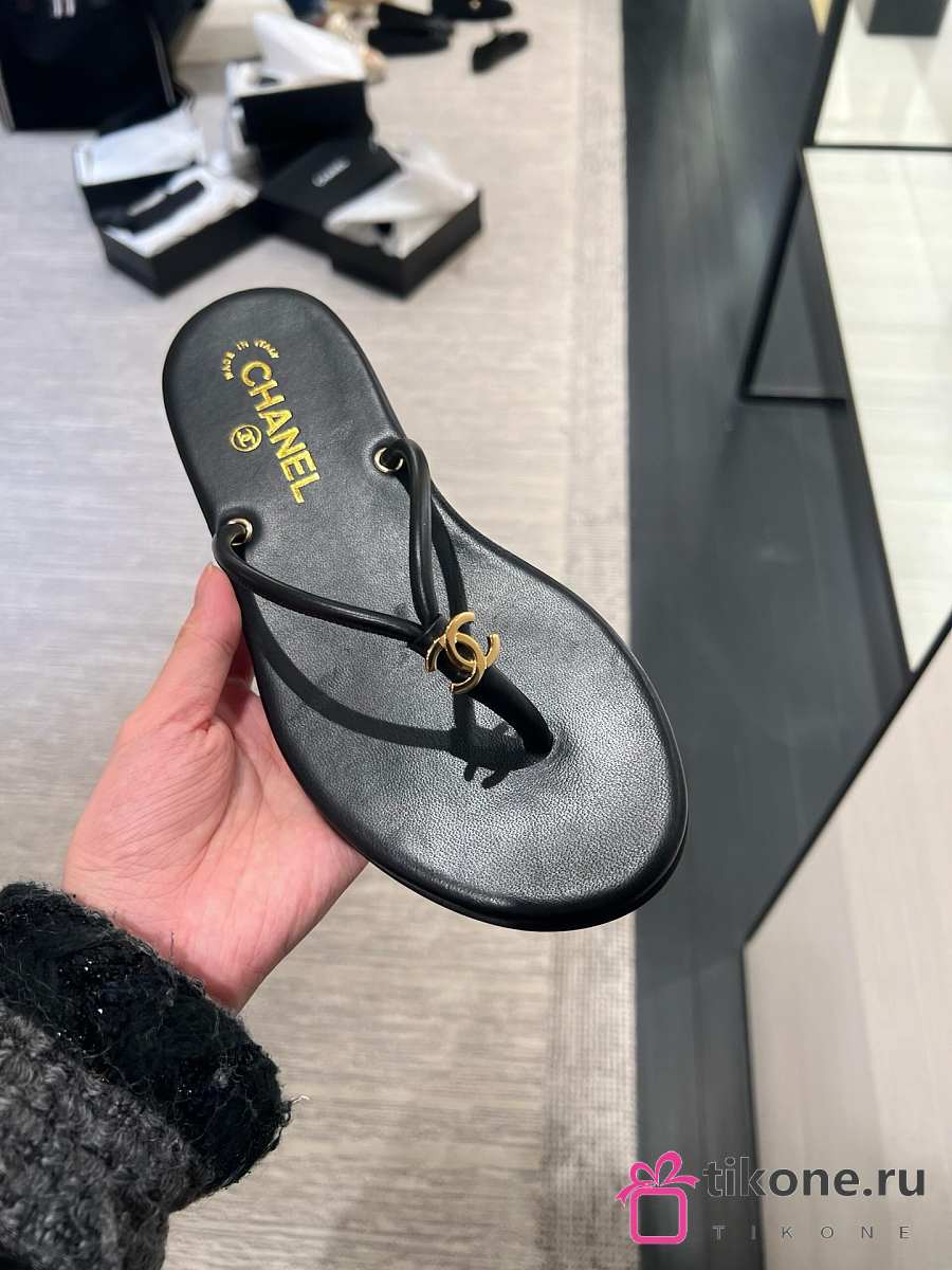 Chanel Thongs Lamskin Black