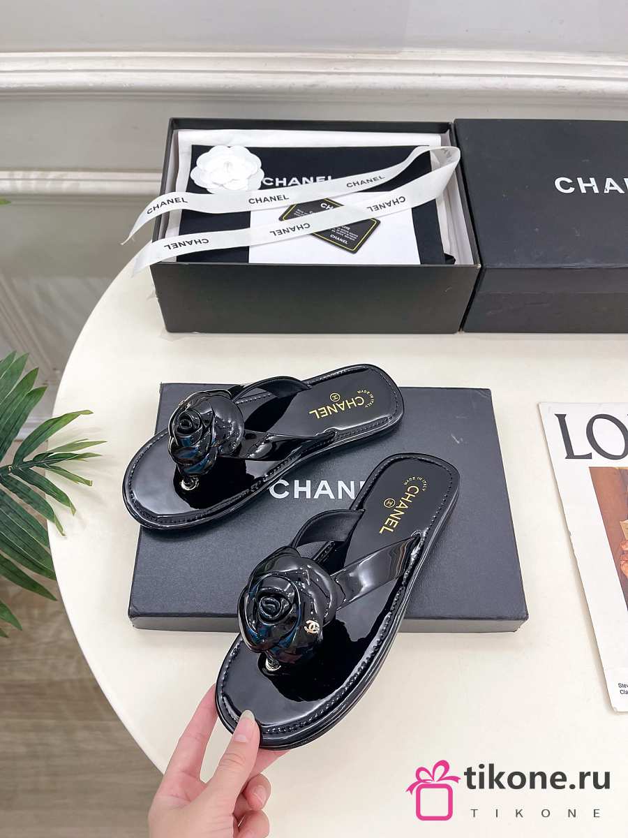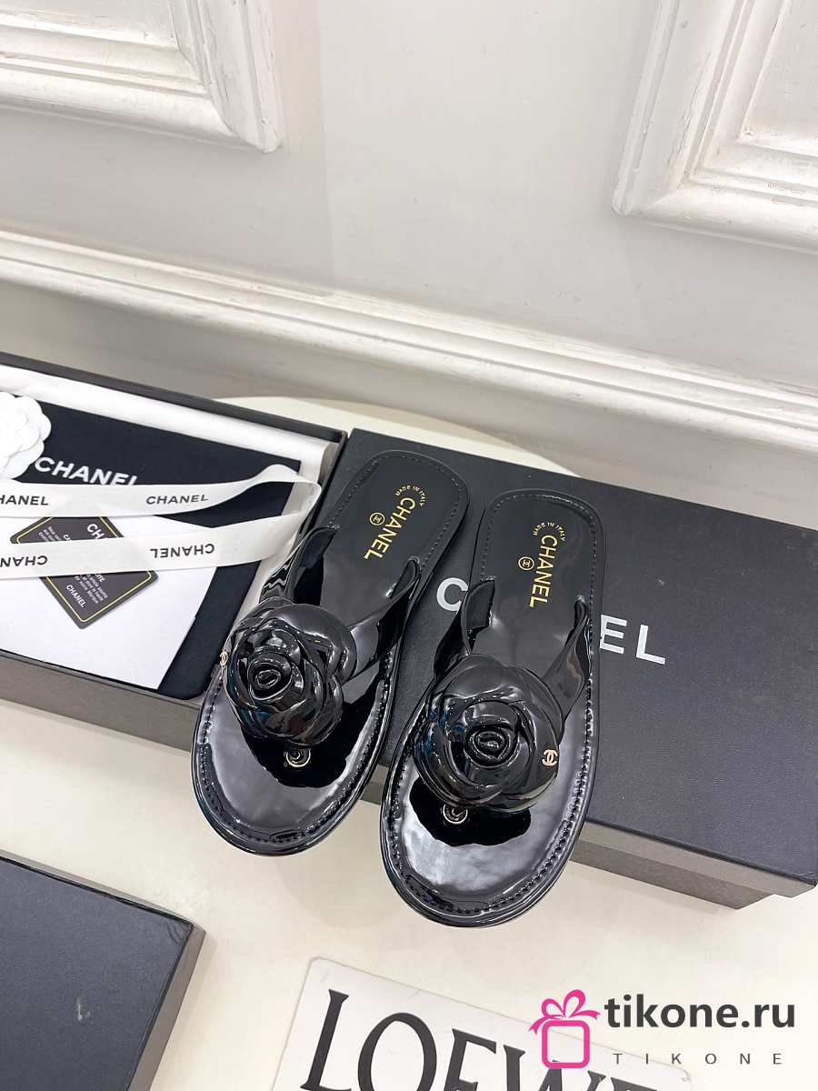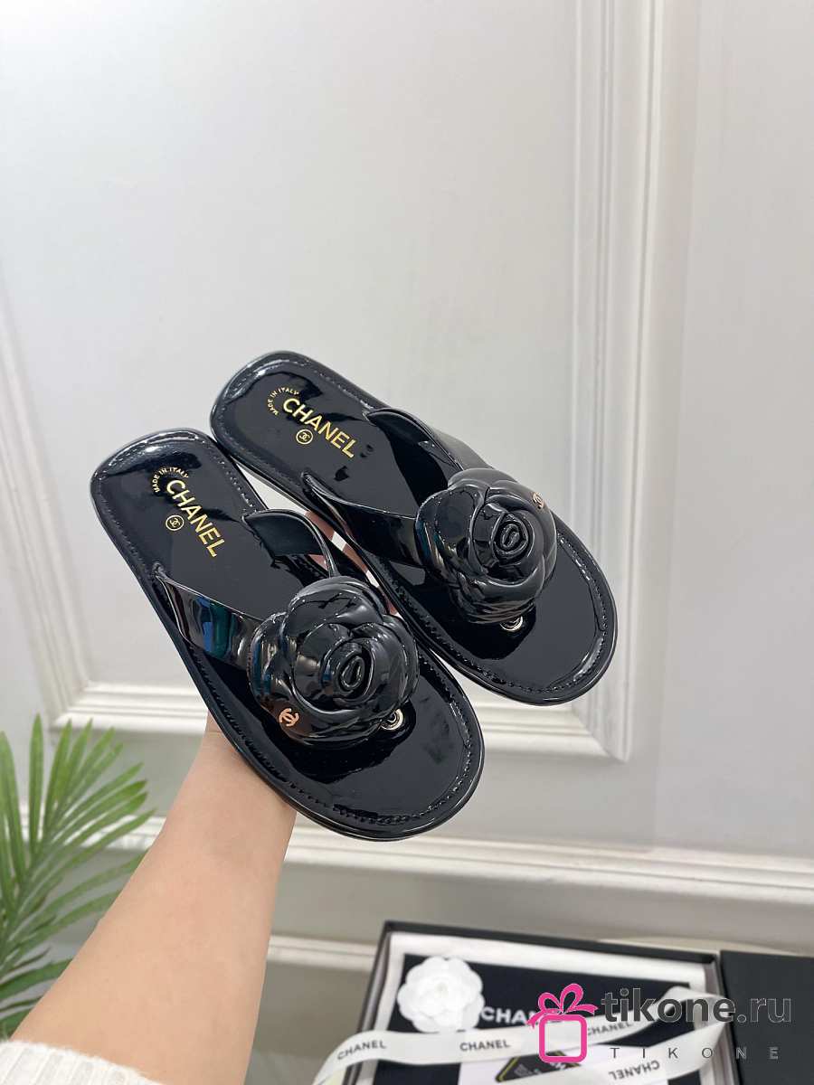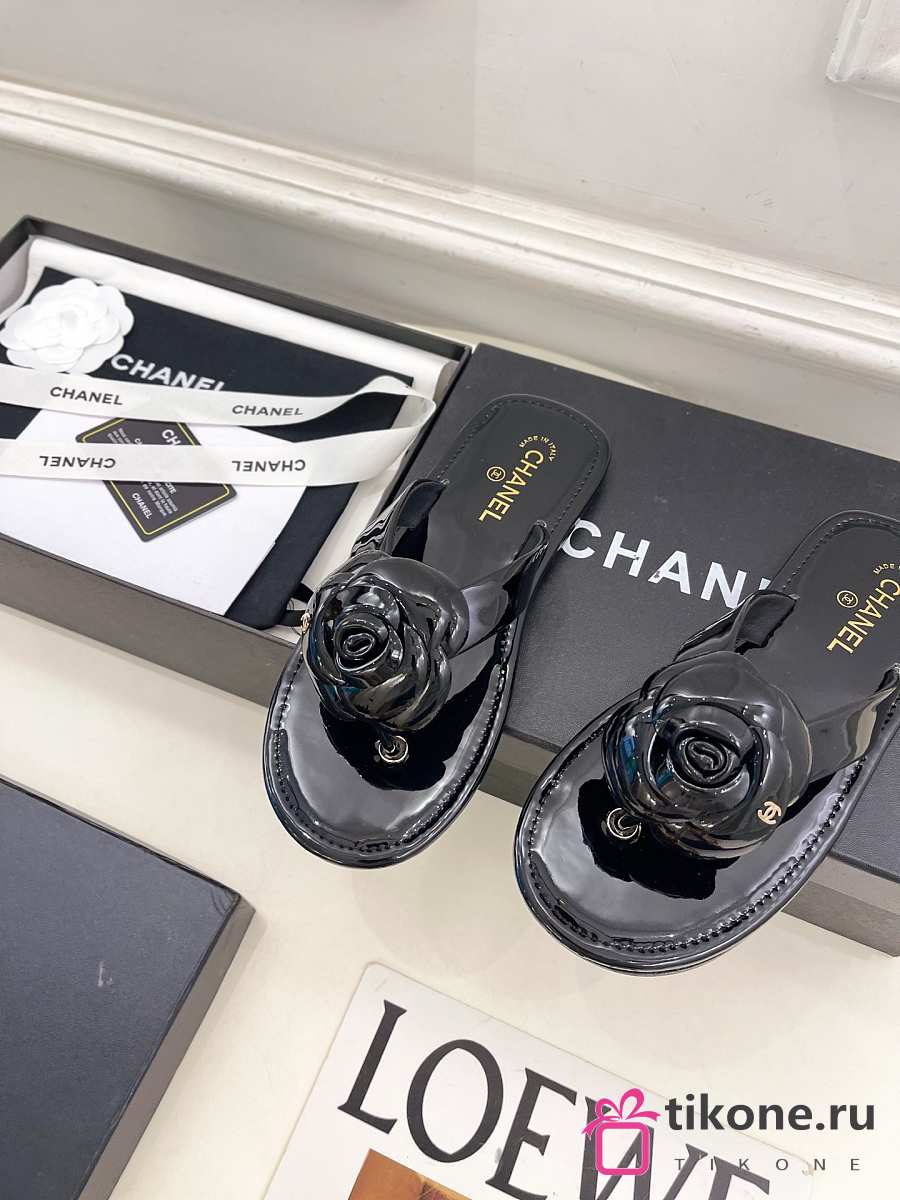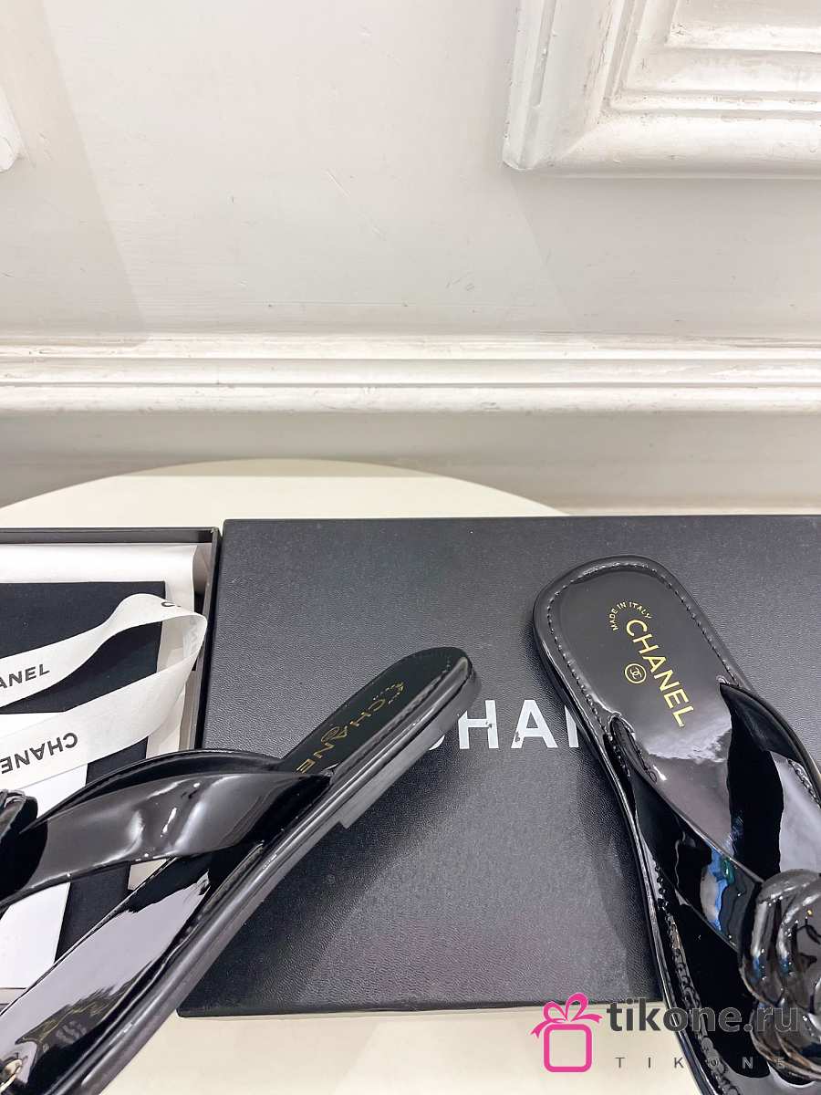 Chanel Thongs Patent Calfskin Black