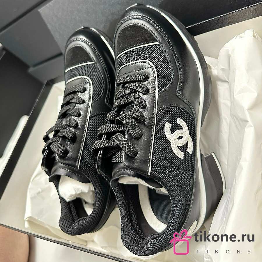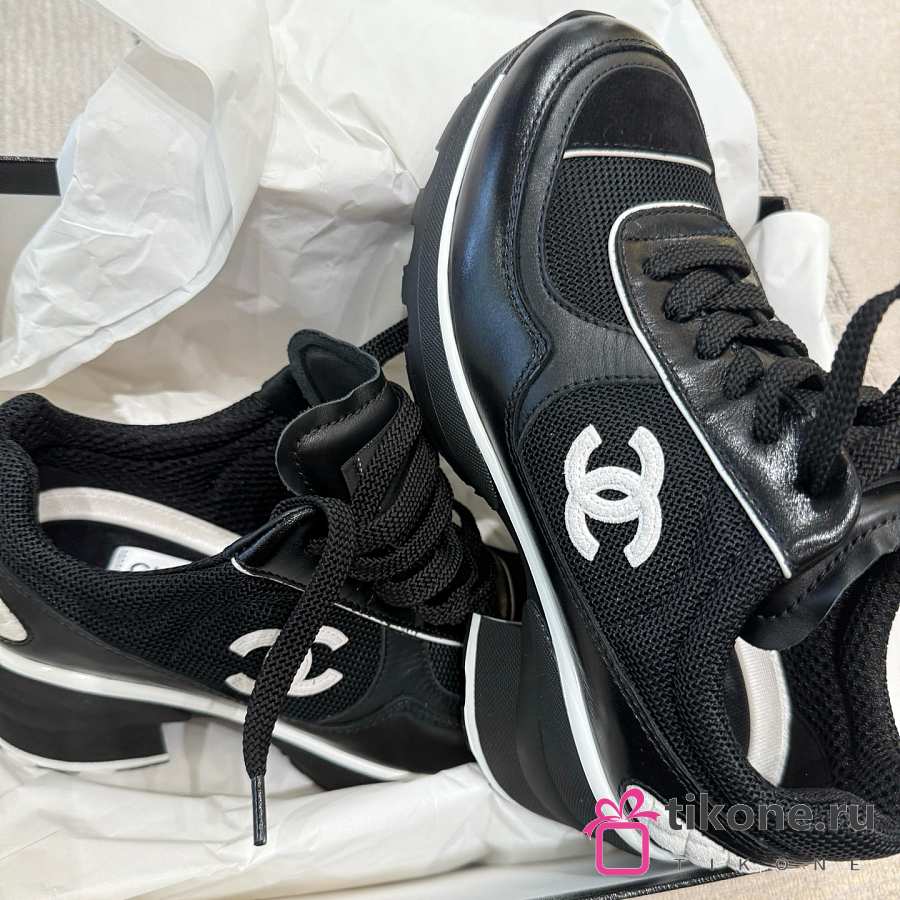 Chanel Trainers Mixed Fibers Shiny Calfskin & Suede Calfskin Black 4cm