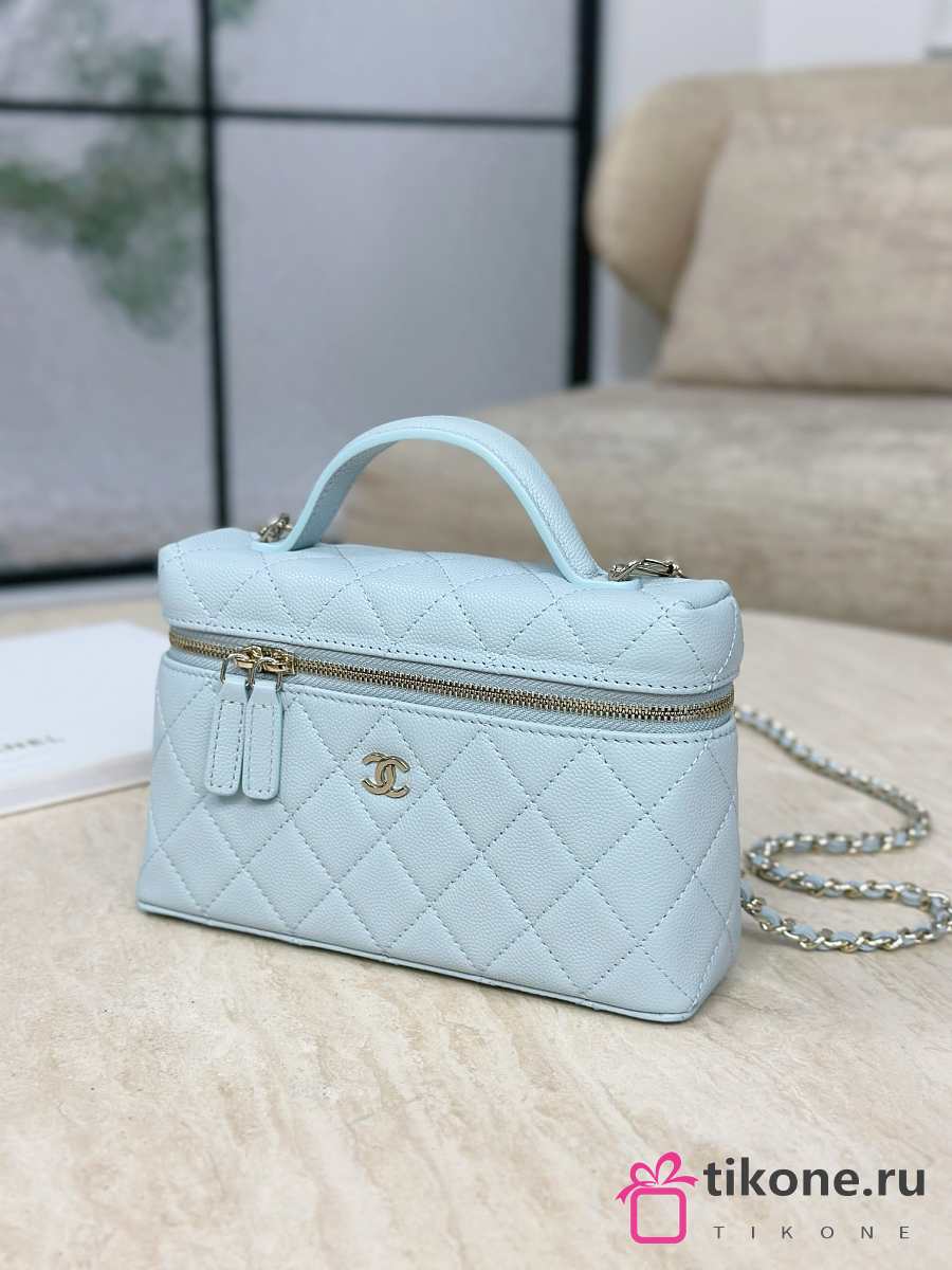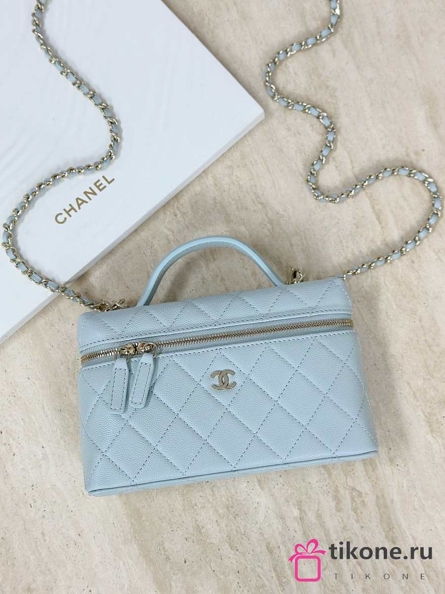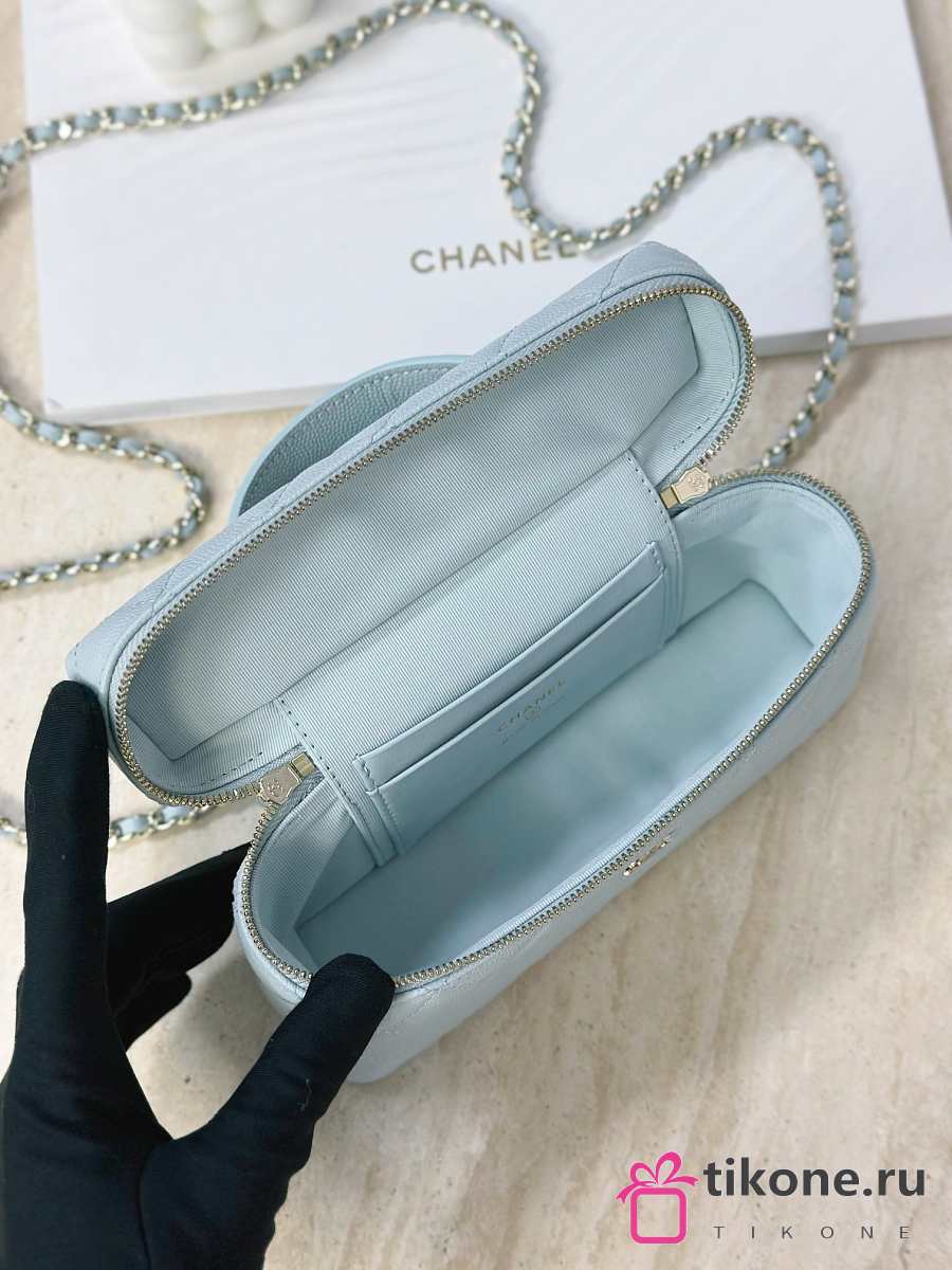 Chanel Vanity with Chain Grained Caviar & Gold-Tone Metal Light Blue - 19.5x17x5cm