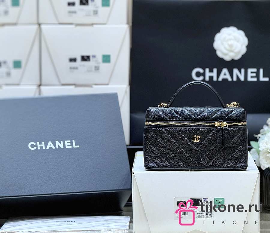 Chanel Vanity with Chain Grained Shiny Calfskin & Gold-Tone Metal Black AP5212 - 19.5x17x5cm