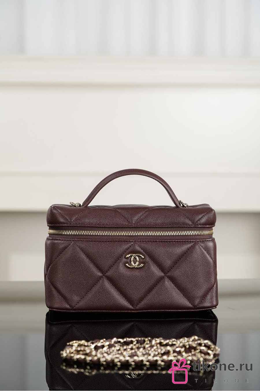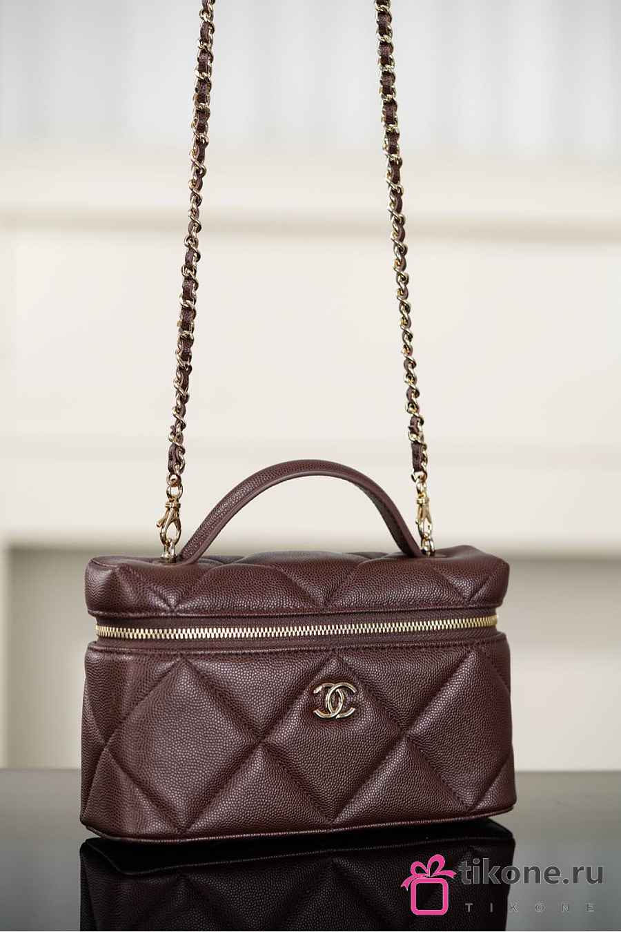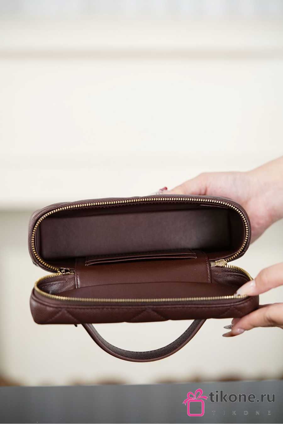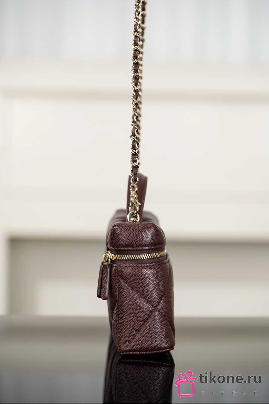 Chanel Vanity With Chain Grained Shiny Calfskin & Gold Tone Metal Dark Brown - 19.5x17x5cm