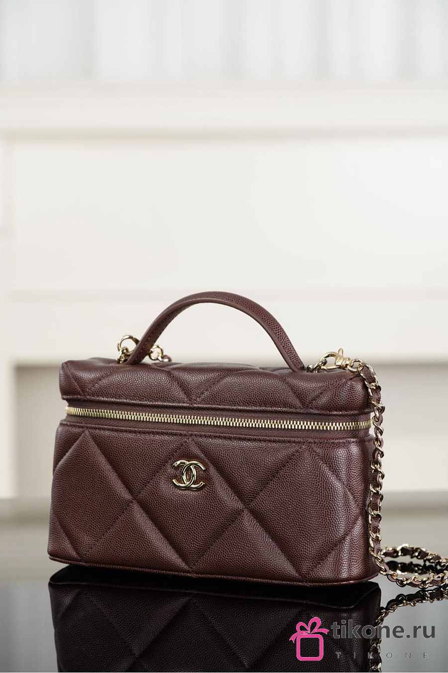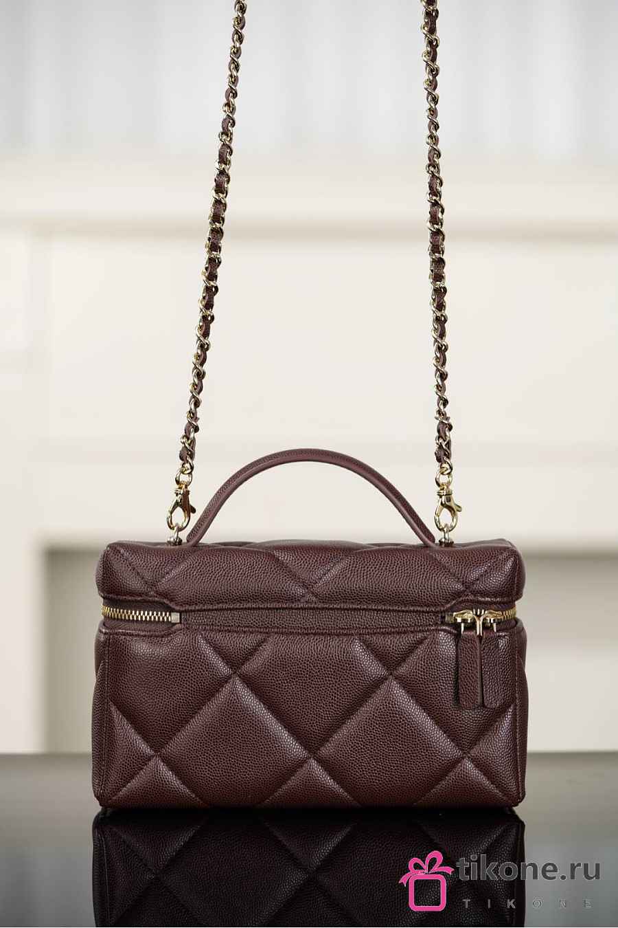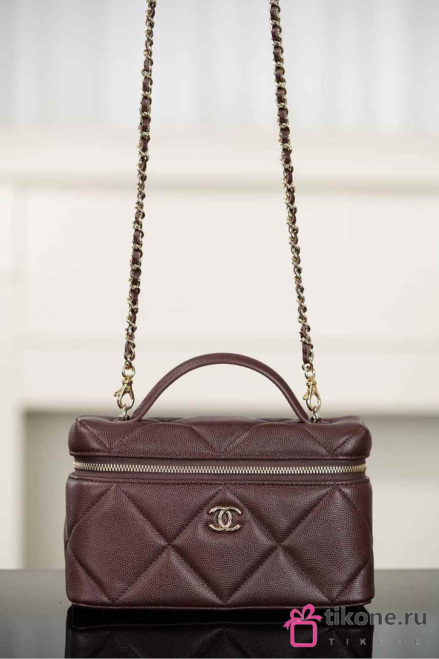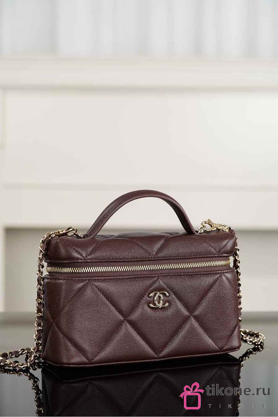 Chanel Vanity With Chain Grained Shiny Calfskin & Gold Tone Metal Dark Brown - 19.5x17x5cm