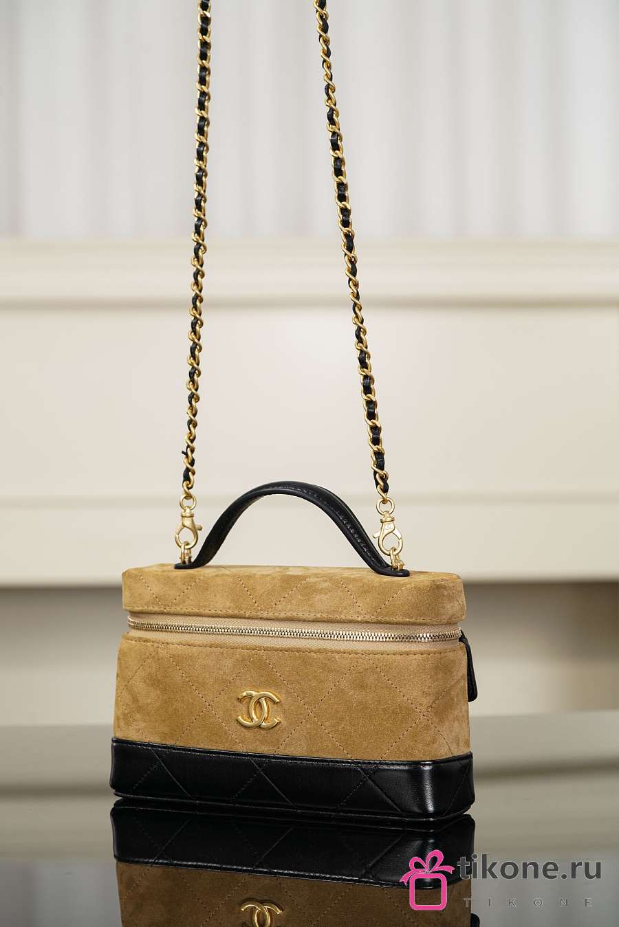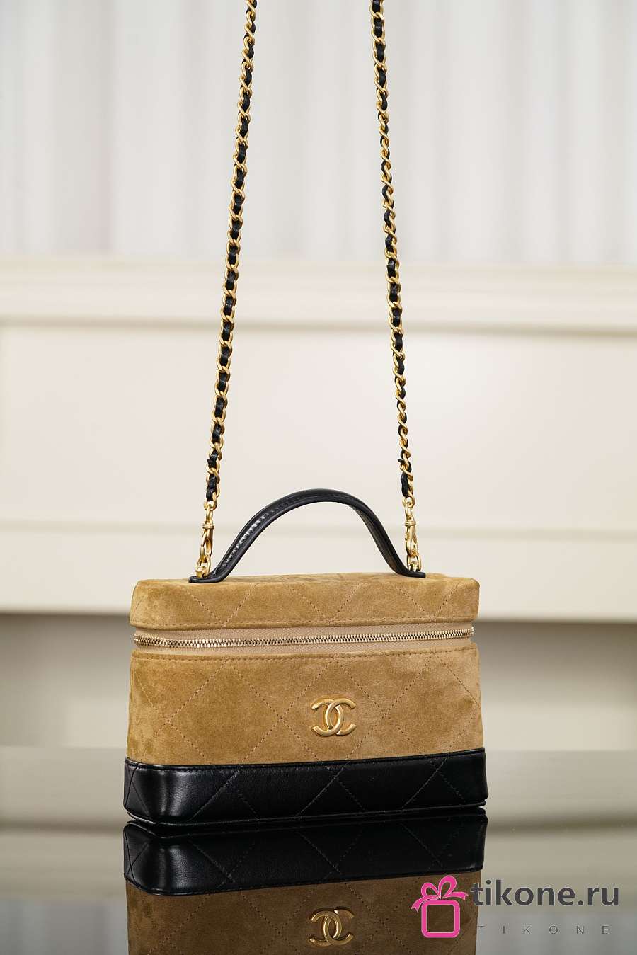 Chanel Vanity with Chain Suede Calfskin Shiny Lambskin & Gold-Tone Metal Brown & Black - 19.5x17x5cm