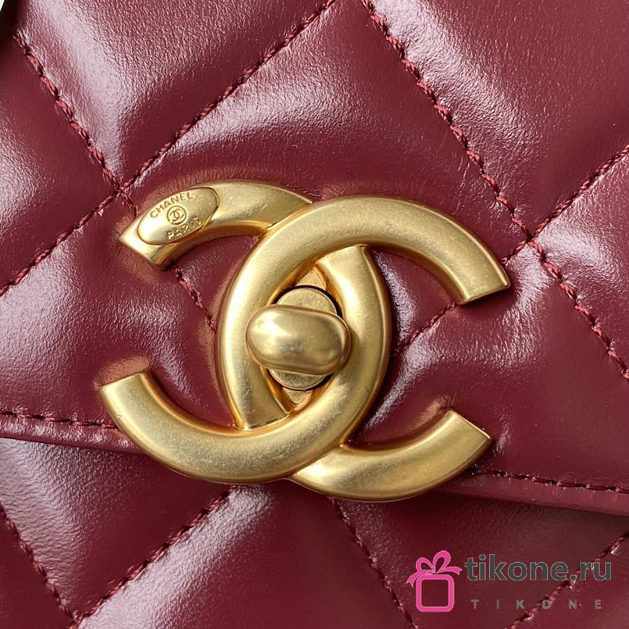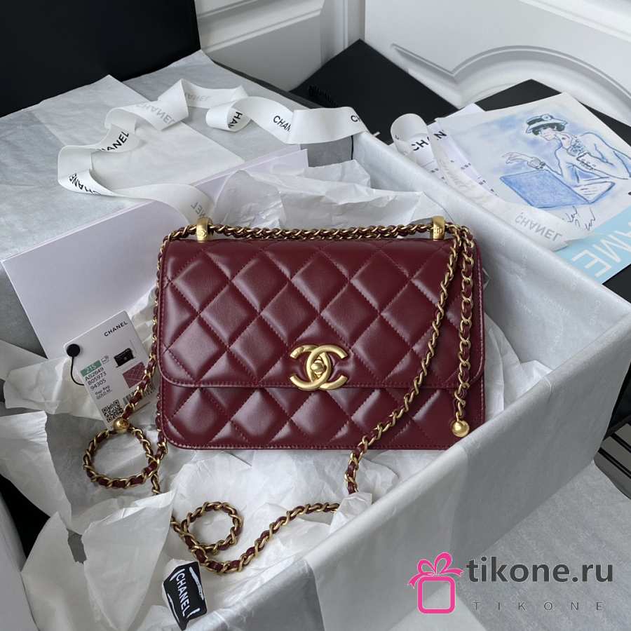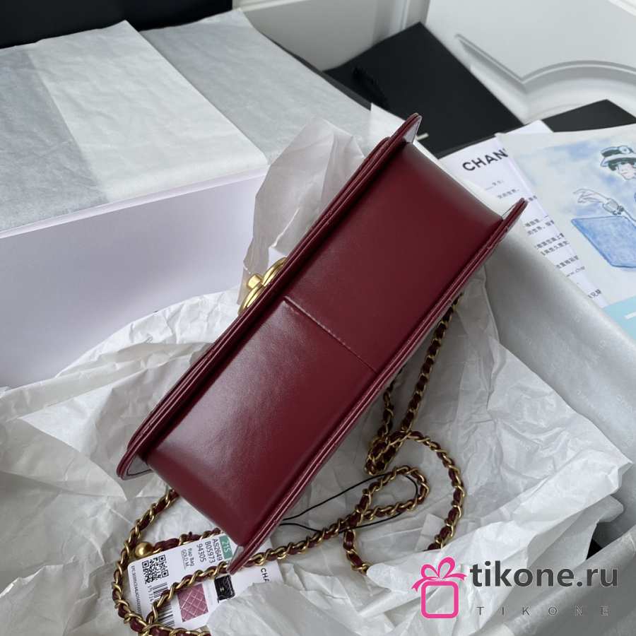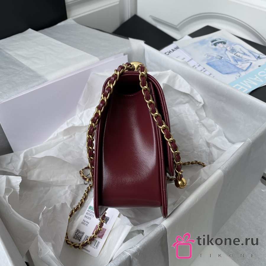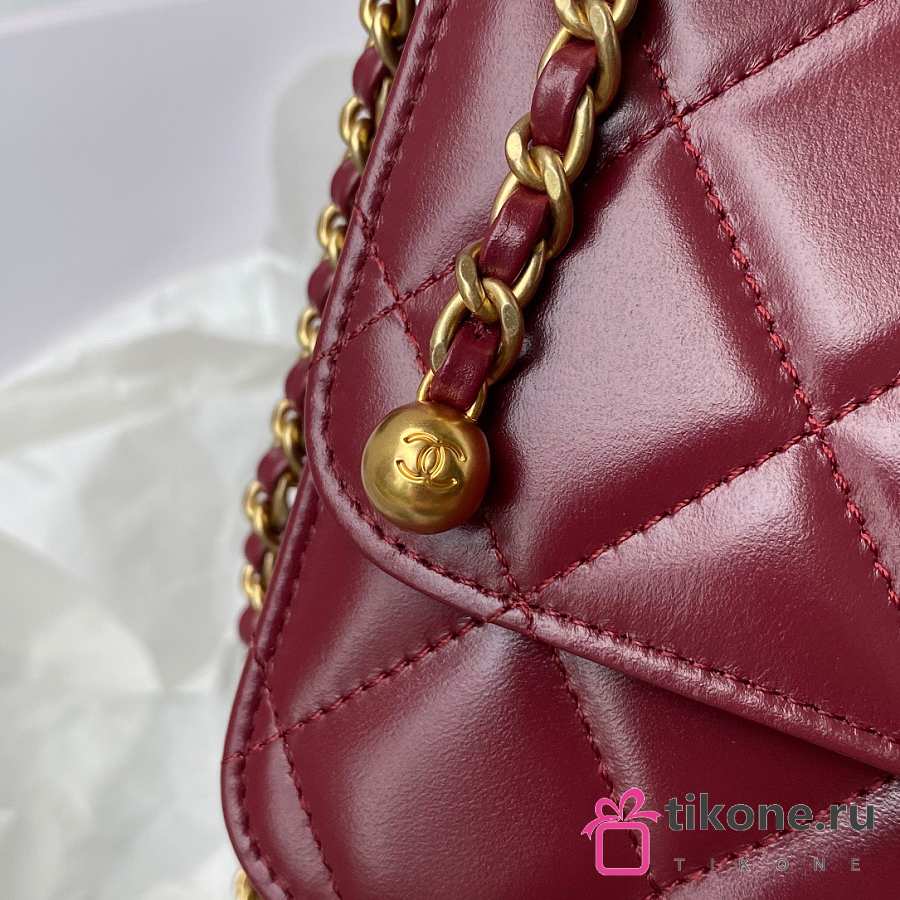 Chanel Wallet on Chain Shiny Calfskin & Gold-Tone Metal Dark Burgundy - 19.2x12.3x3.5cm