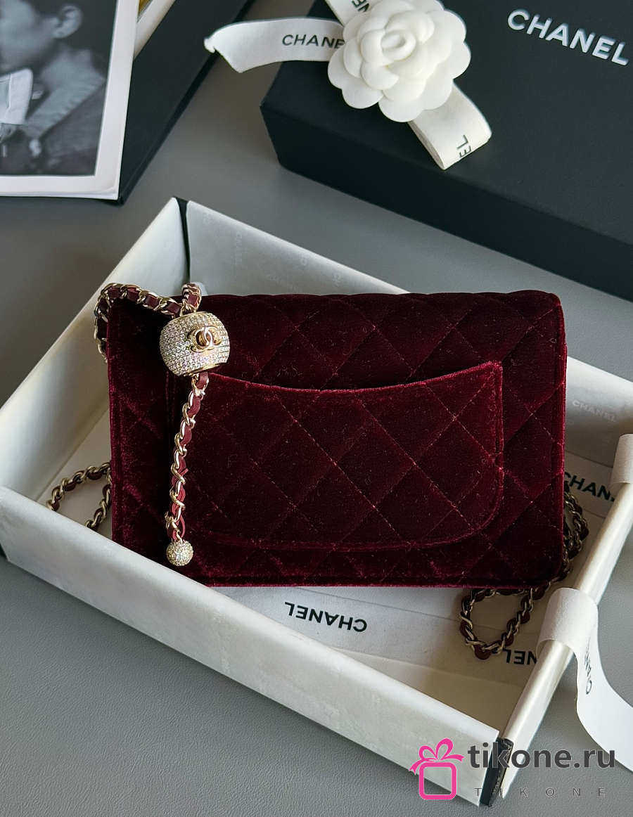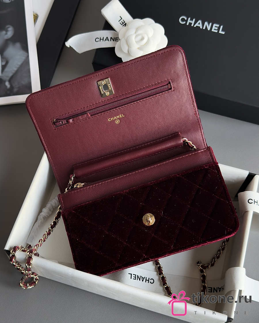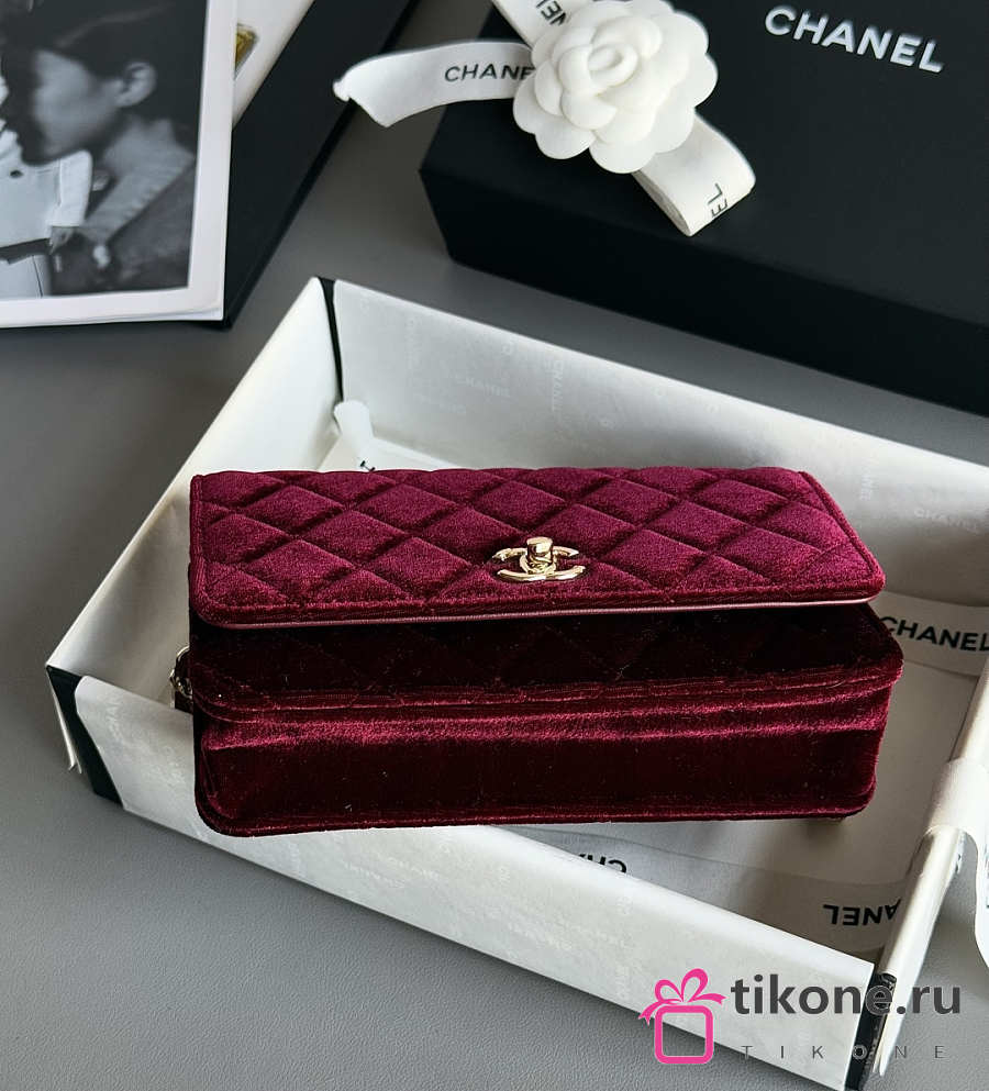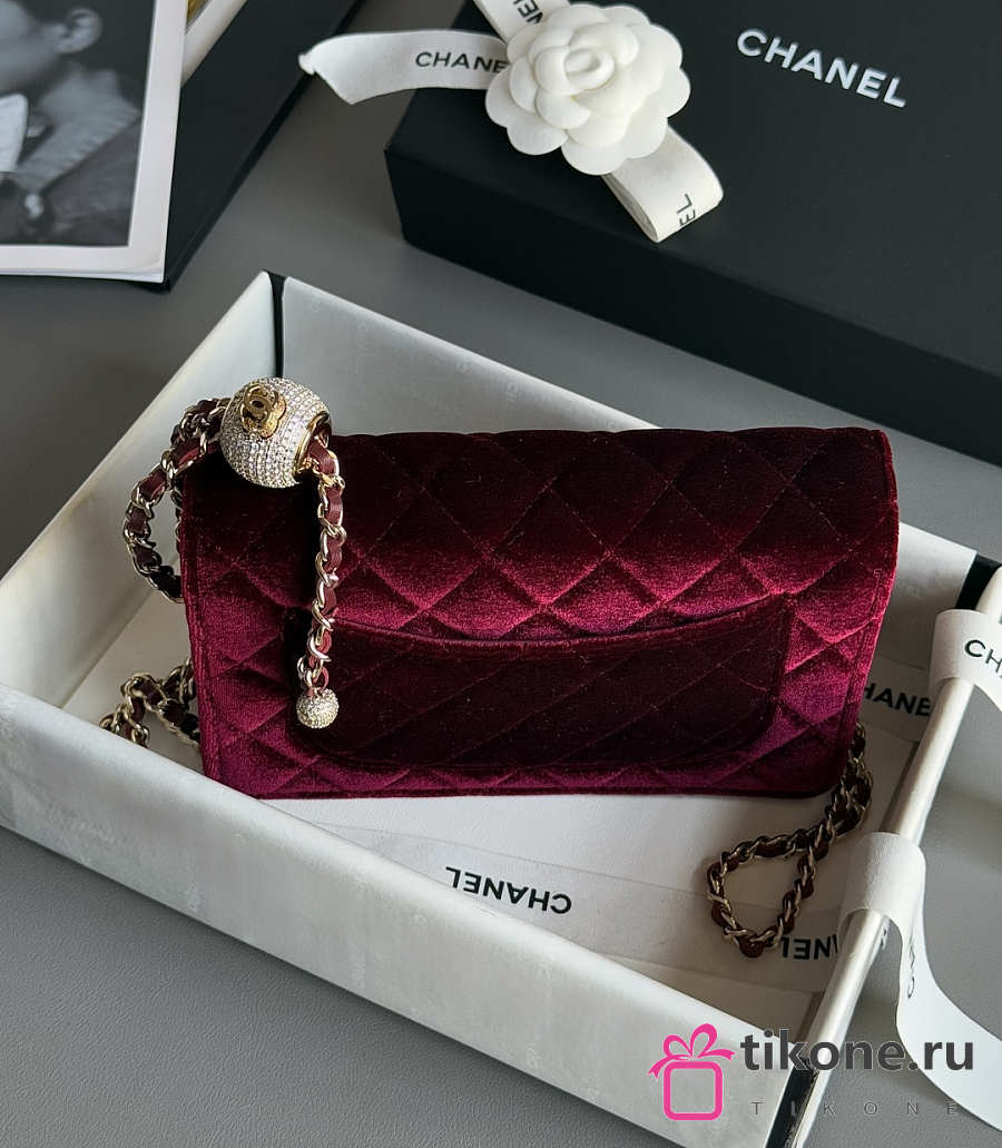 Chanel Wallet On Chain Velvet Diamanté & Gold-Tone Metal Burgundy - 19.2x12.3x3.5cm
