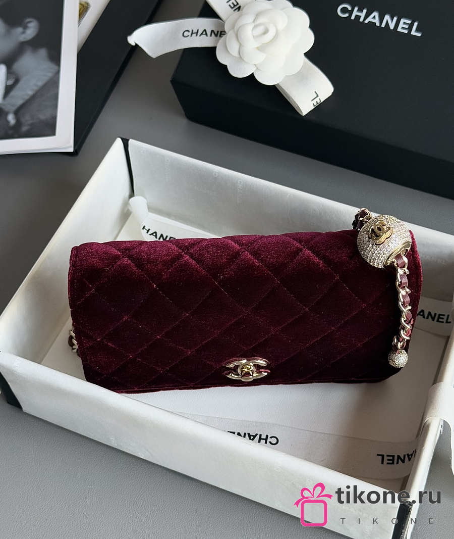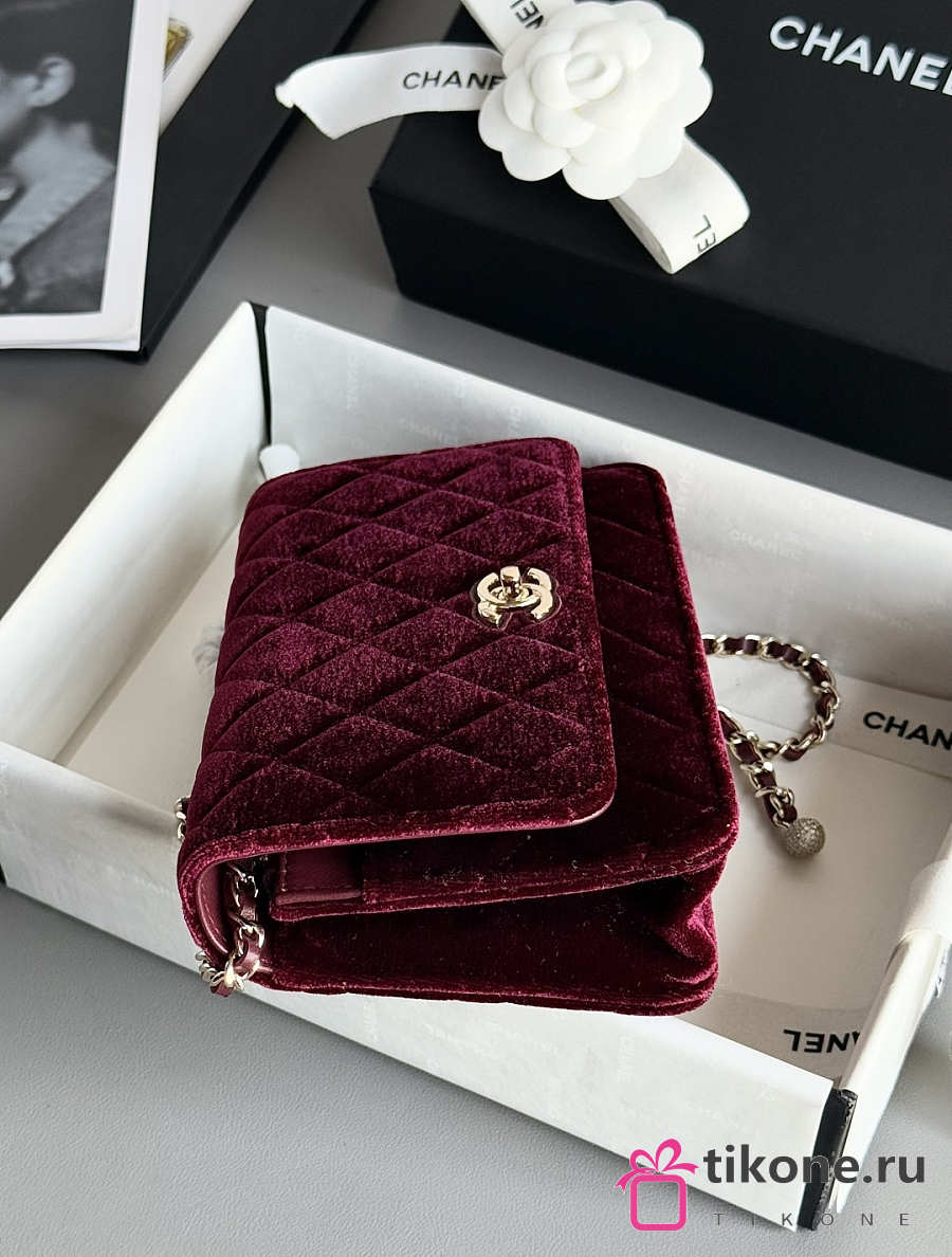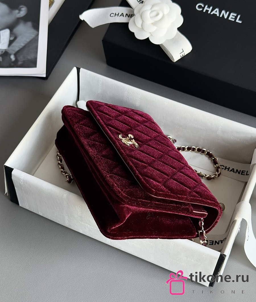 Chanel Wallet On Chain Velvet Diamanté & Gold-Tone Metal Burgundy - 19.2x12.3x3.5cm