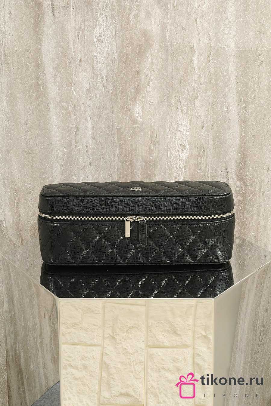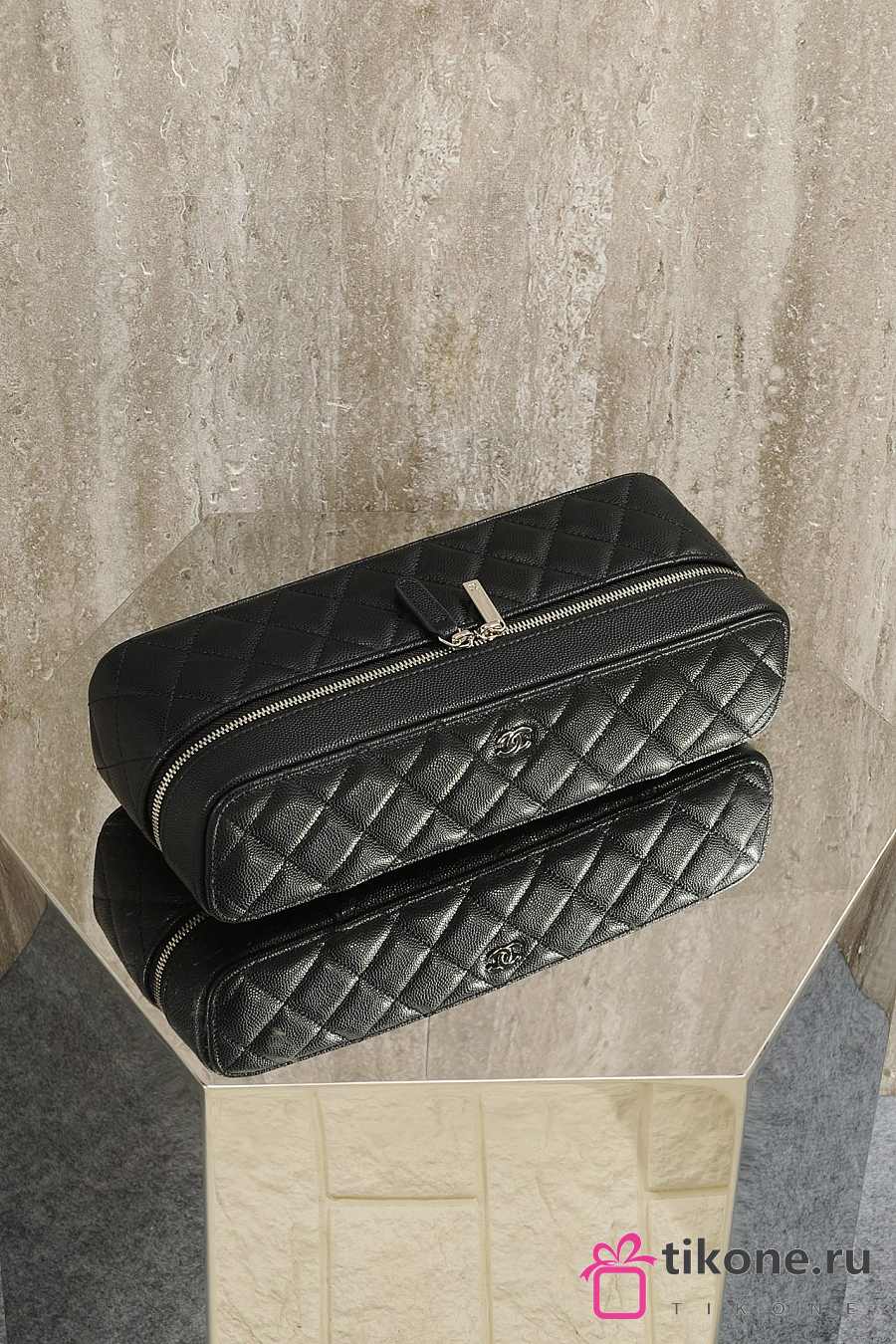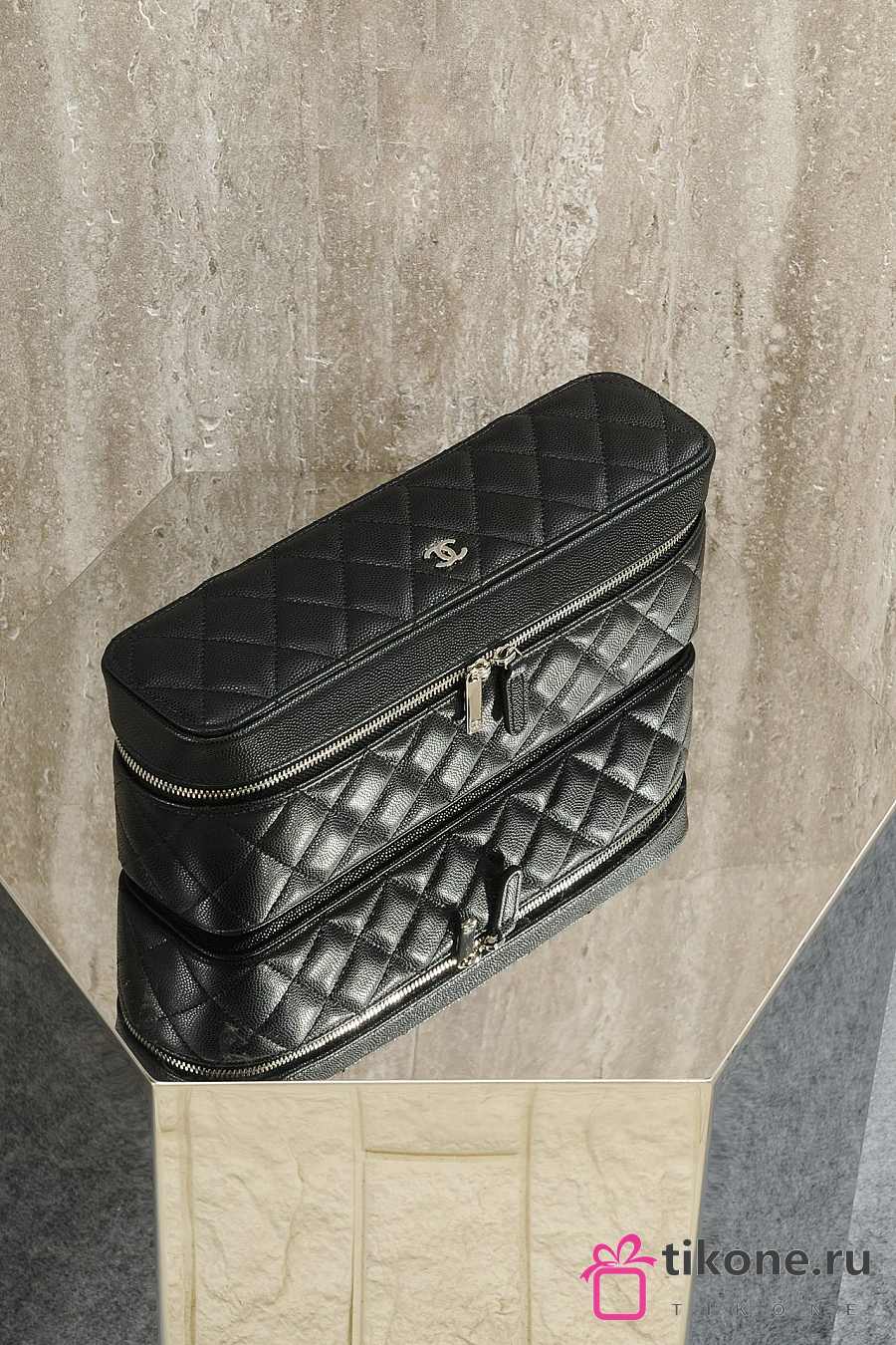 Chanel Zip Around Jewelry Case Quilted Caviar Mini Black - 26x10x7cm