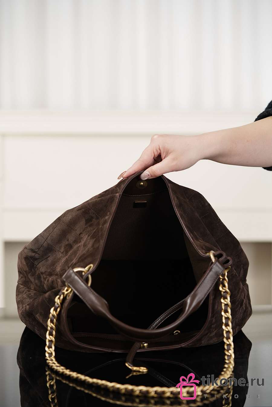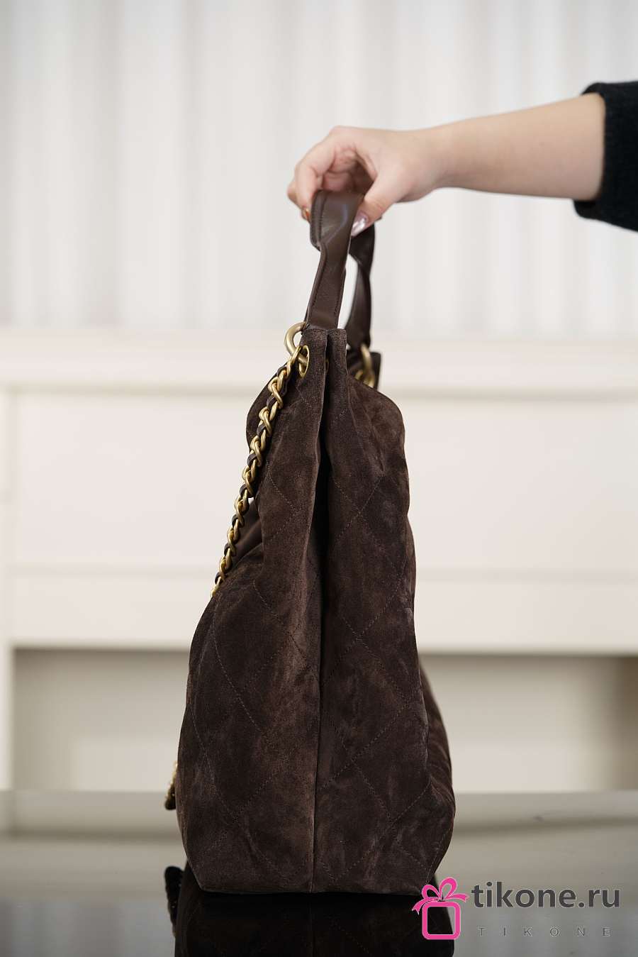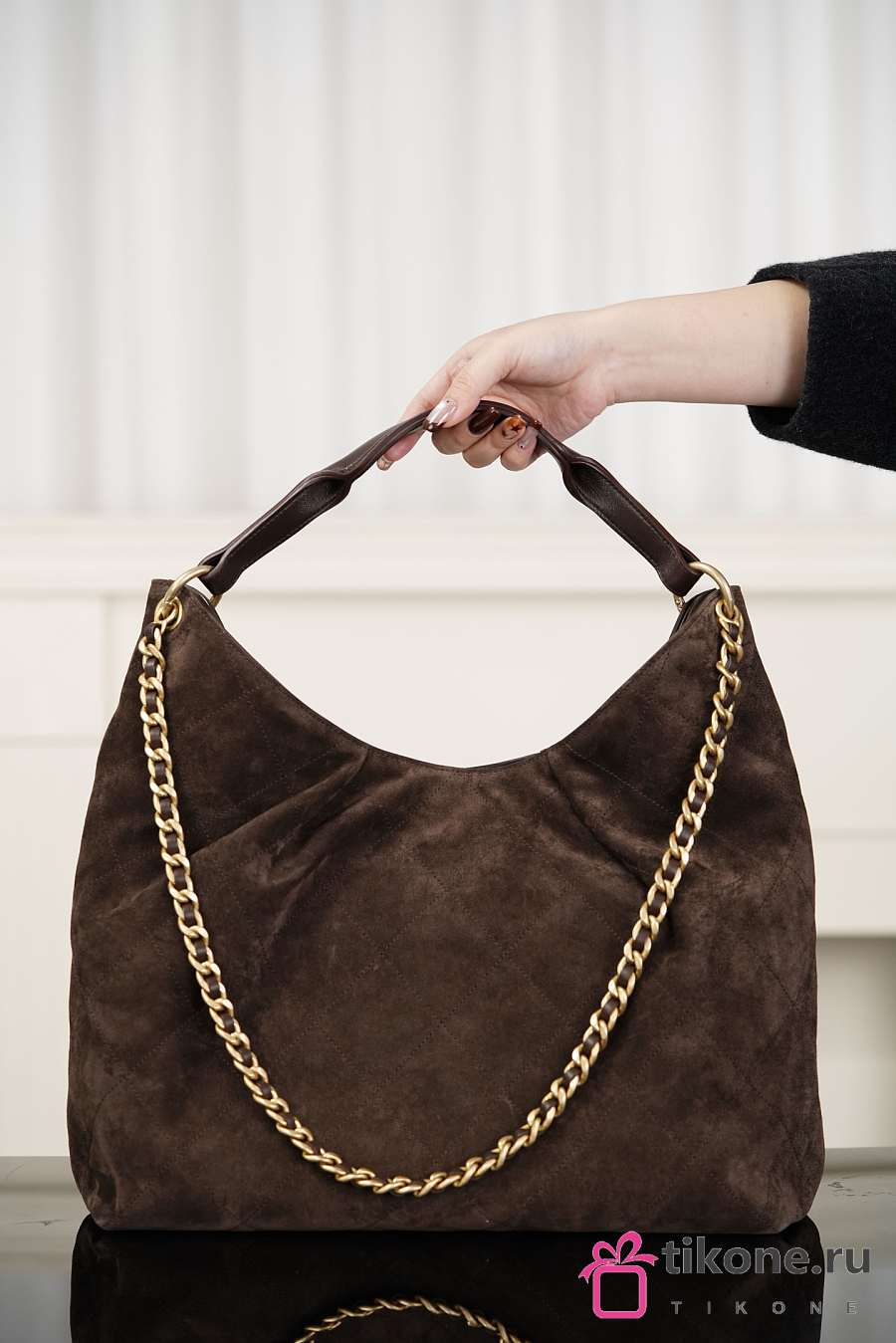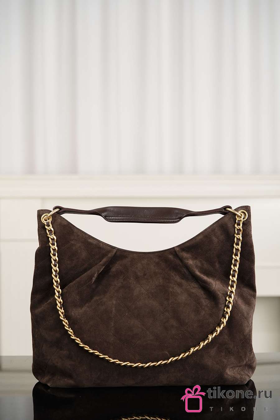 Chanhel Maxi Hobo Bag Suede Calfskin Lambskin & Gold-Tone Metal Dark Brown - 38x35x14cm