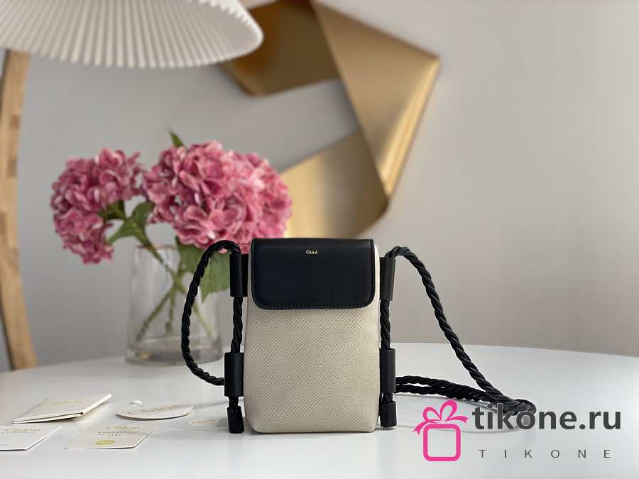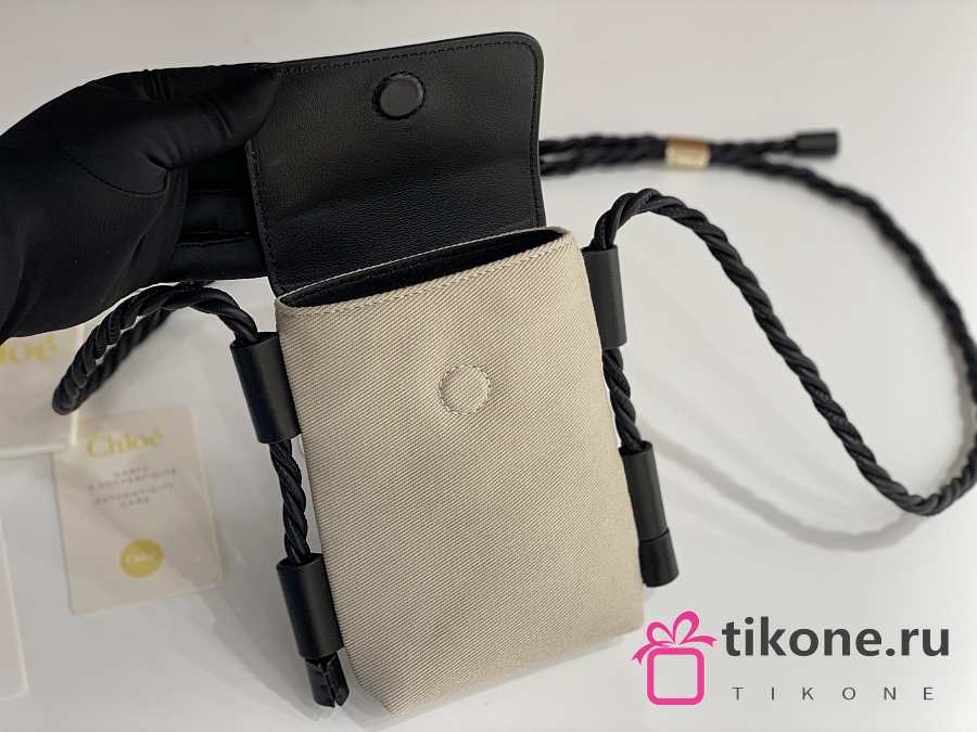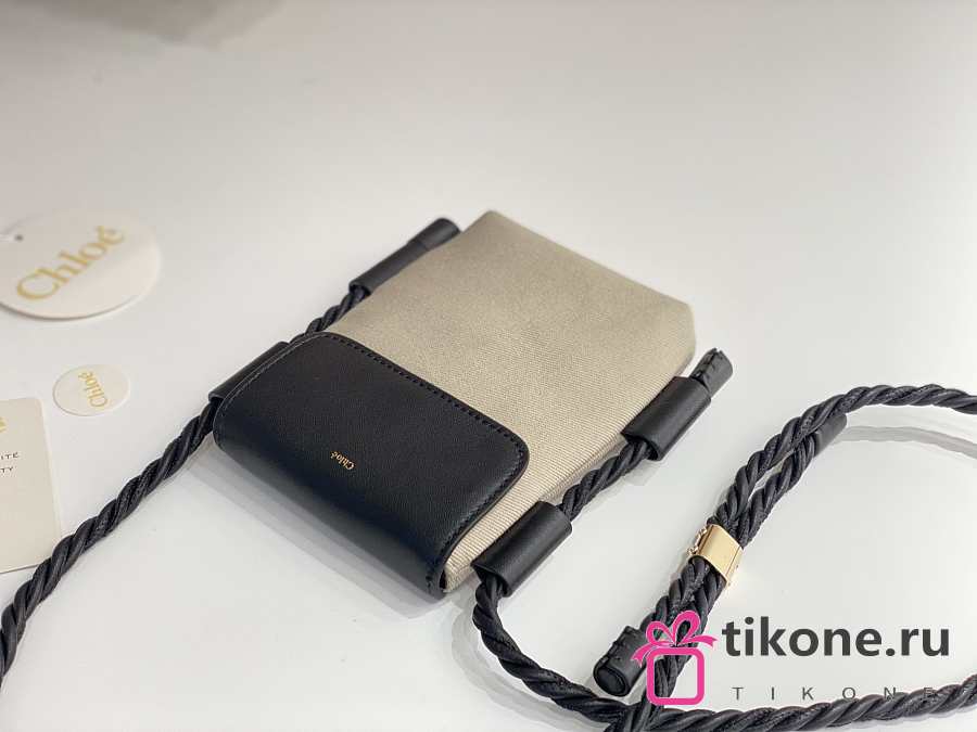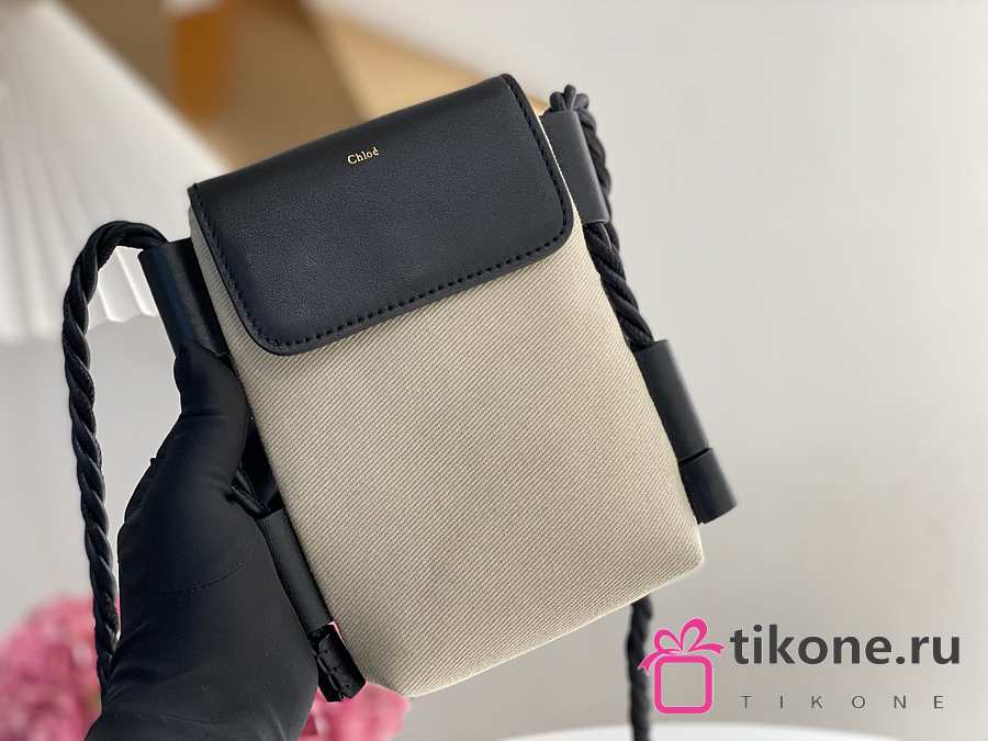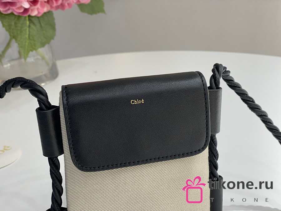 Chloe Key Phone Pouch in Canvas and Shiny Calfskin Leather Black - 13x3x18cm