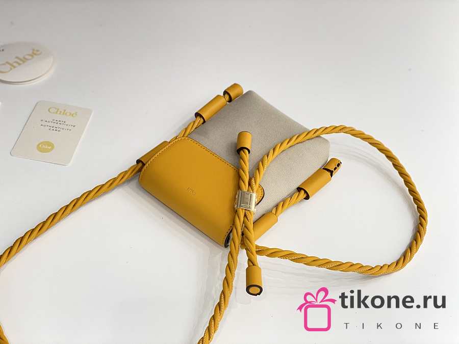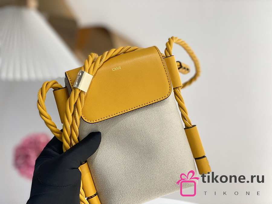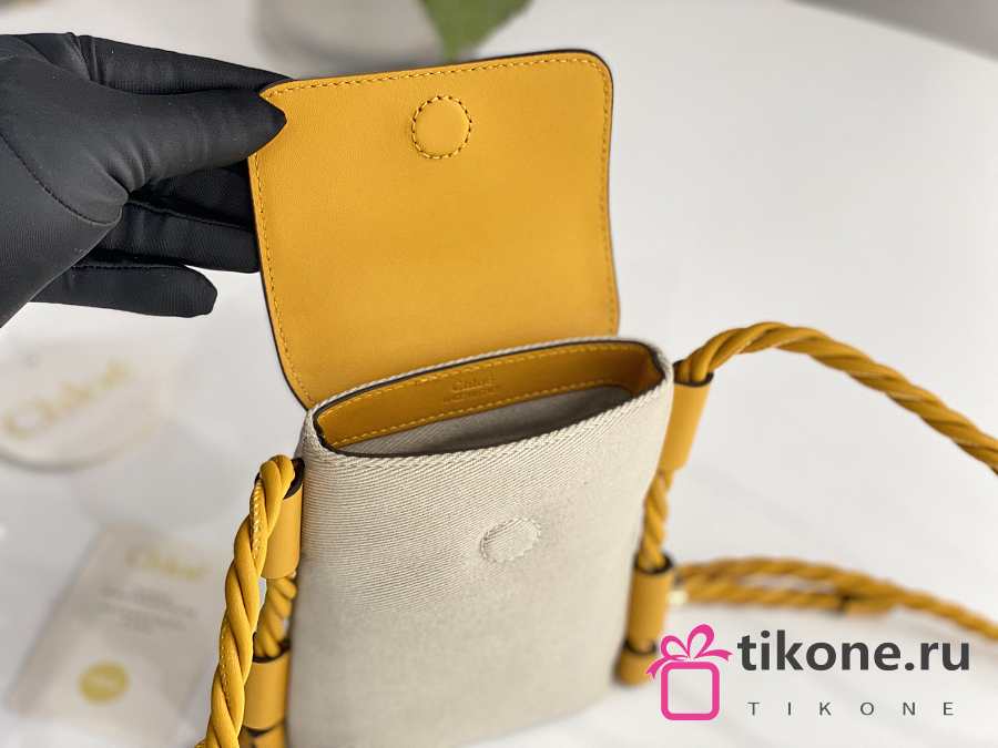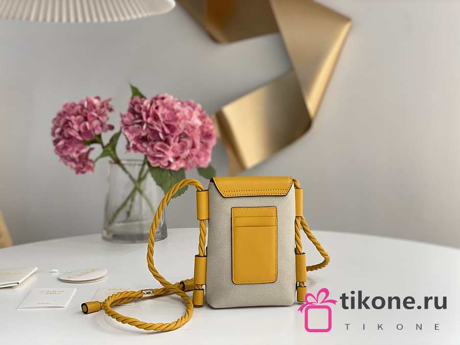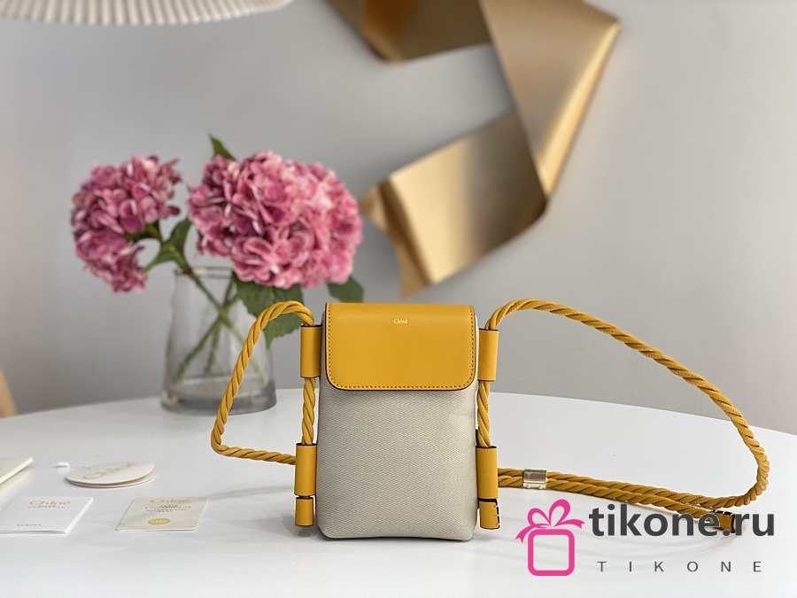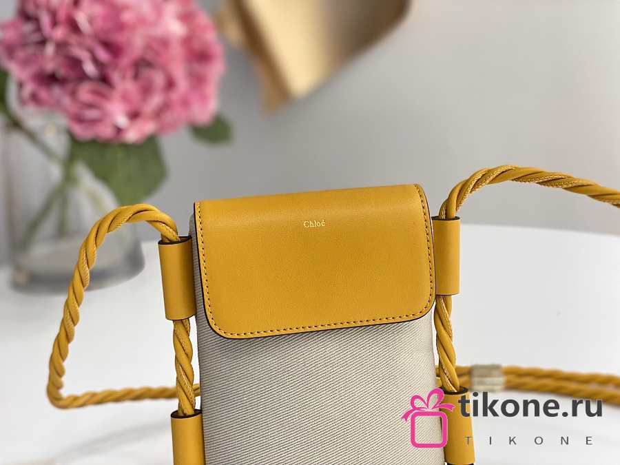 Chloe Key Phone Pouch in Canvas and Shiny Calfskin Leather Yellow - 13x3x18cm