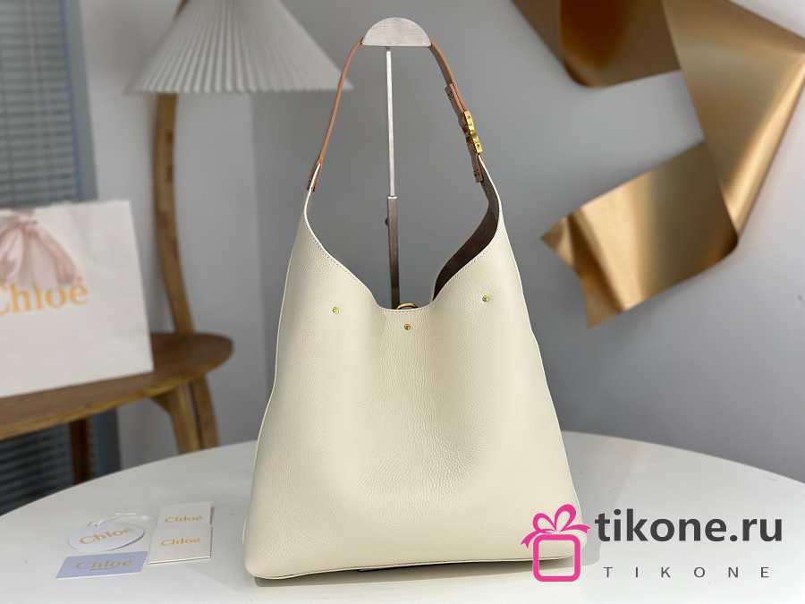 Chloe Marcie Hobo Bag In Grained Leather White - 36x29x10cm
