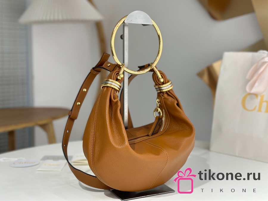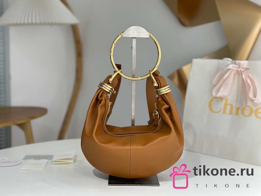Chloe Small Bracelet Hobo Bag in Grained Leather Brown - 32x14x10cm
