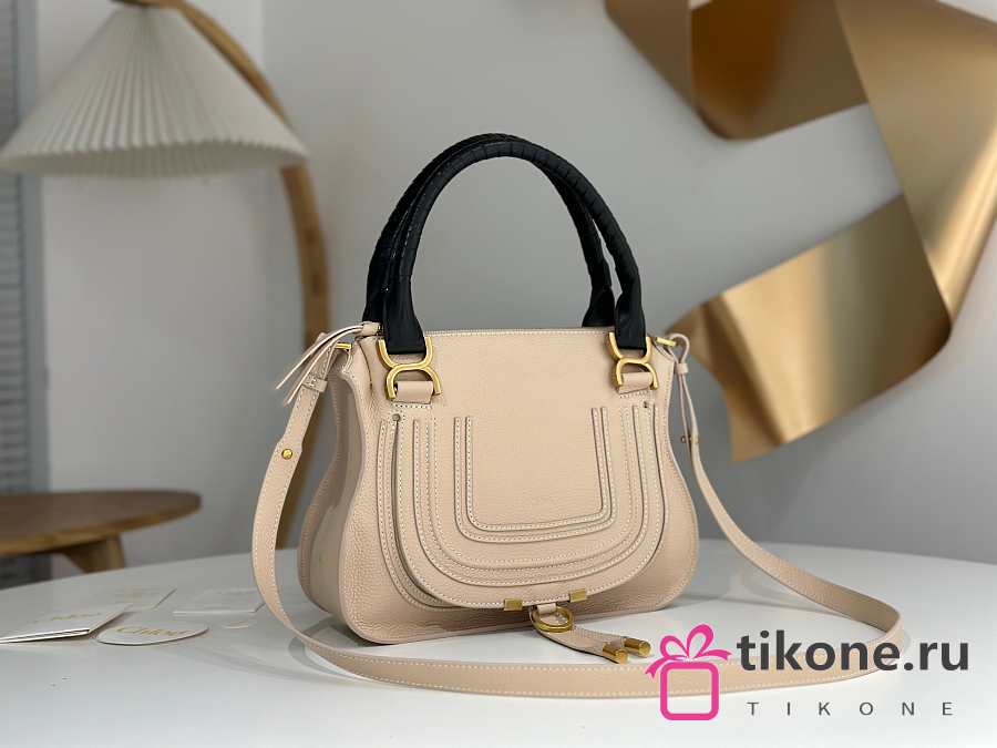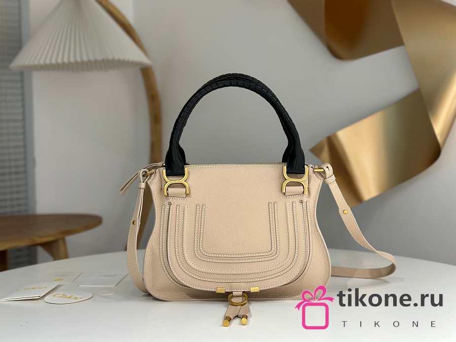 Chloe Small Marcie Bag In Calf Leather Beige and Black - 30x23x9cm