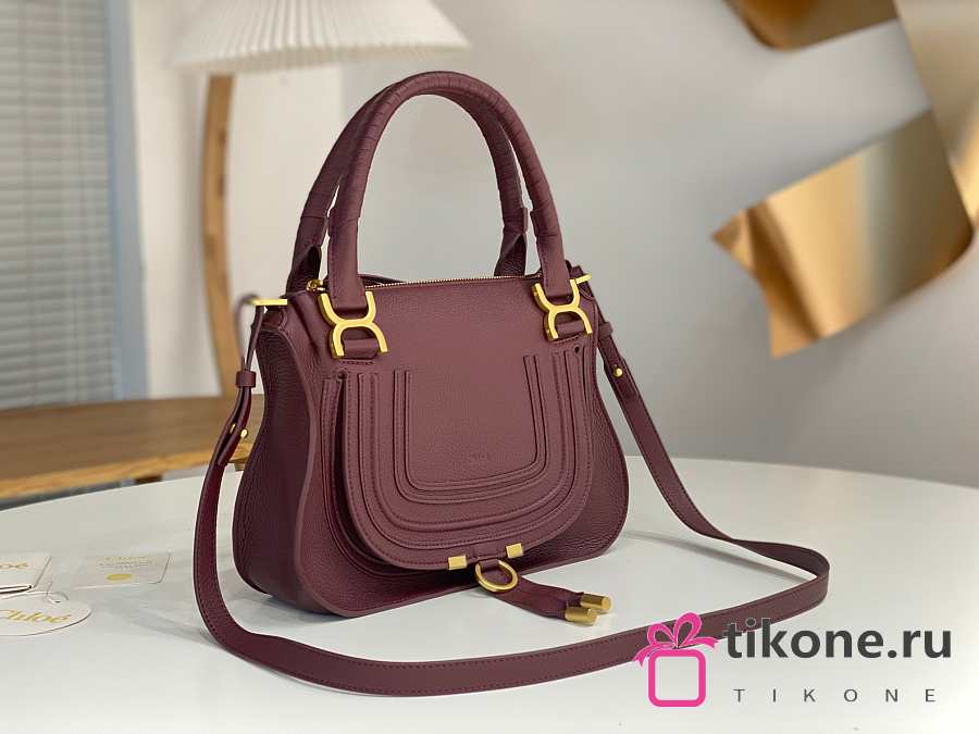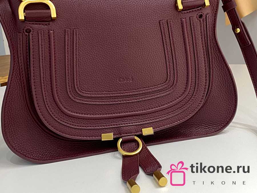 Chloe Small Marcie Bag In Grained Leather Burgundy - 30x23x9cm