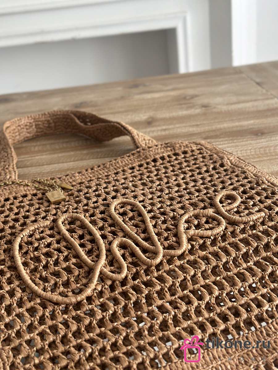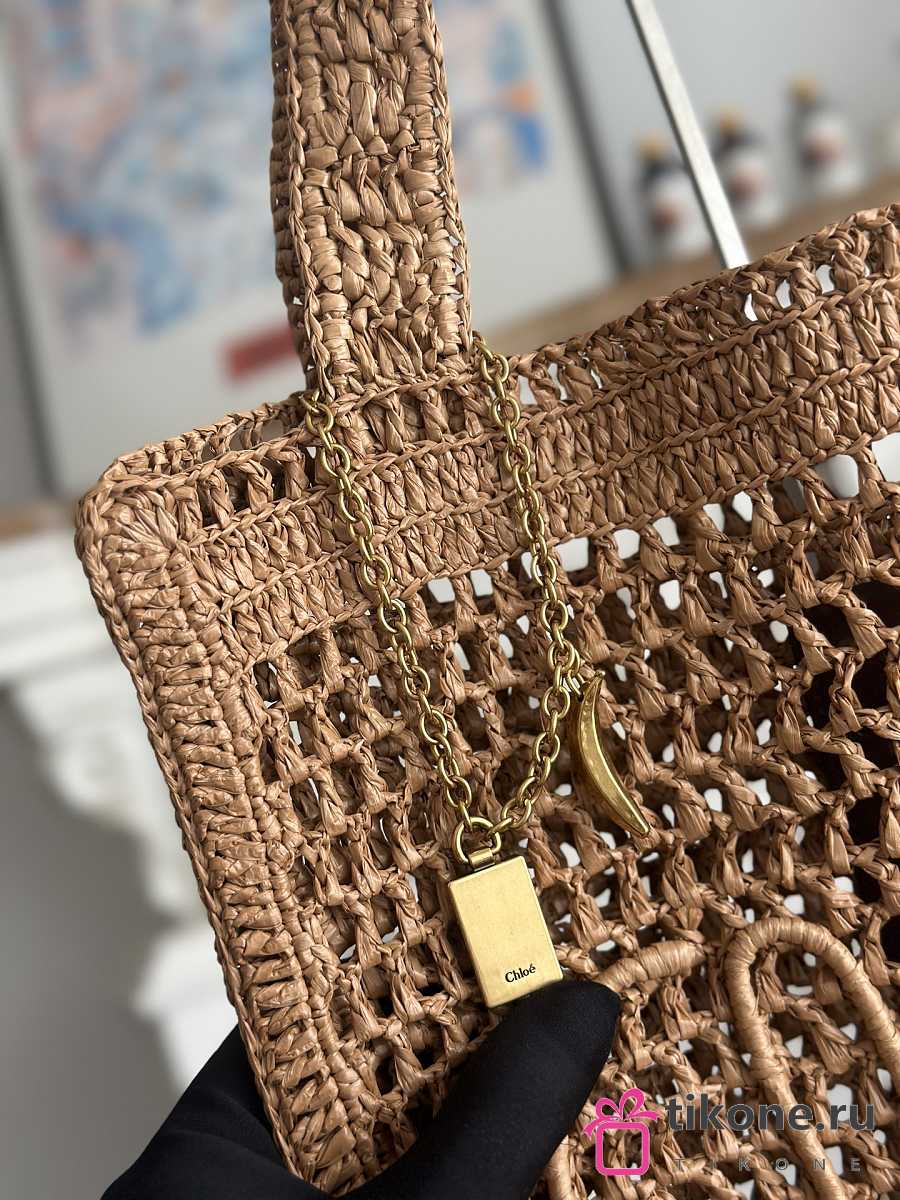 Chloe Summer Banana Tote Bag In Raffia Beige - 37x33x2cm