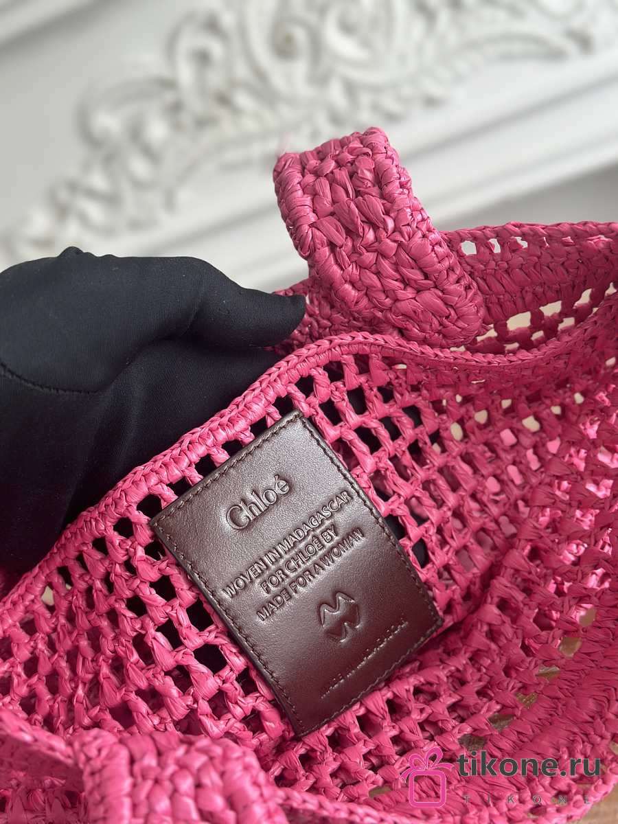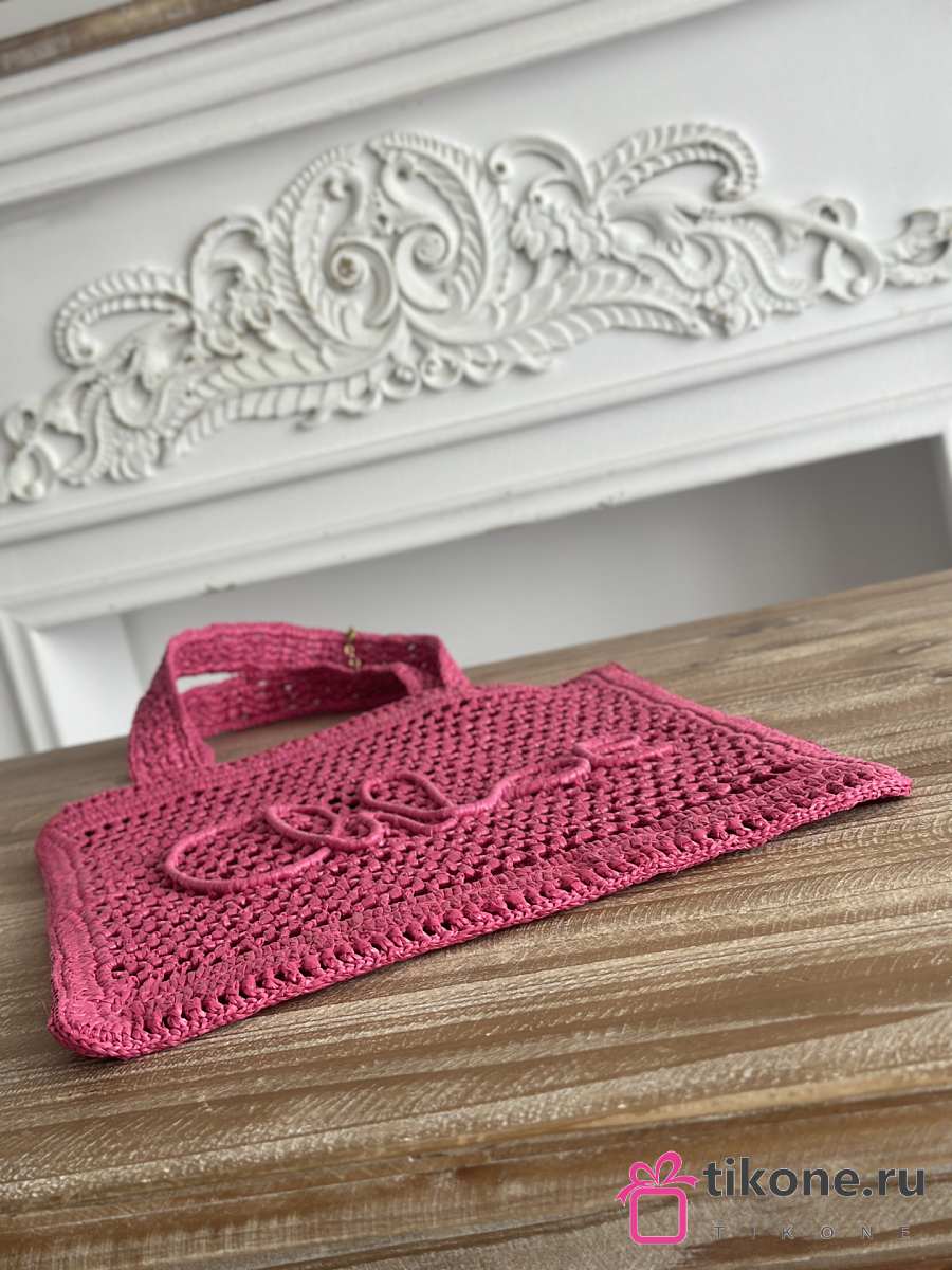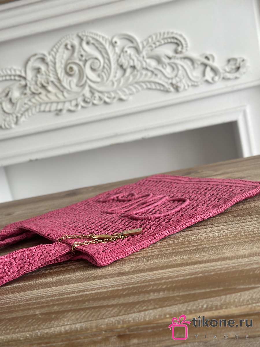 Chloe Summer Banana Tote Bag In Raffia Pink - 37x33x2cm