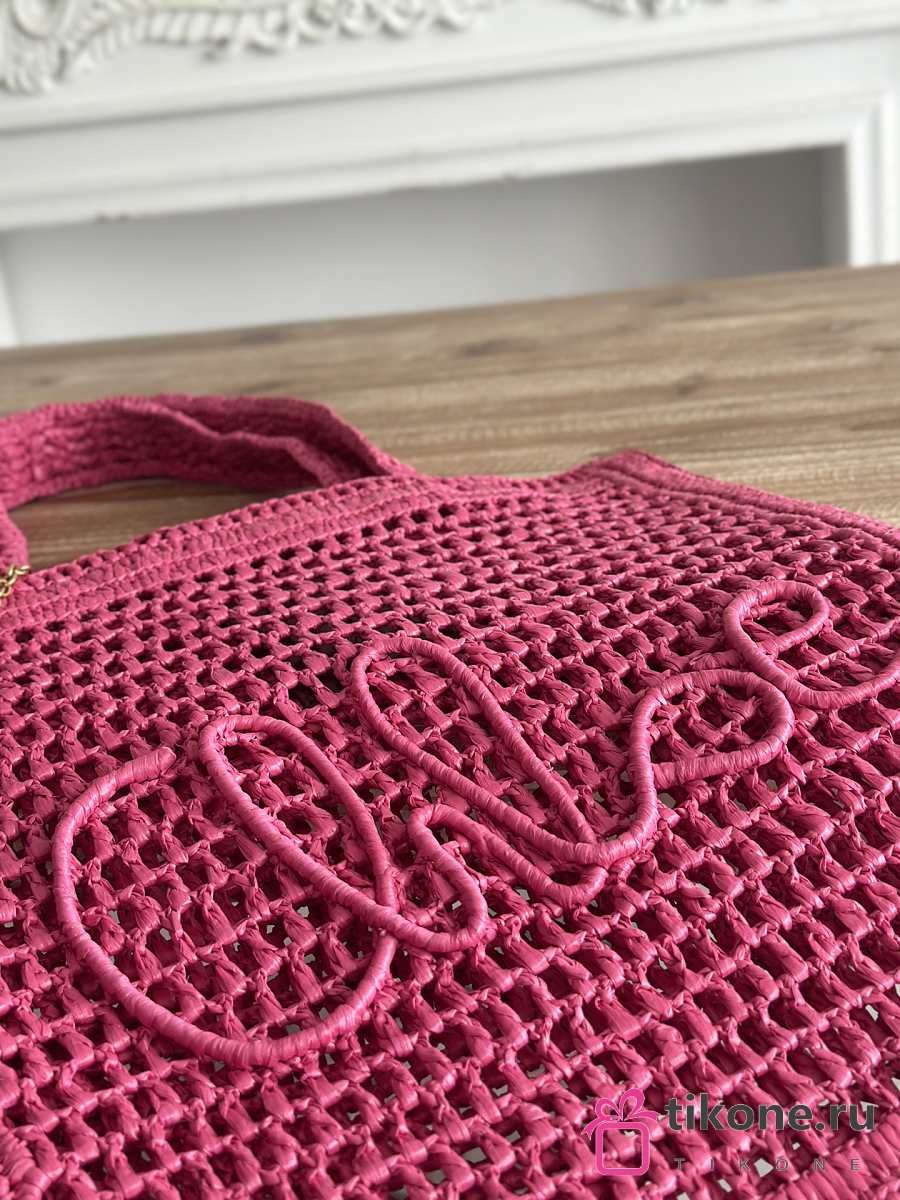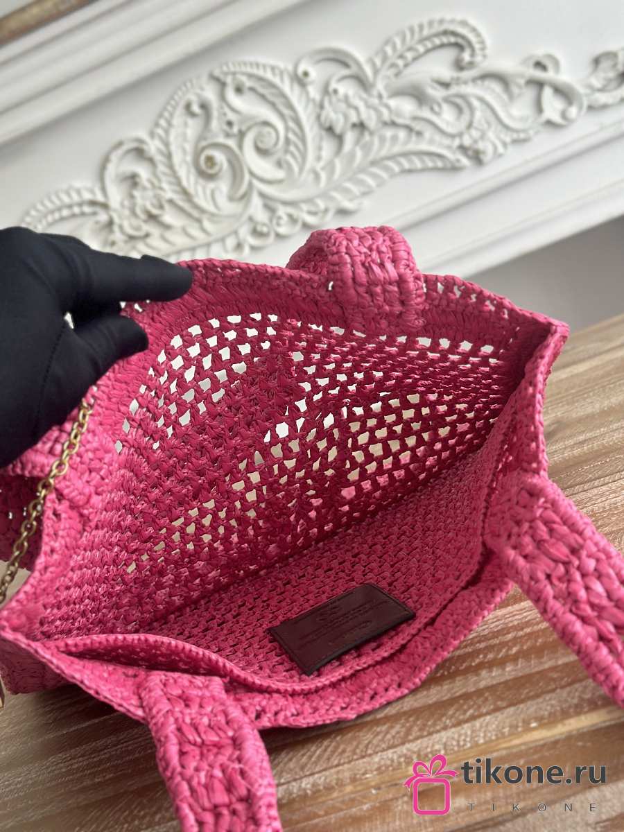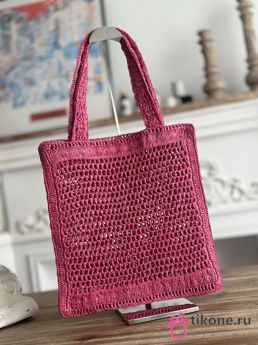 Chloe Summer Banana Tote Bag In Raffia Pink - 37x33x2cm