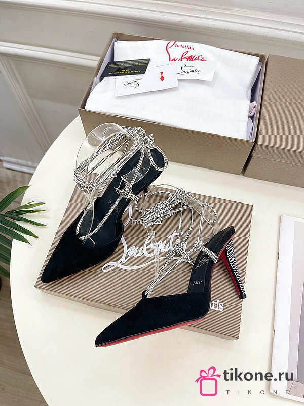 Christian Louboutin Astrid 85mm Strass Lace-up Pumps Velvet Black