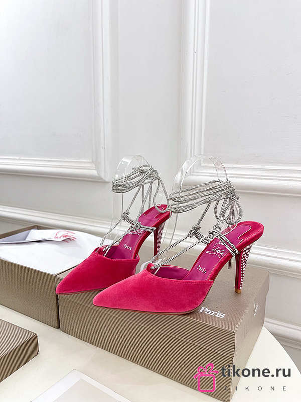 Christian Louboutin Astrid 85mm Strass Lace-up Pumps Velvet Pink