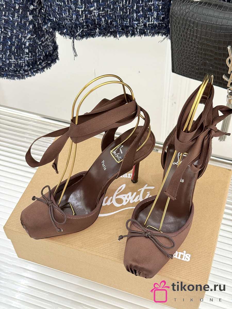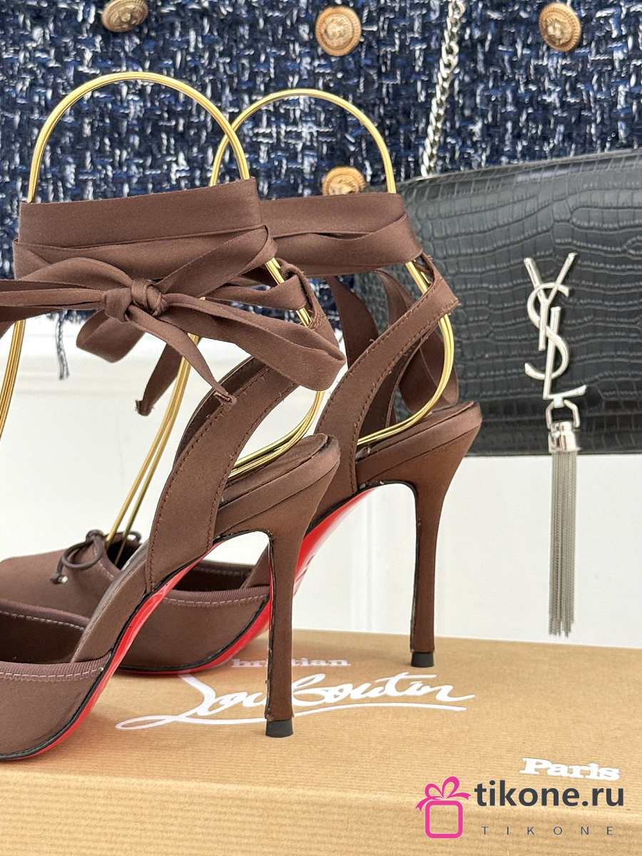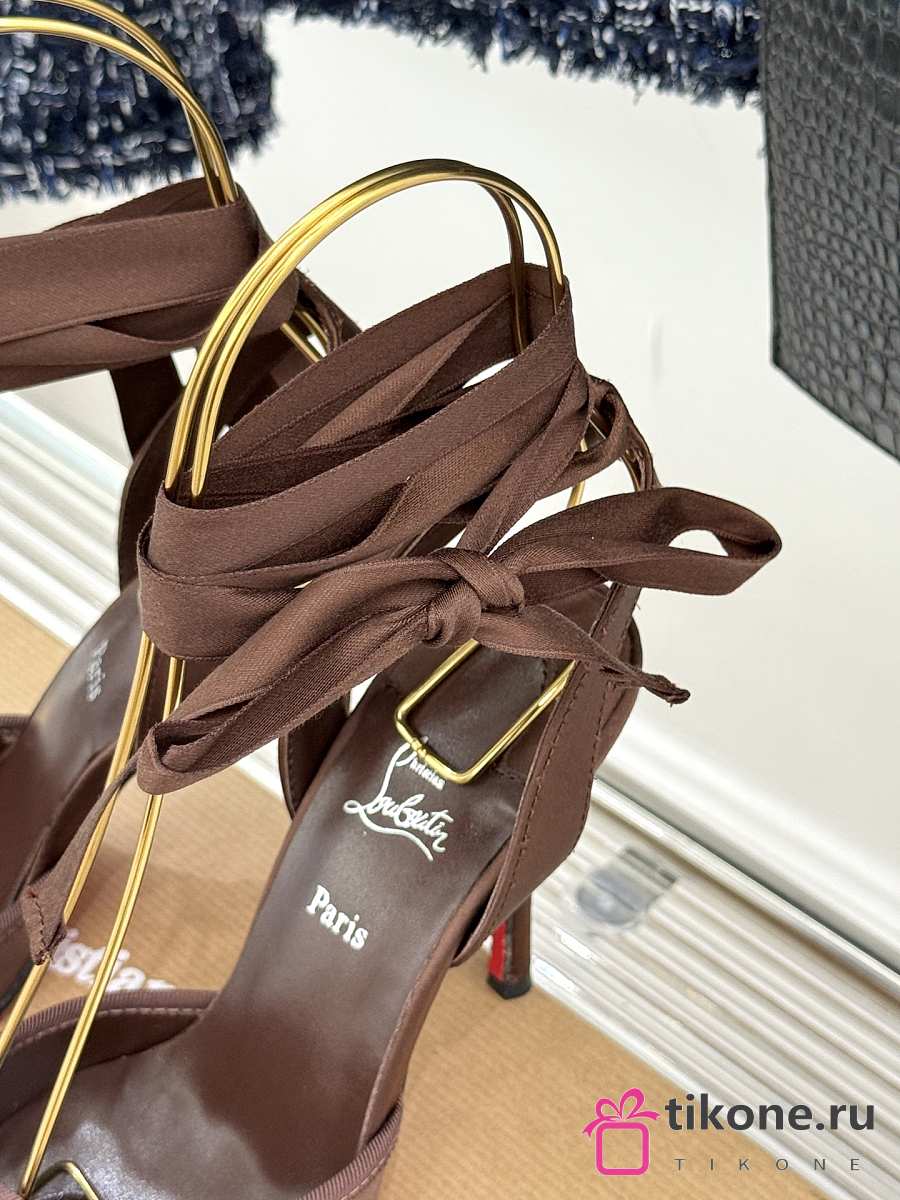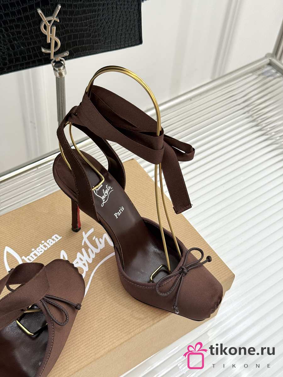 Christian Louboutin Cassia Lace Up 100mm Strappy Pumps Crepe Satin Dark Brown
