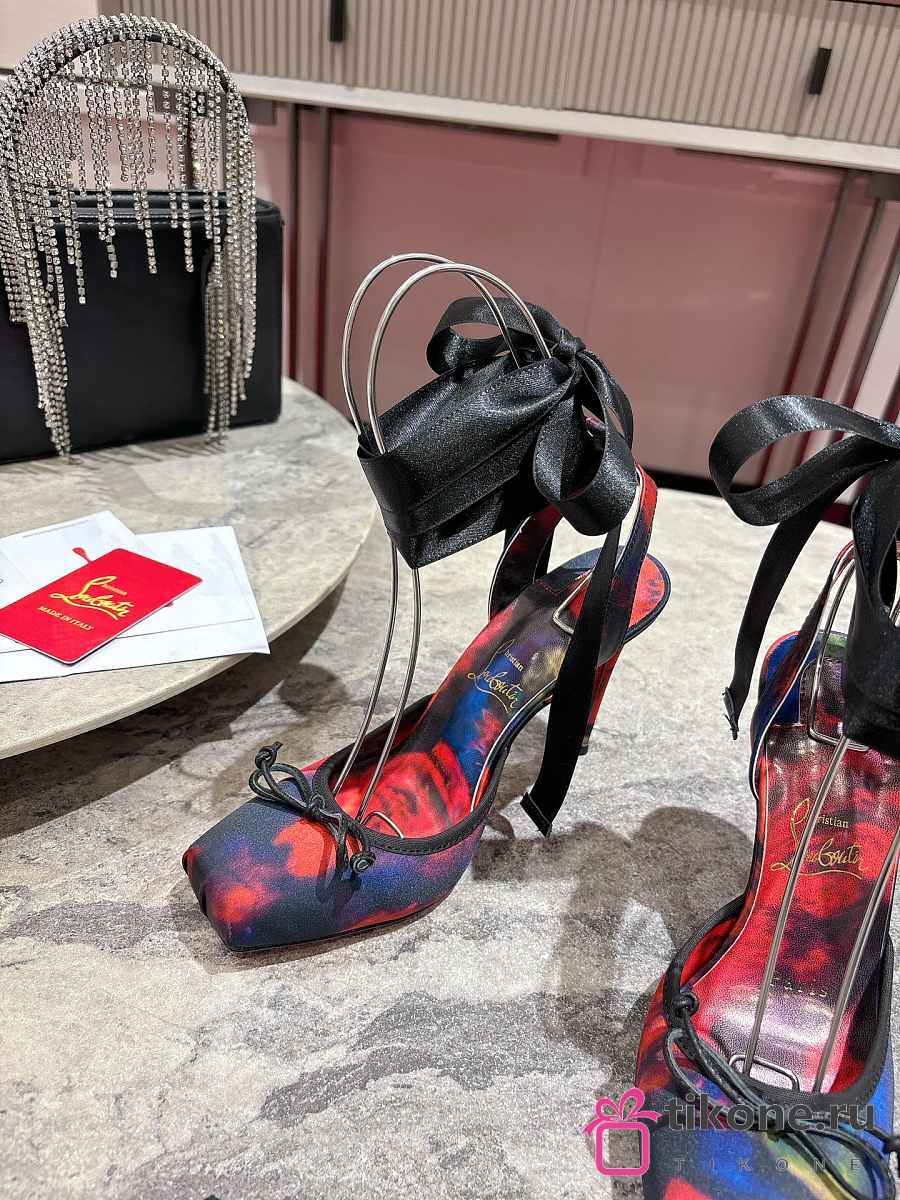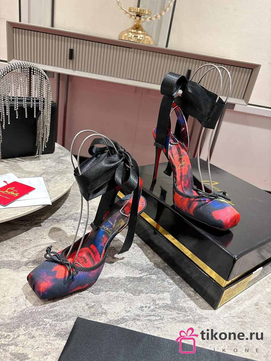 Christian Louboutin Crepe Satin Roses Cassia Lace Up 100 Pumps Multicolor