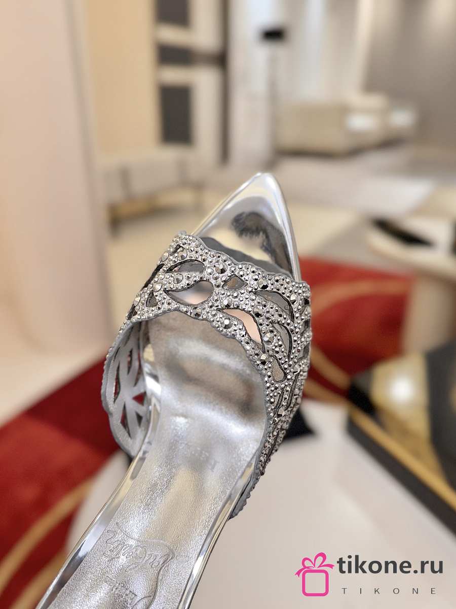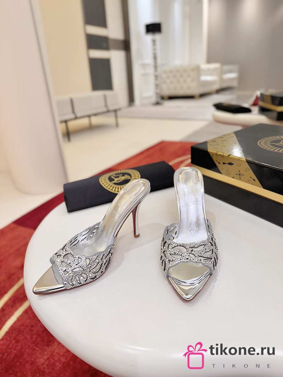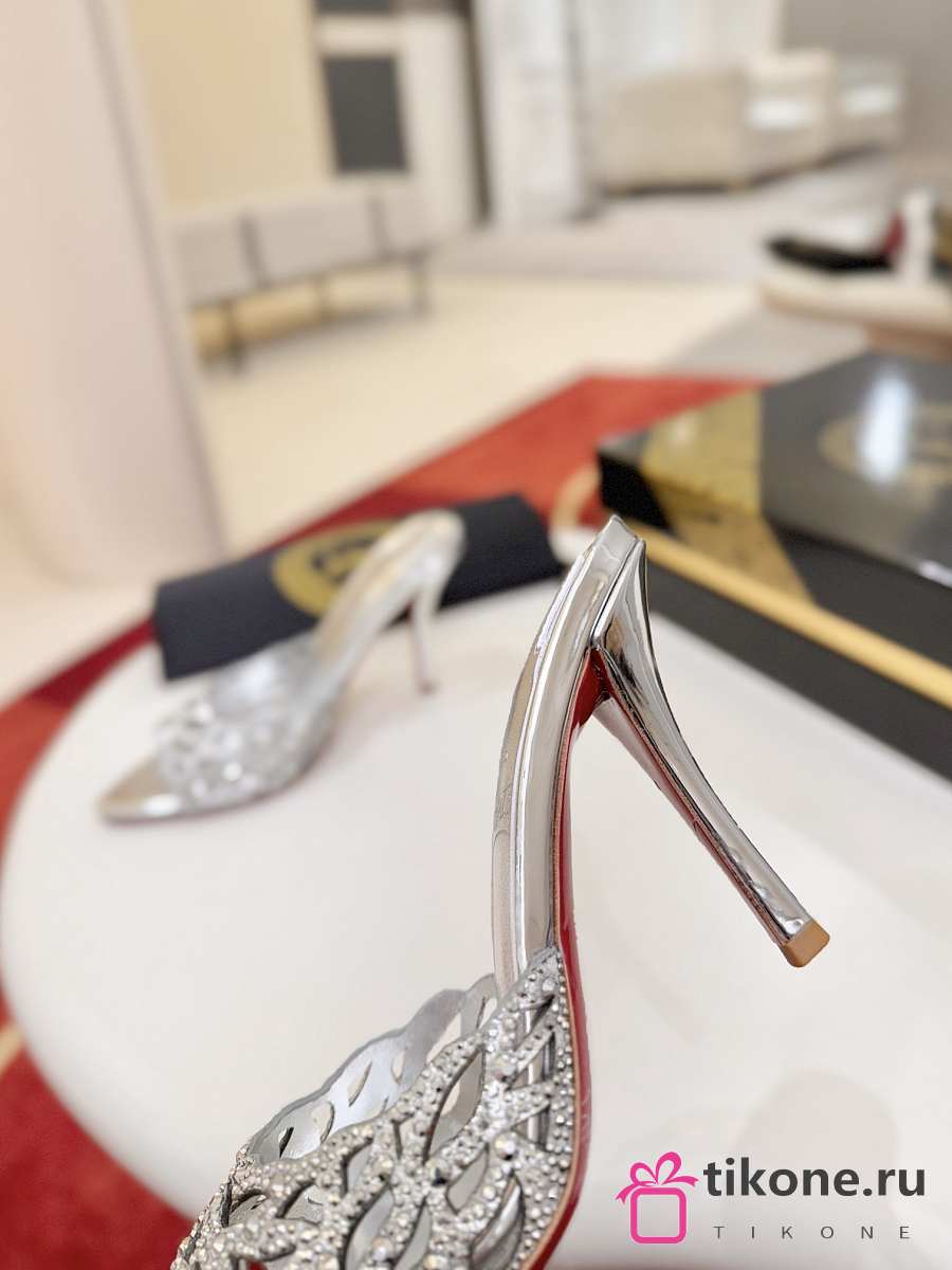 Christian Louboutin Lasera Strass Mule 100mm Sandals Metallic Silver