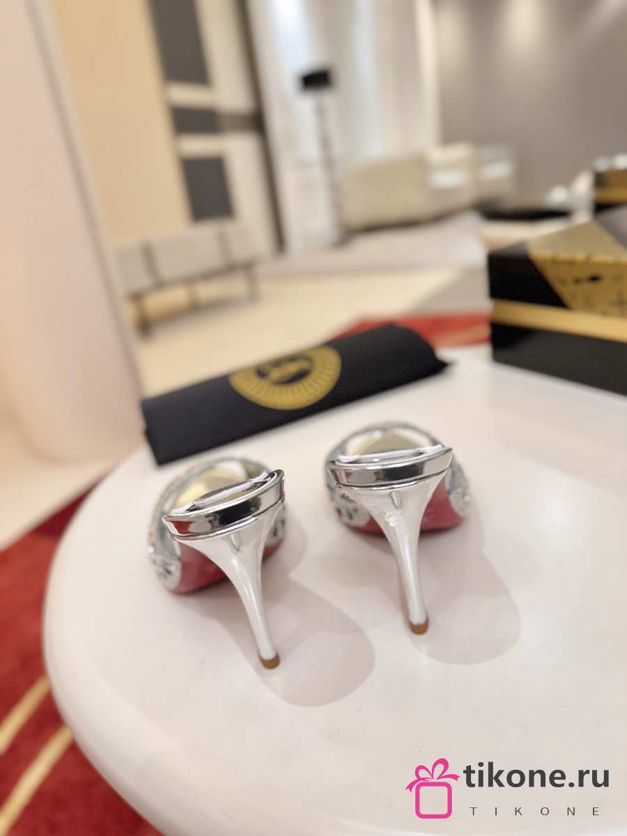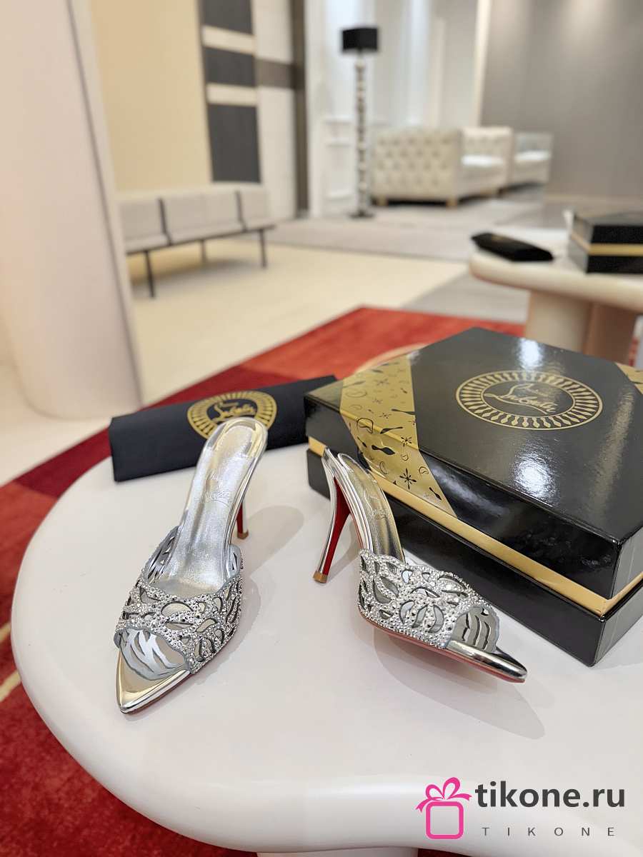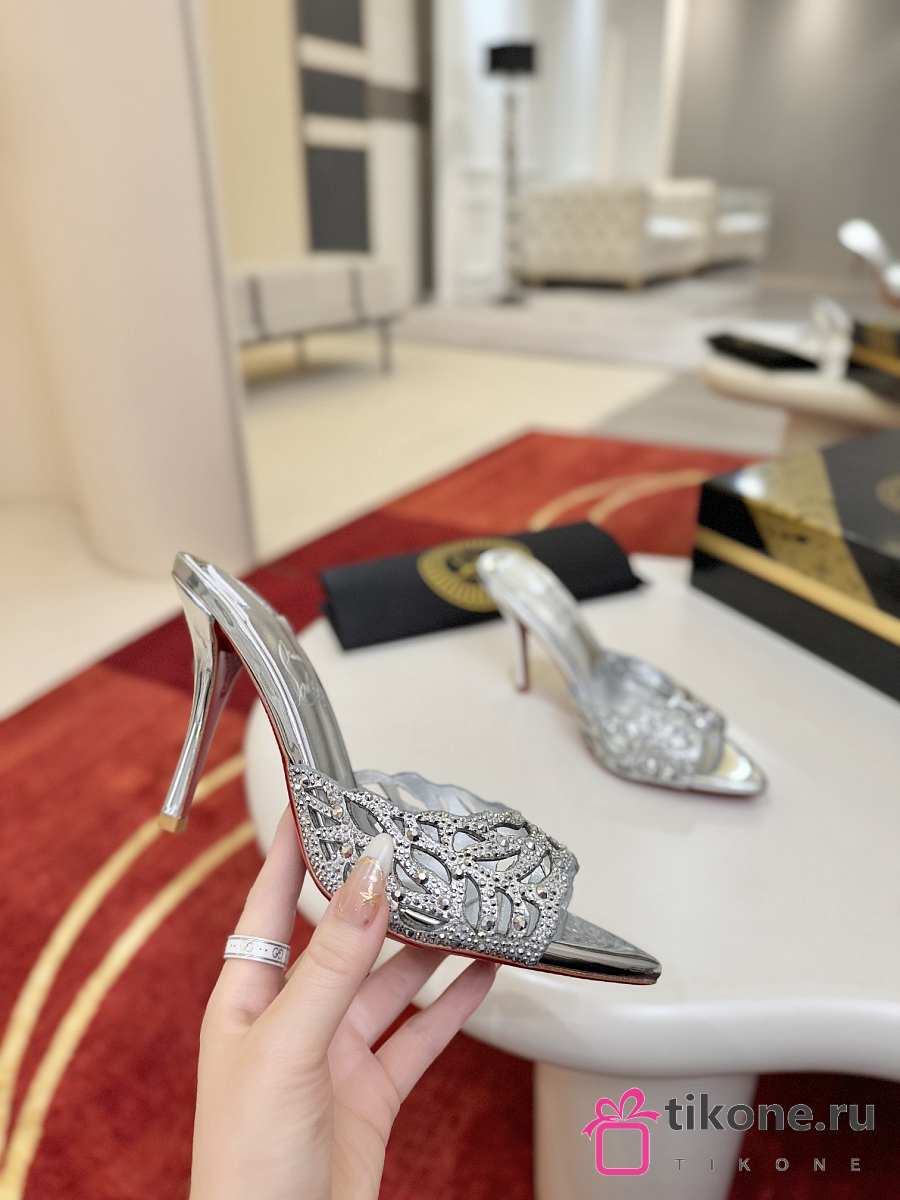 Christian Louboutin Lasera Strass Mule 100mm Sandals Metallic Silver