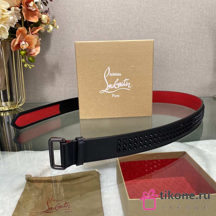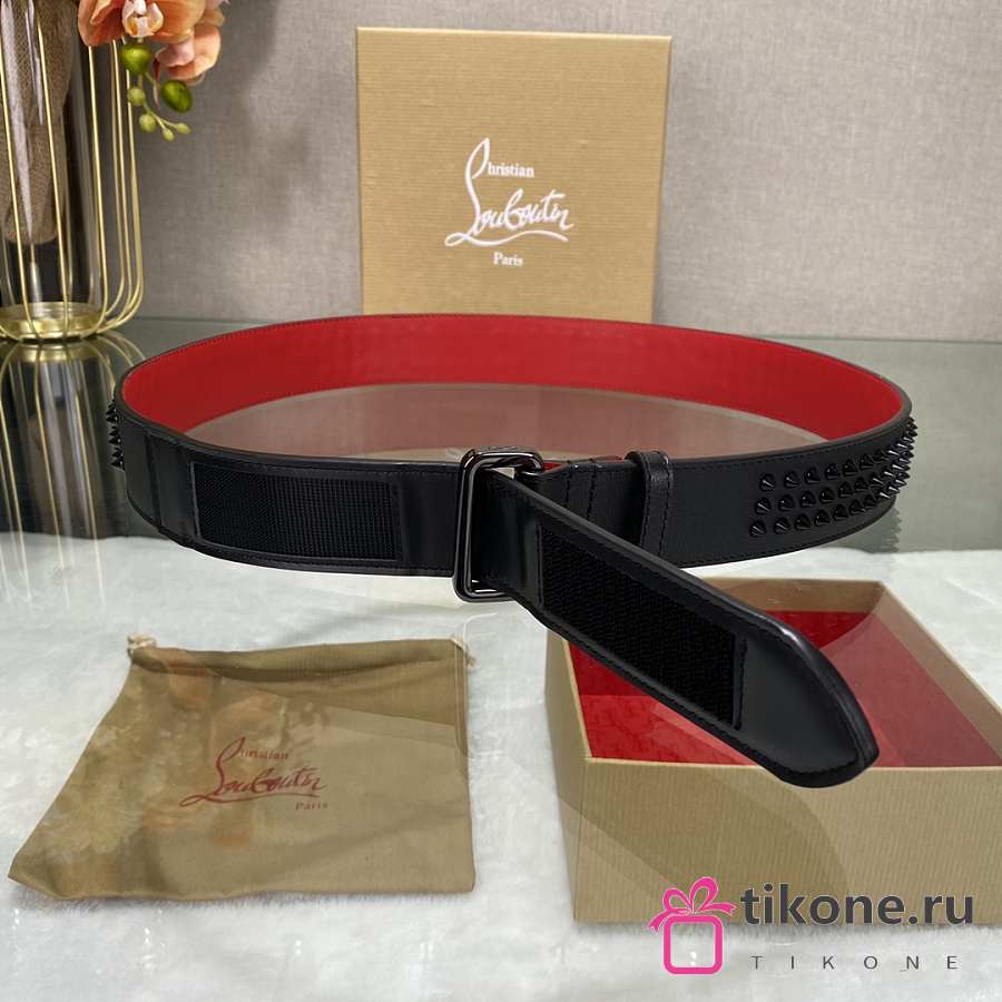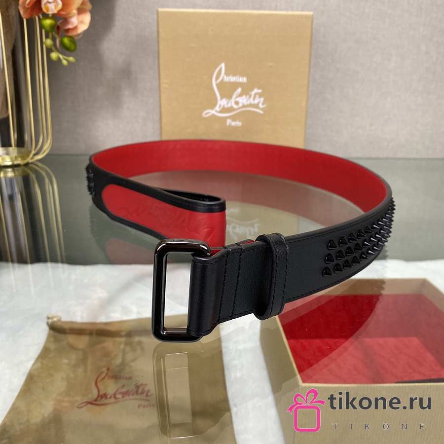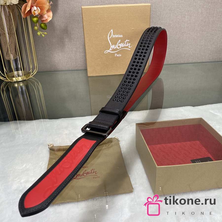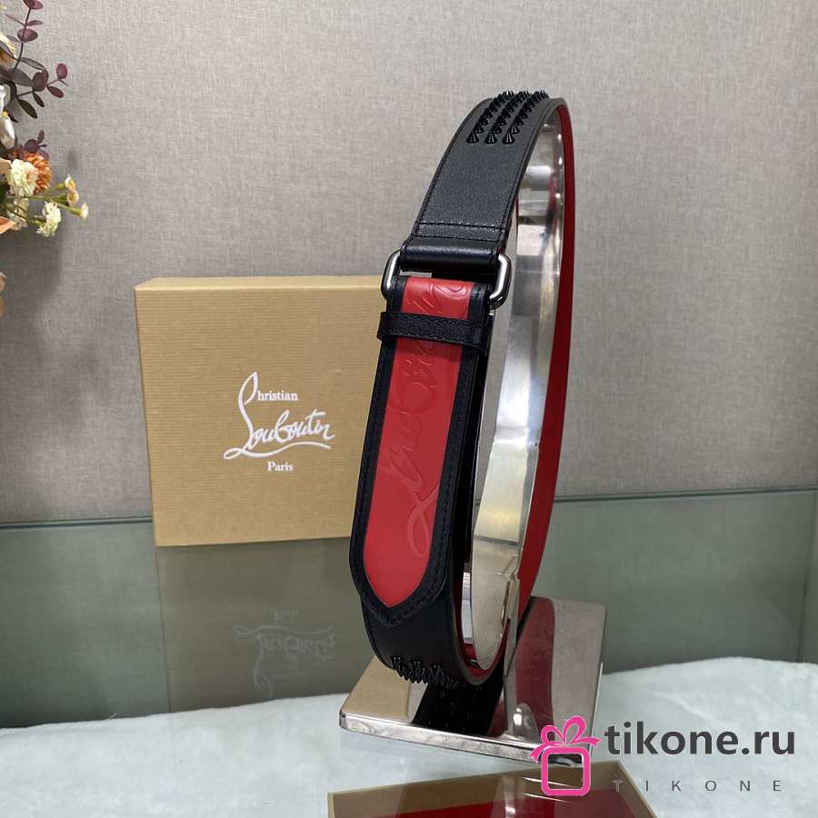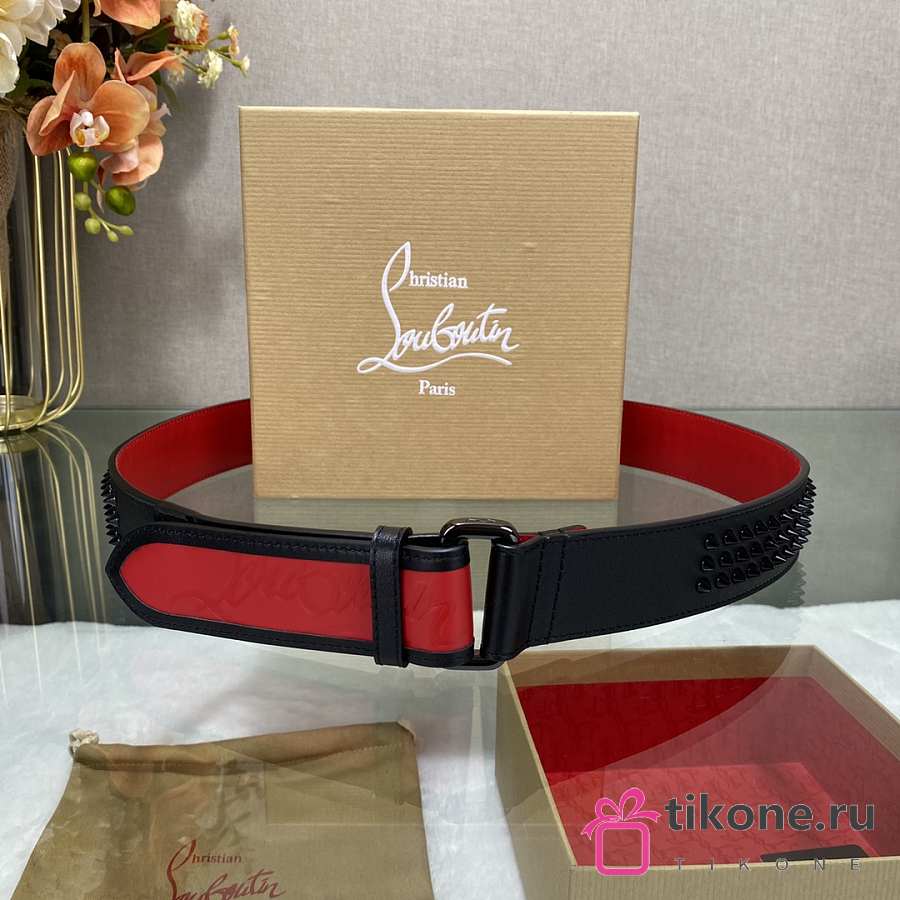 Christian Louboutin Loubi Belt Calf Leather And Spikes Black/ Red 4cm