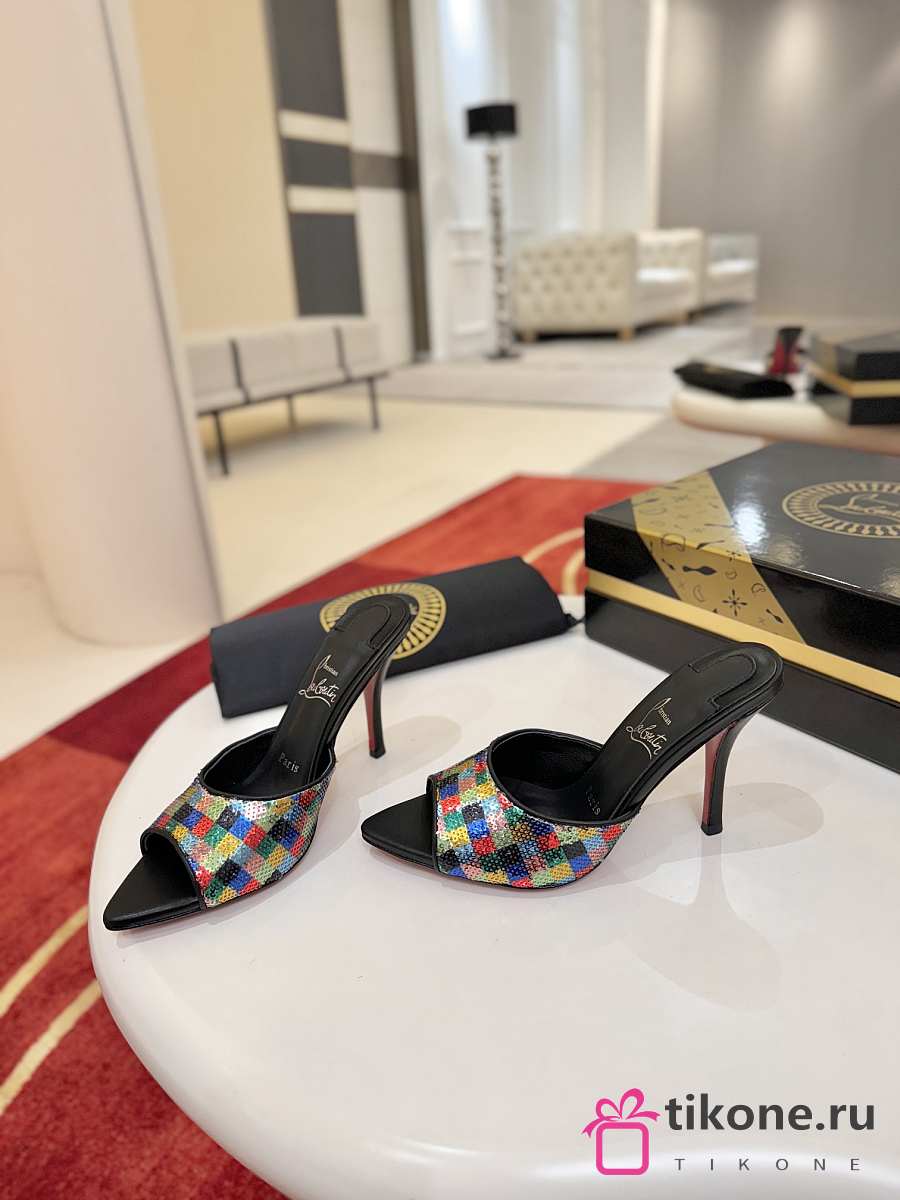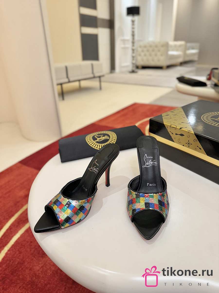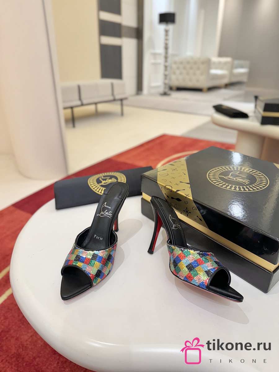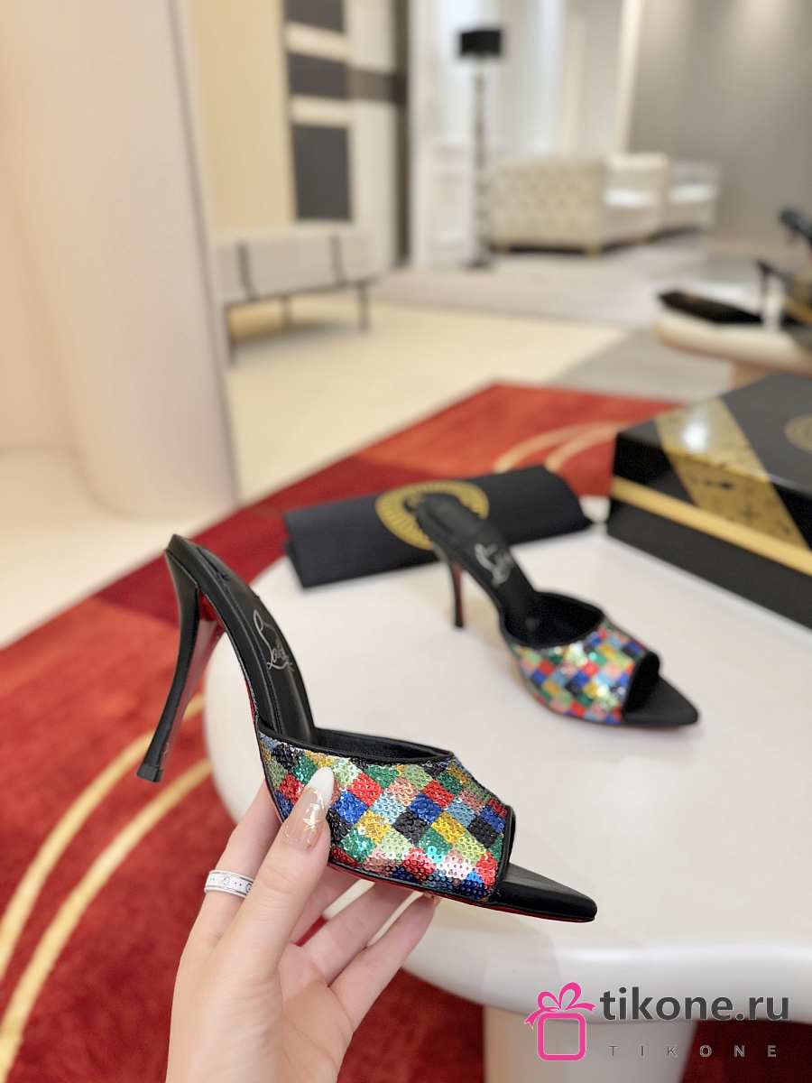 Christian Louboutin Miss Z Mule Arlequin 80mm Mules Micro-Sequins Embroidered Crepe Satin Multicolor