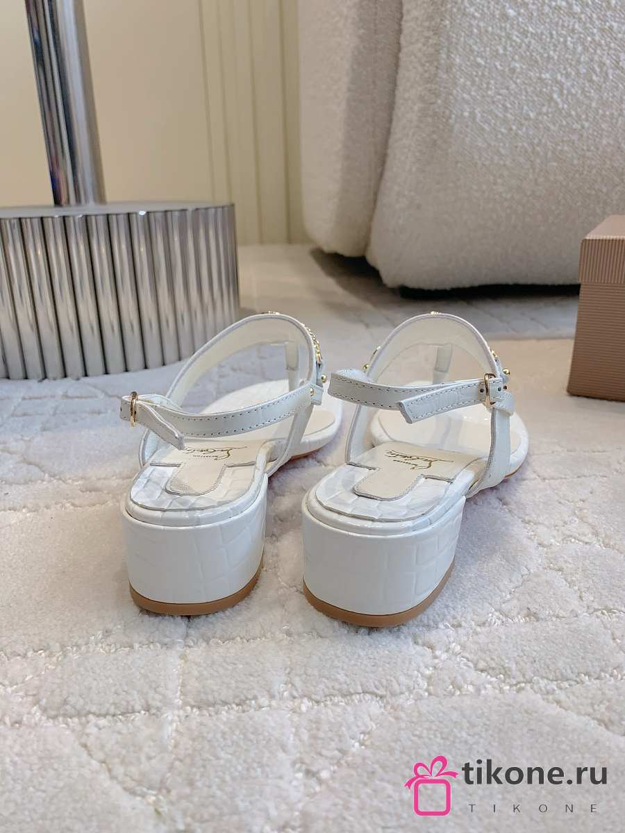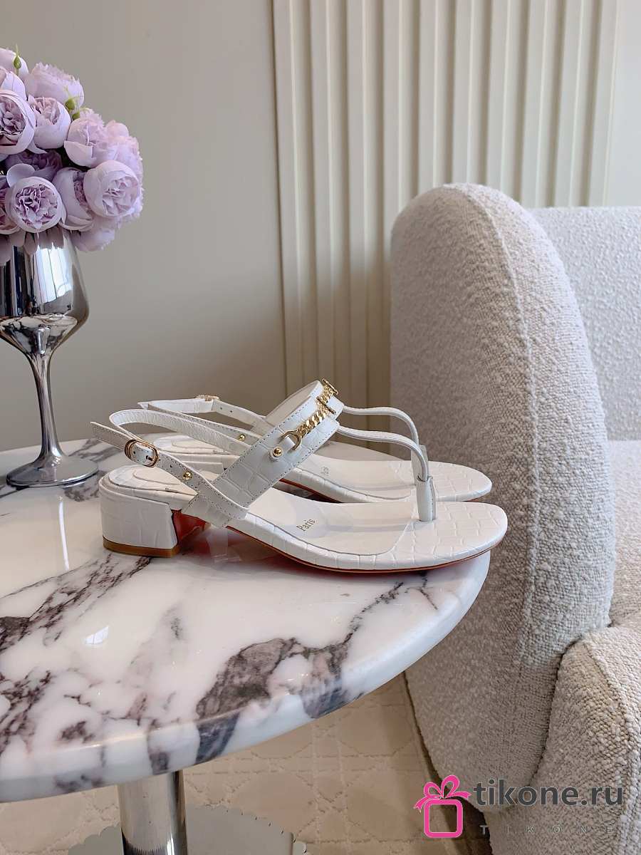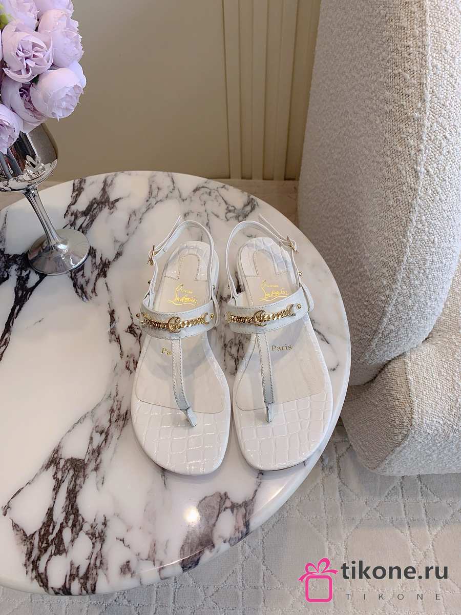 Christian Louboutin MJ Thong Croc-Effect Leather Sandals White