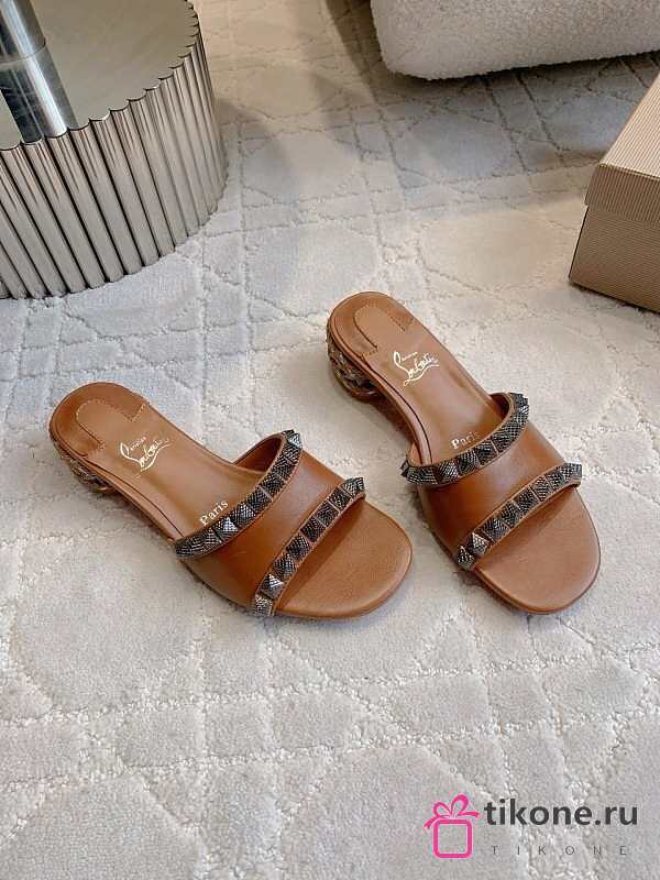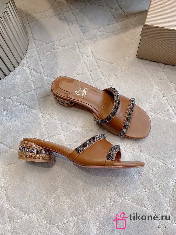 Christian Louboutin Pyramule 30mm Mules Waxed Calf Leather Brown
