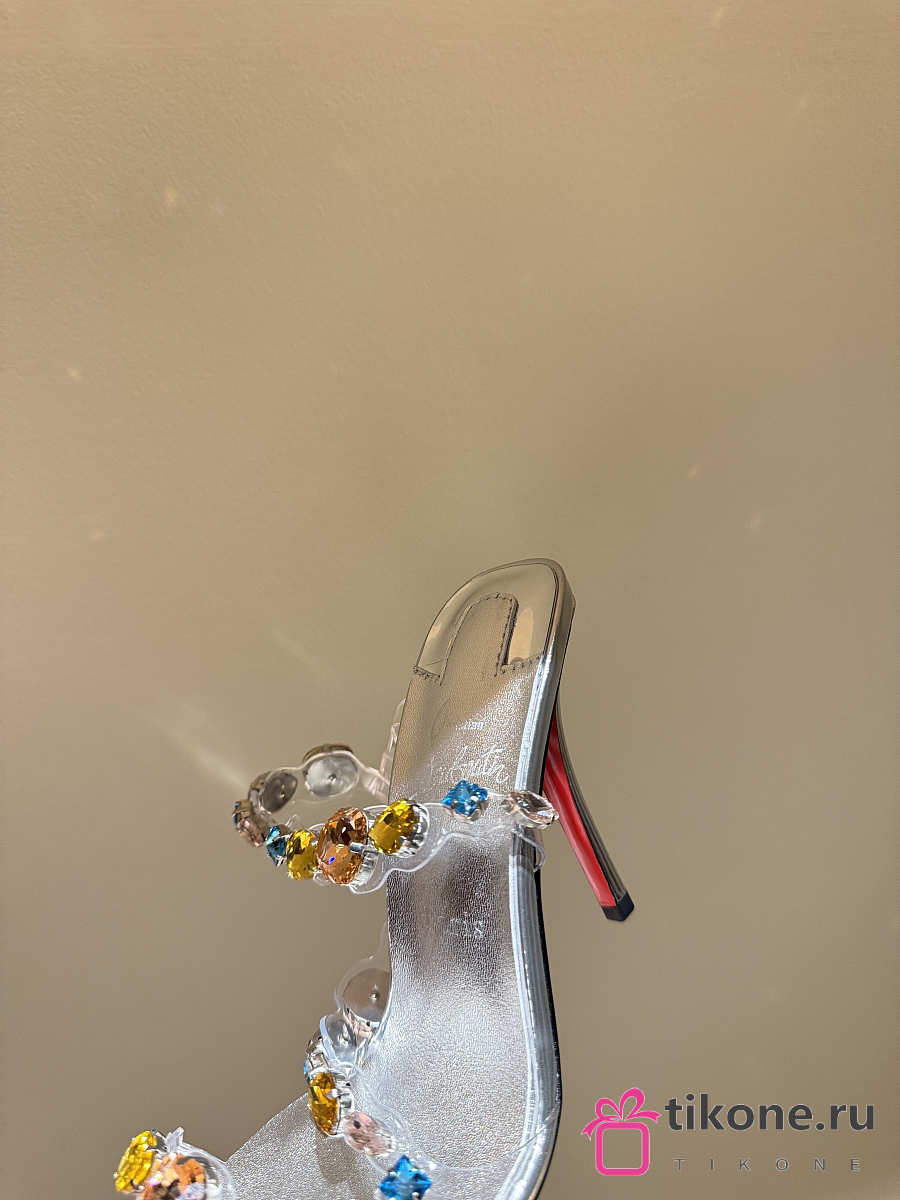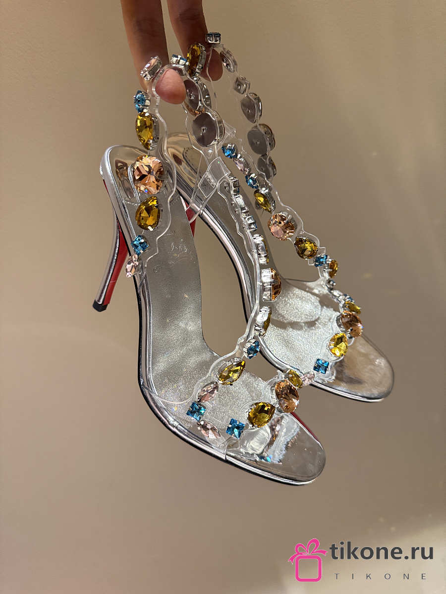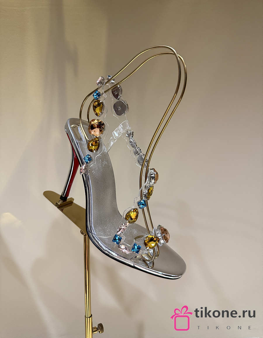 Christian Louboutin Rosa Z Jewel 10mm Sandals TPU Strass And Laminated Calf Leather Silver