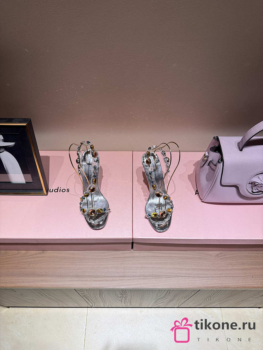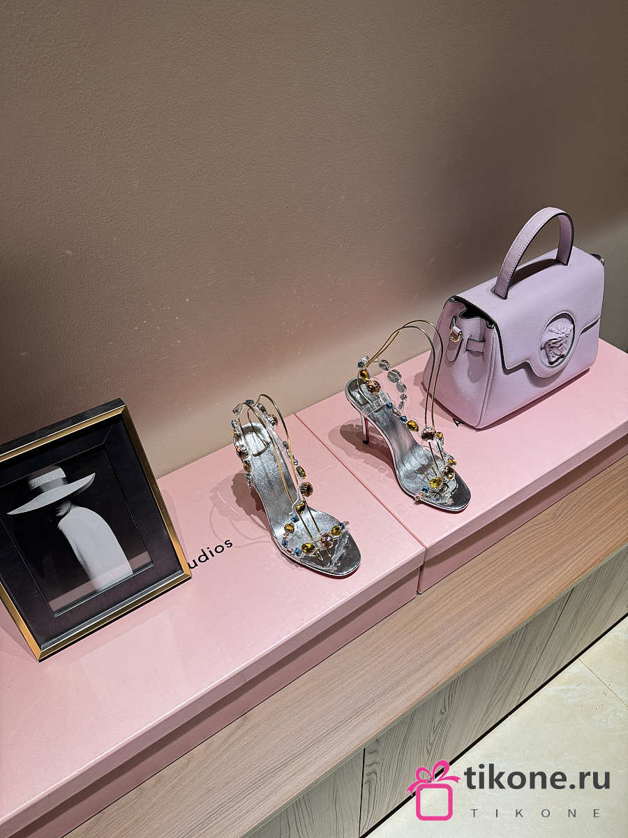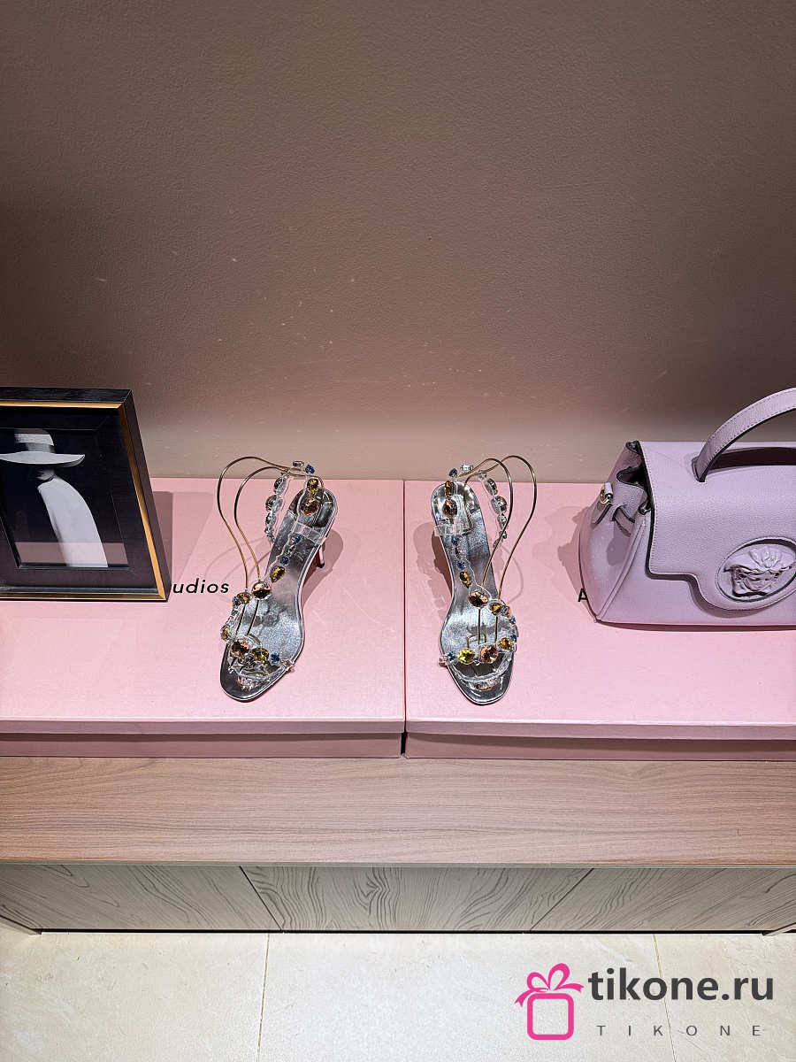Christian Louboutin Rosa Z Jewel 10mm Sandals TPU Strass And Laminated Calf Leather Silver