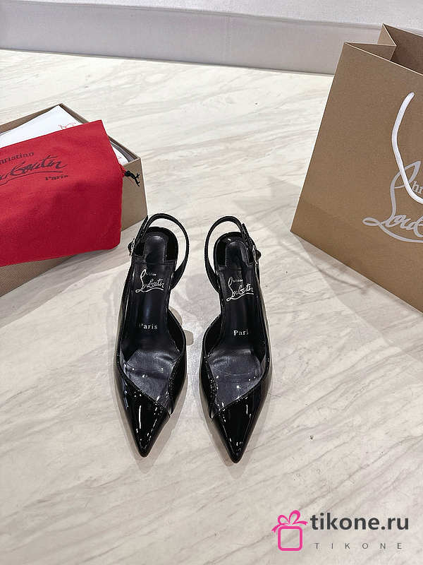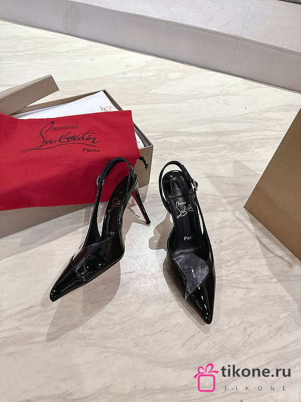 Christian Louboutin Slingback Sandals 8.5cm PVC Patent Black