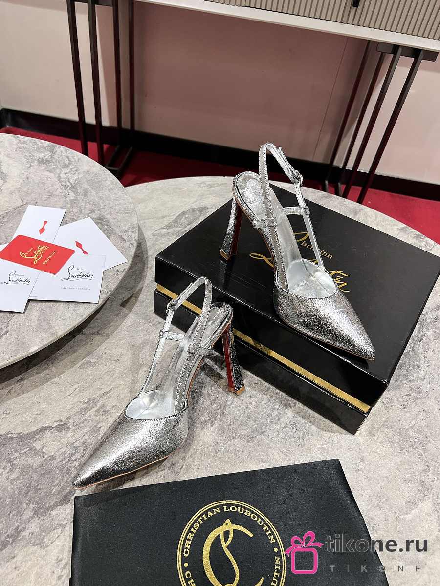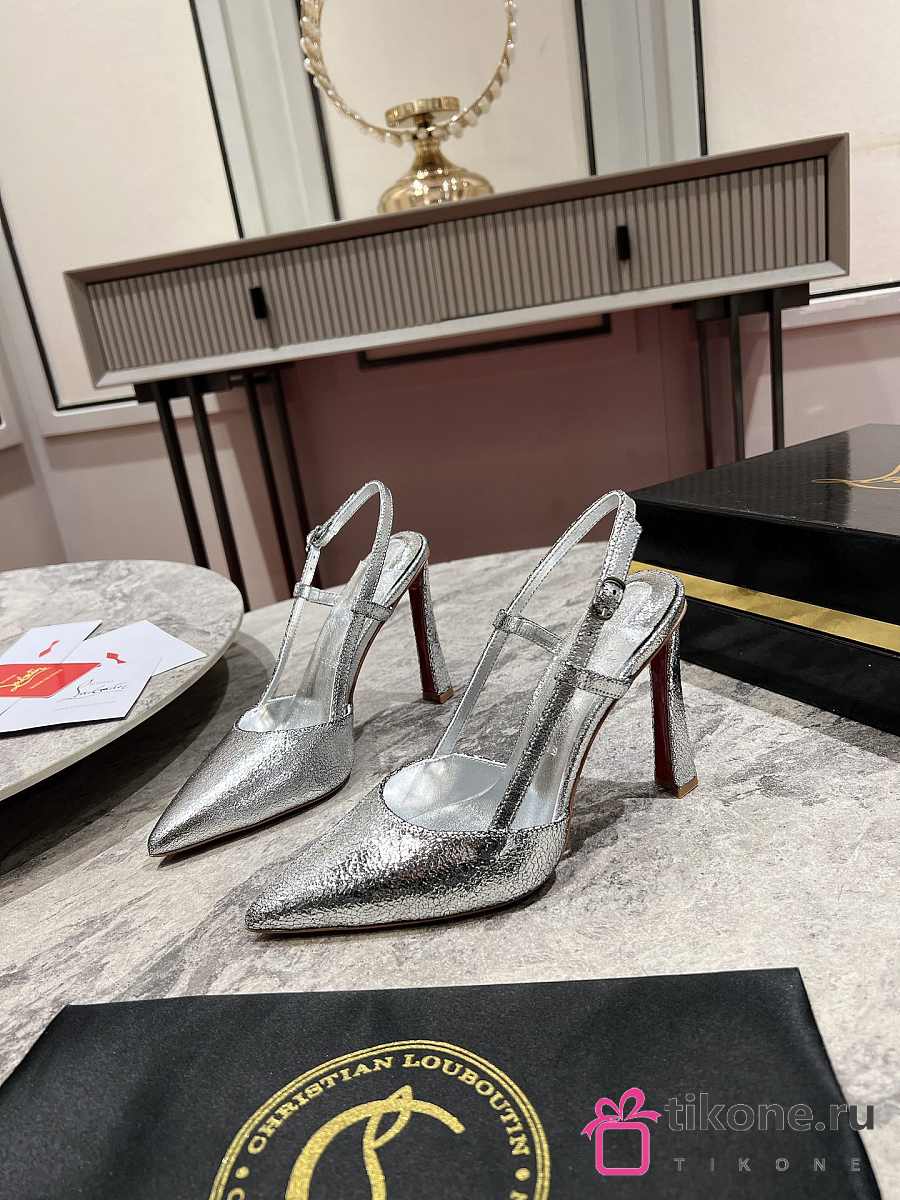 Christian Louboutine Condora Riviera 100mm Slingback Pumps Metallic Leather Silver