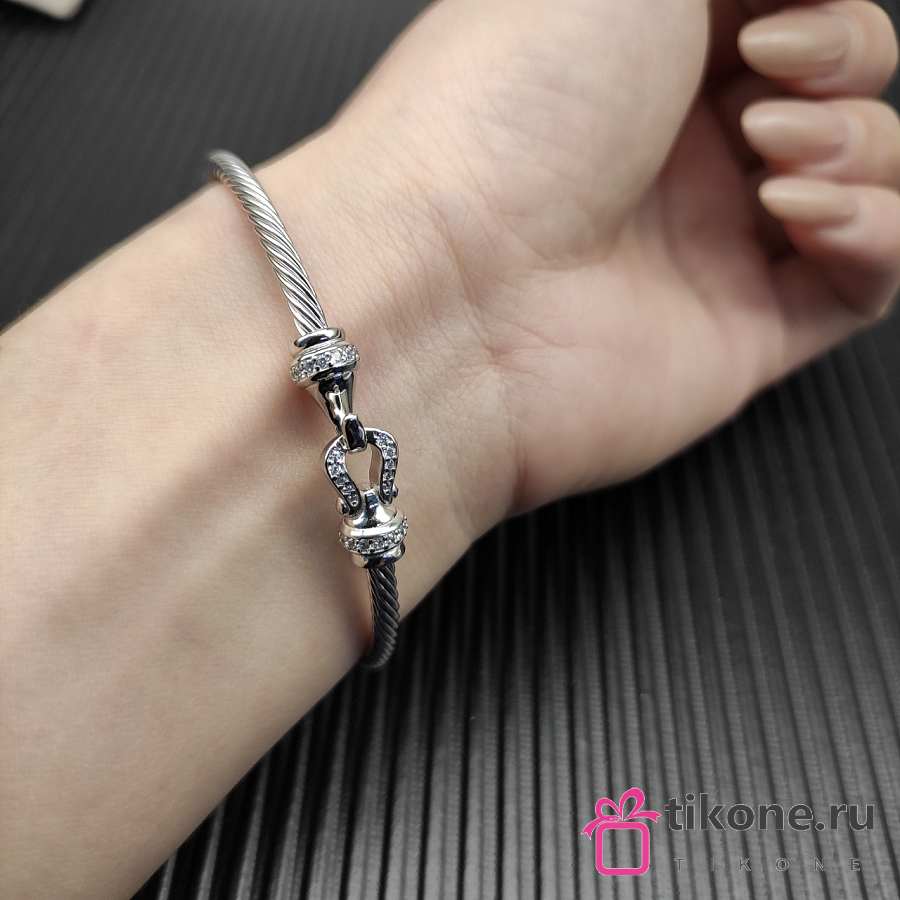 David Yurman Buckle Cablespira Bracelet Sterling Silver with Diamonds 3.5mm