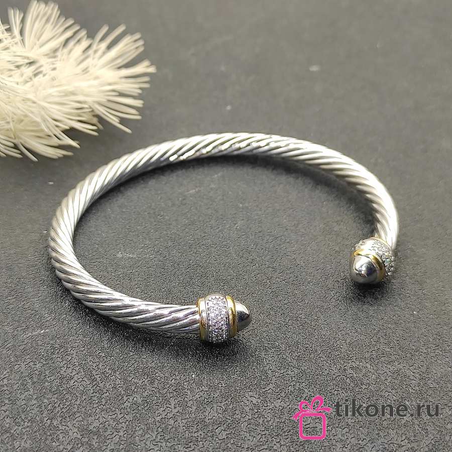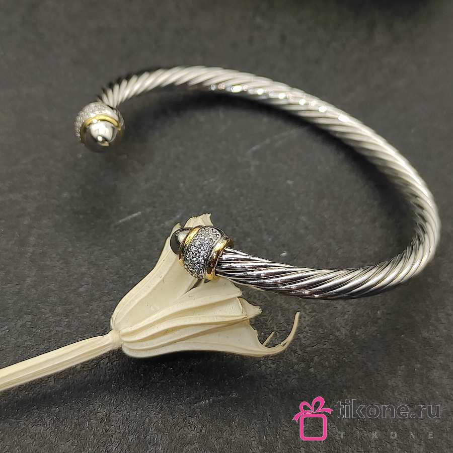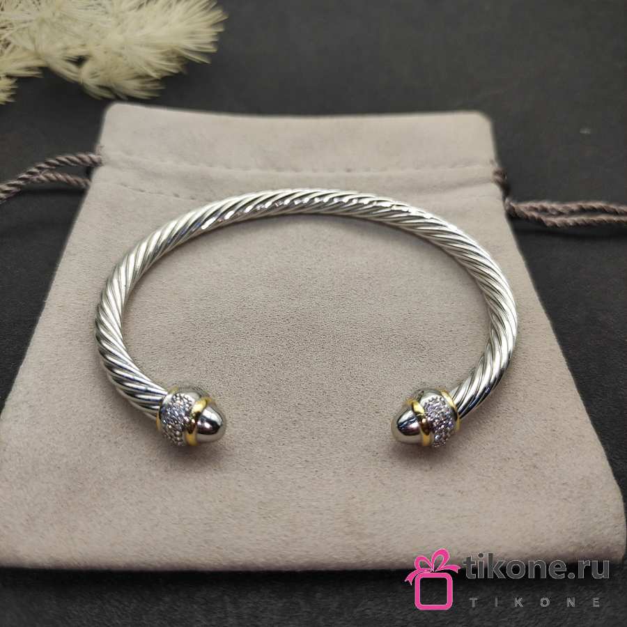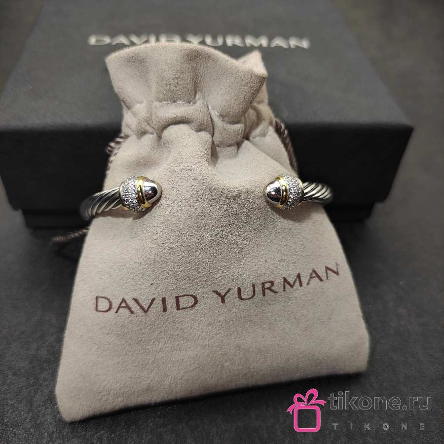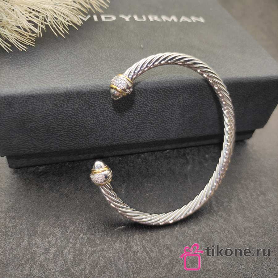 David Yurman Cable Bracelet in Sterling Silver with 18K Yellow Gold with Diamonds 5mm